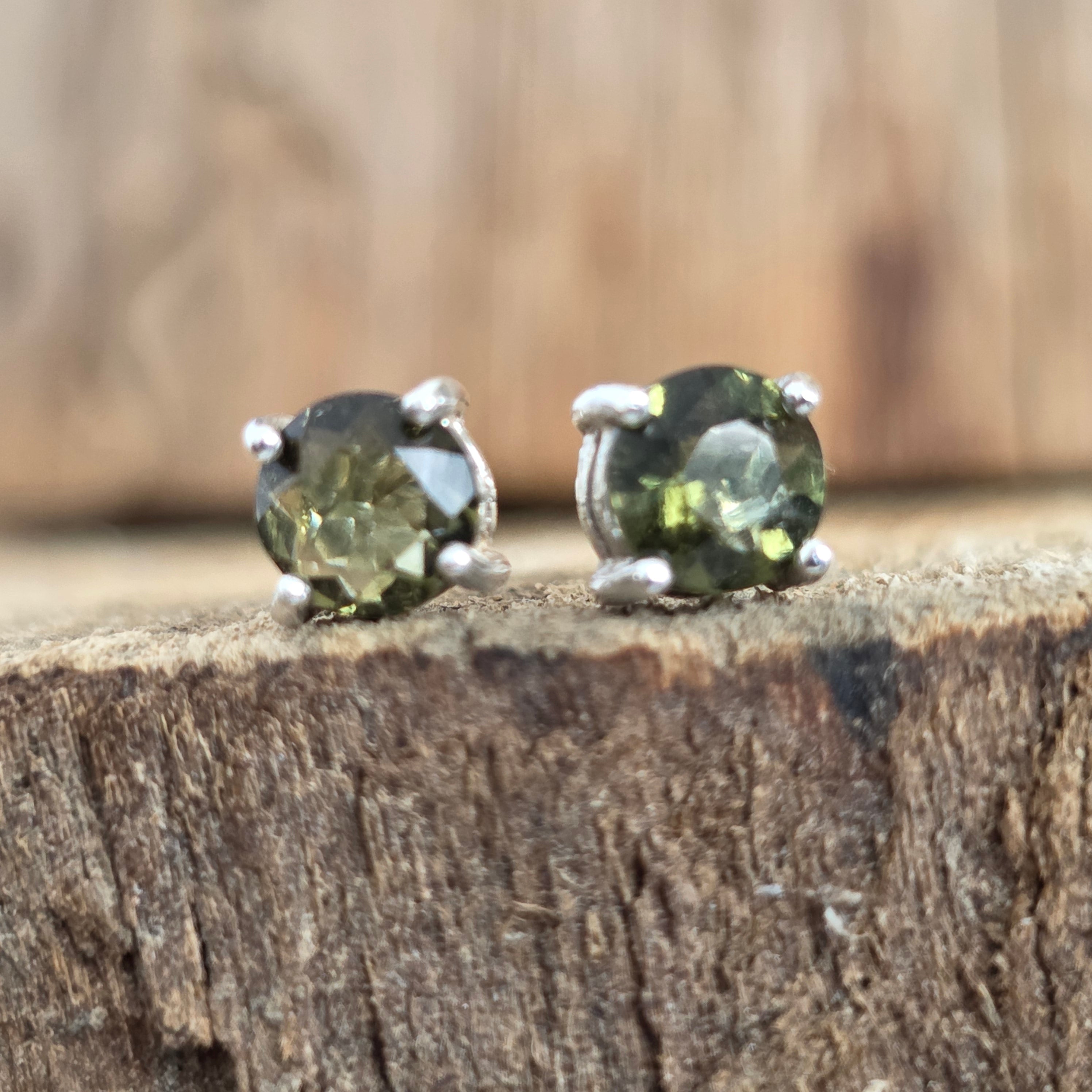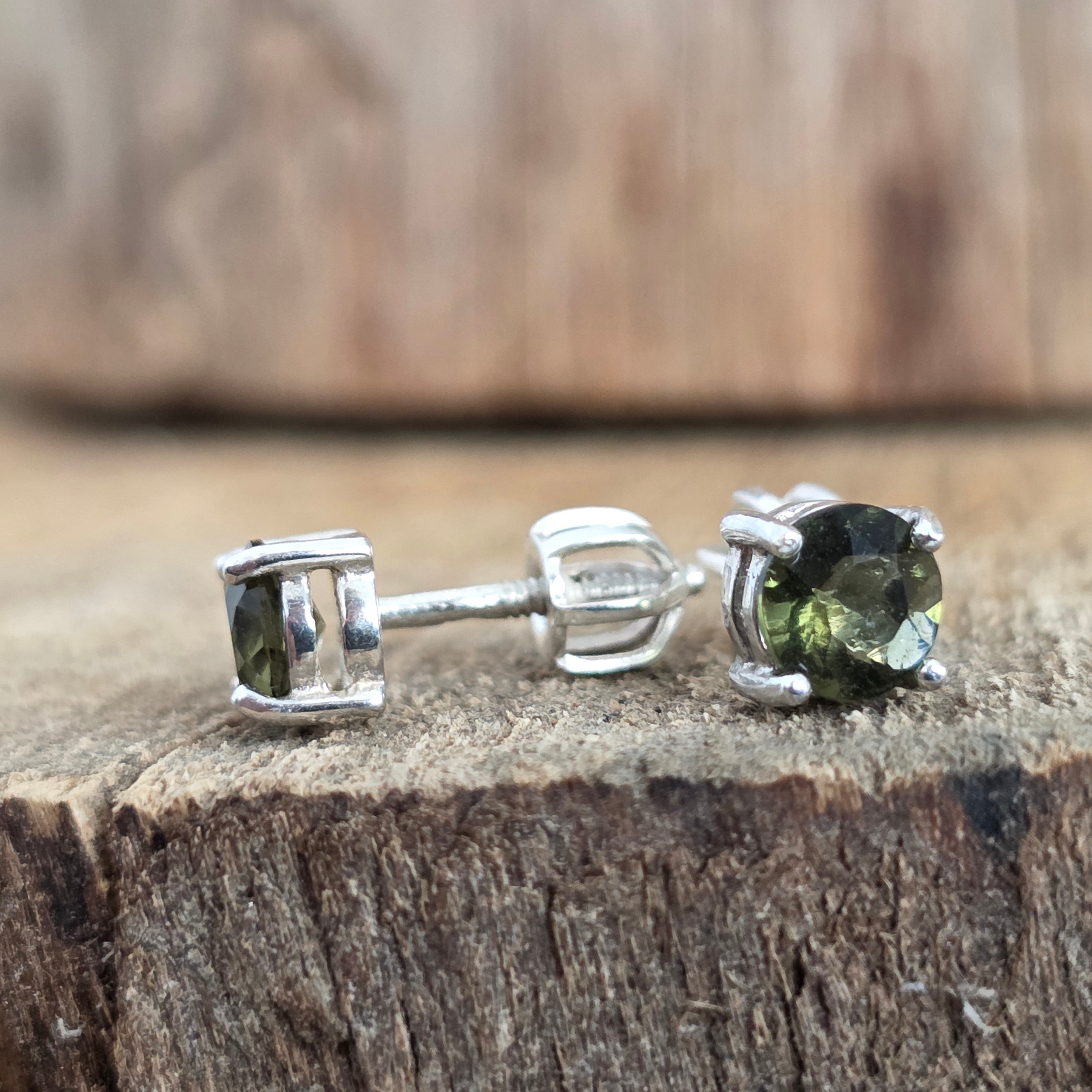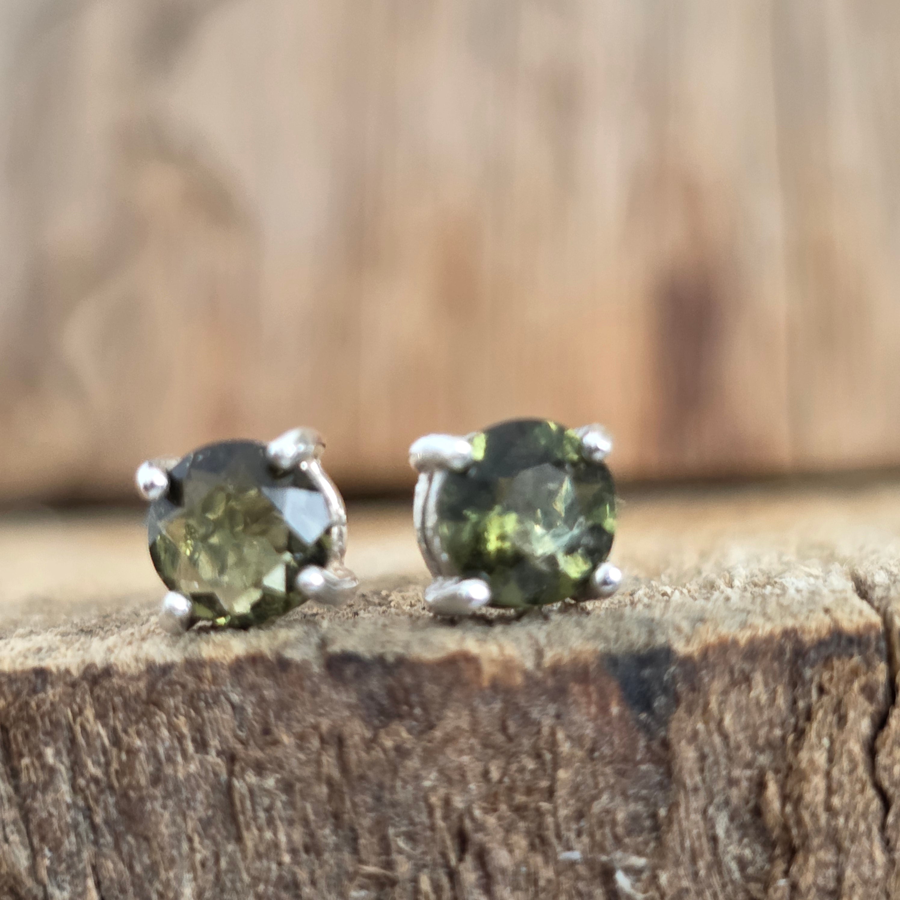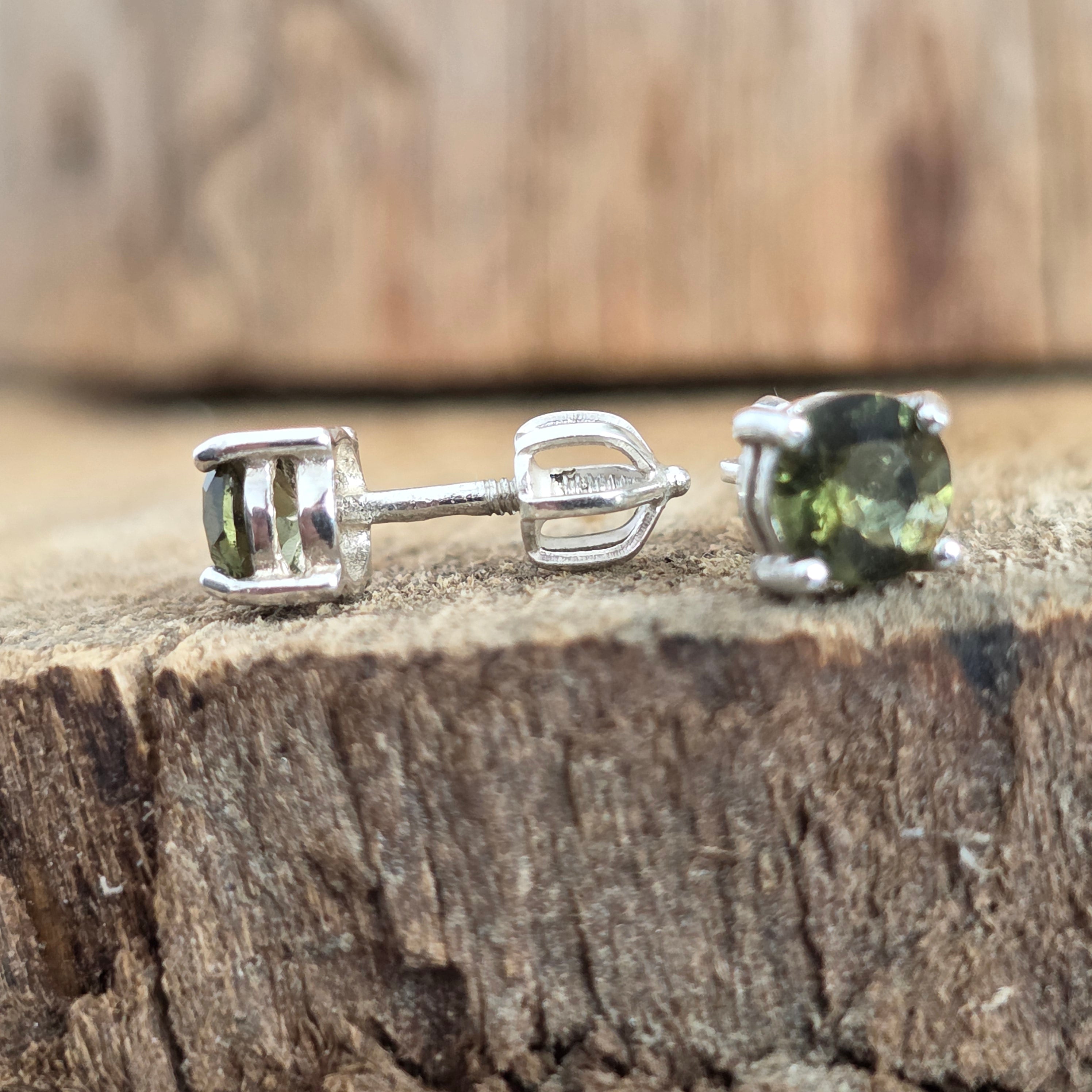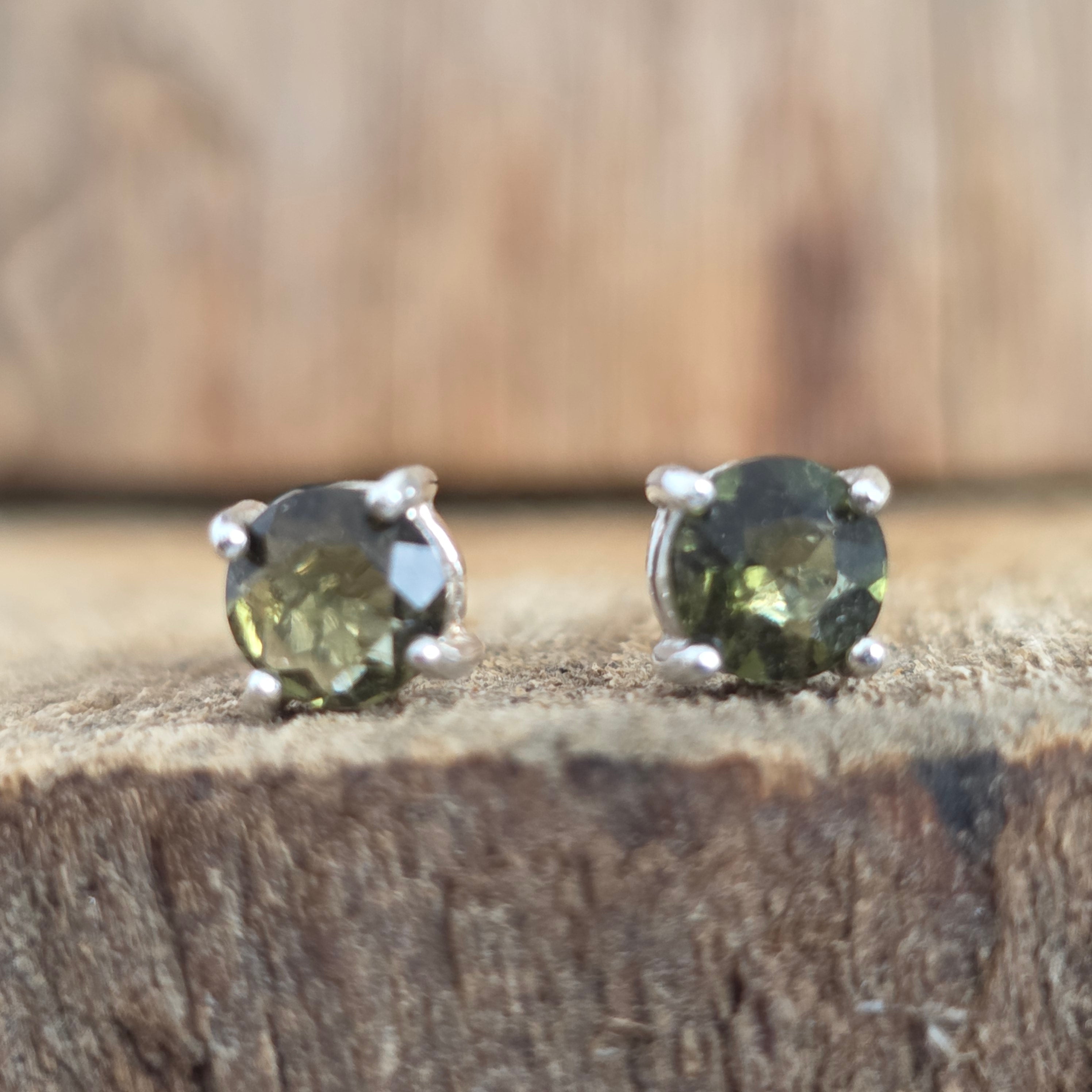 Kolczyki sztyfty srebrne z moldawitem 0,5 mm okrągłe
