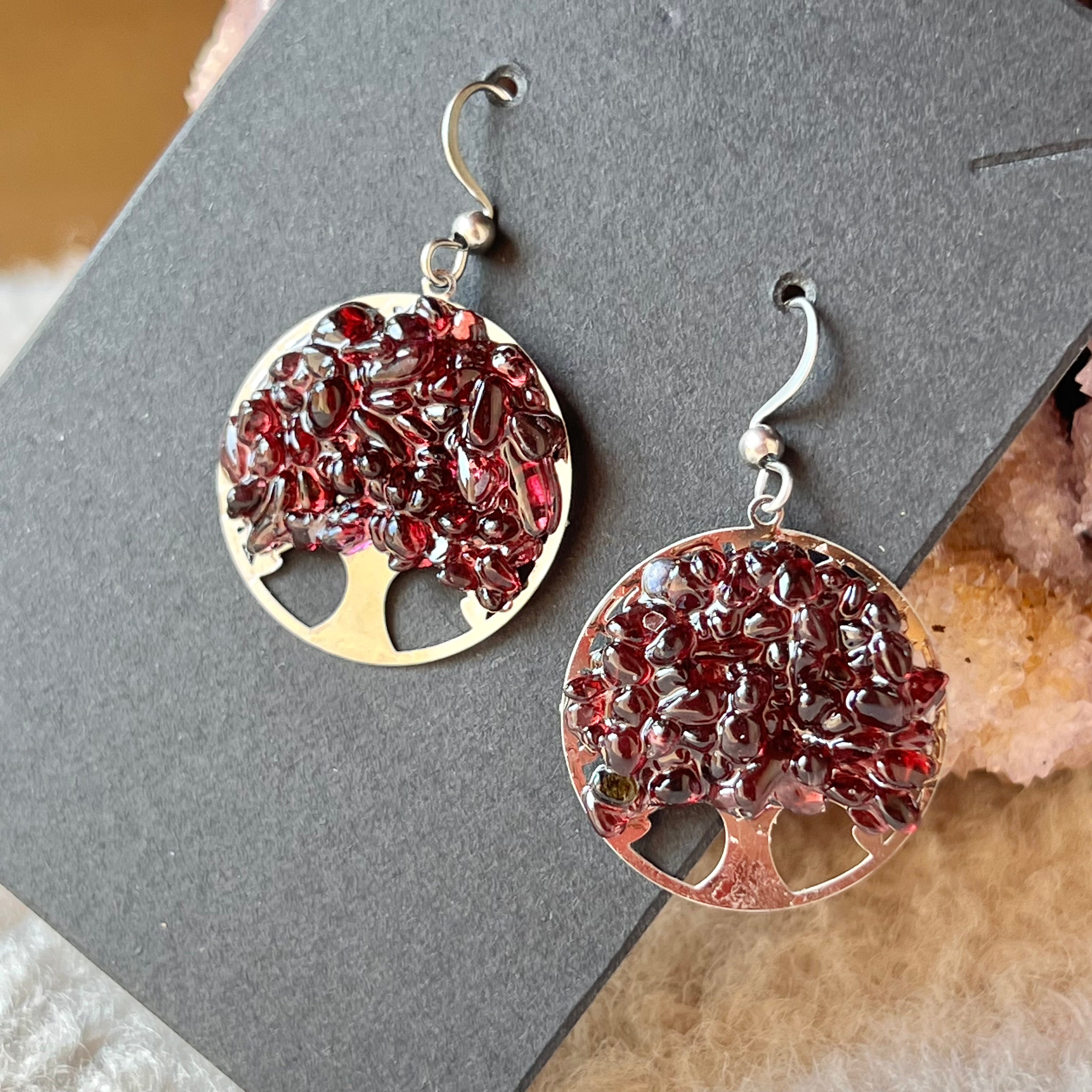 Kolczyki z granatem Drzewo Życia