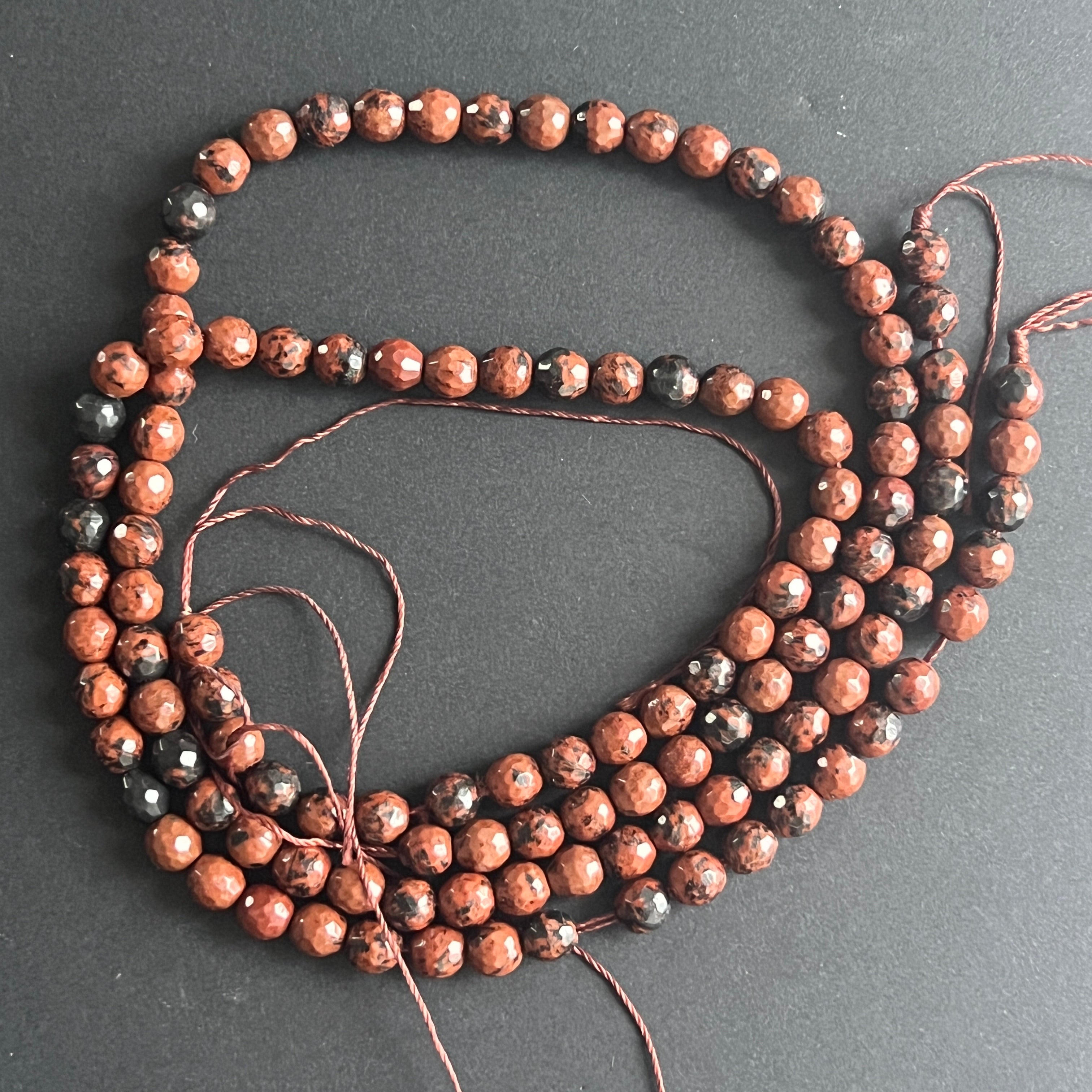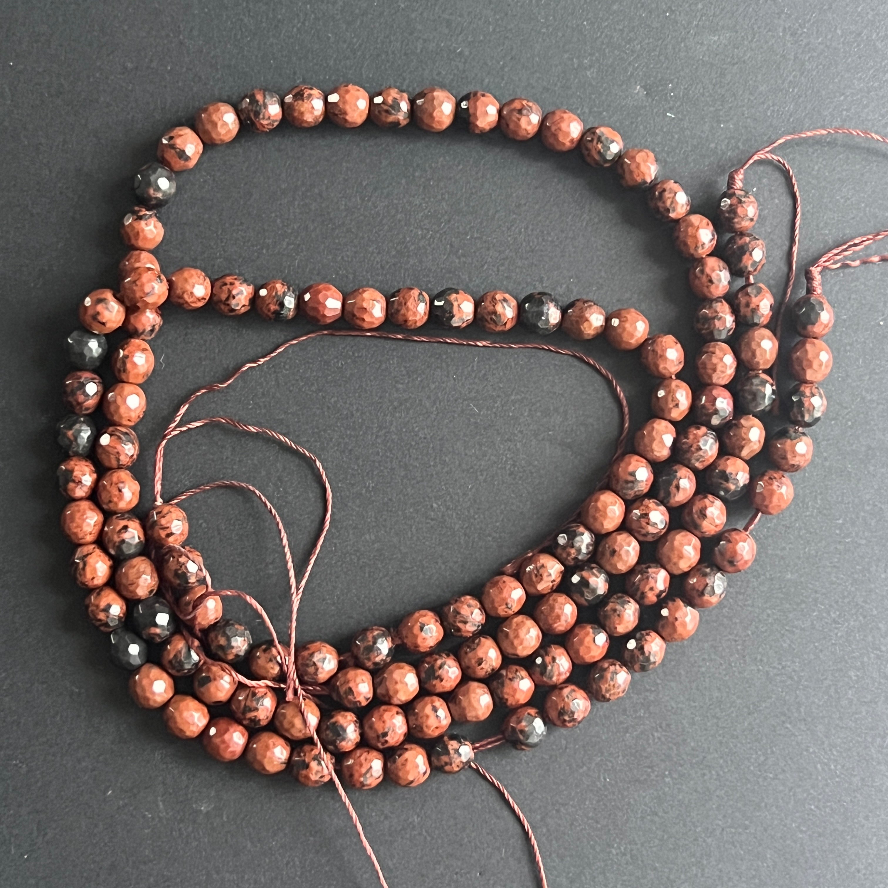 Struna z obsydianu mahoniowego, złożony z naturalne koraliki kuliste, idealne do naszyjników, bransoletek lub innej ręcznie robionej biżuterii.