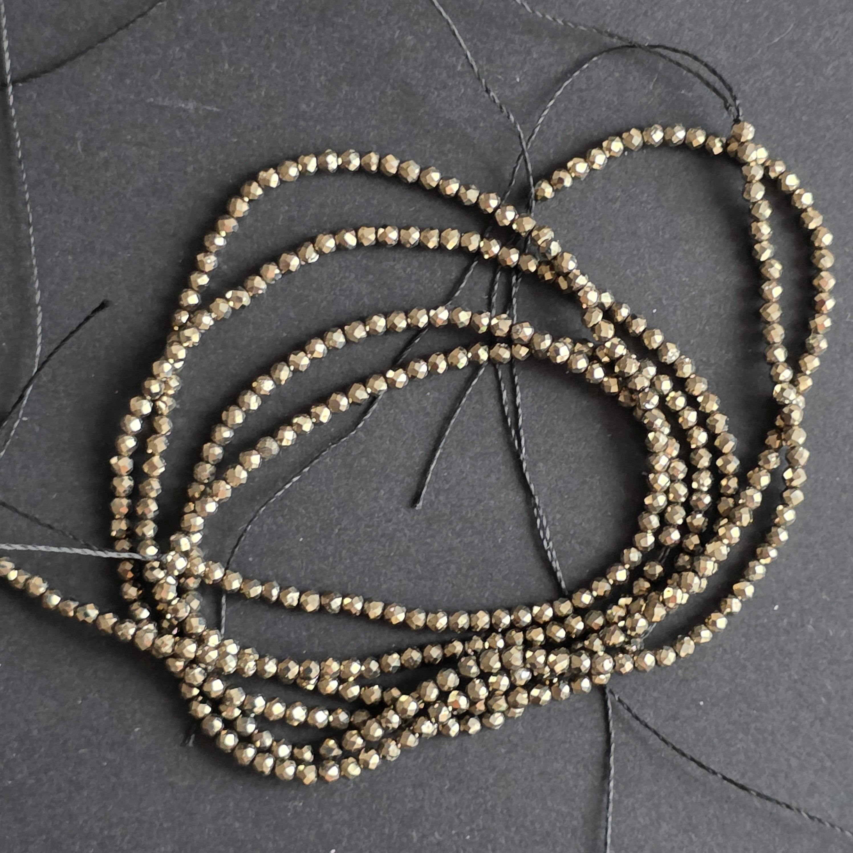 Koraliki sznurkowe kamienie półszlachetne fasetowane kule PYRYT