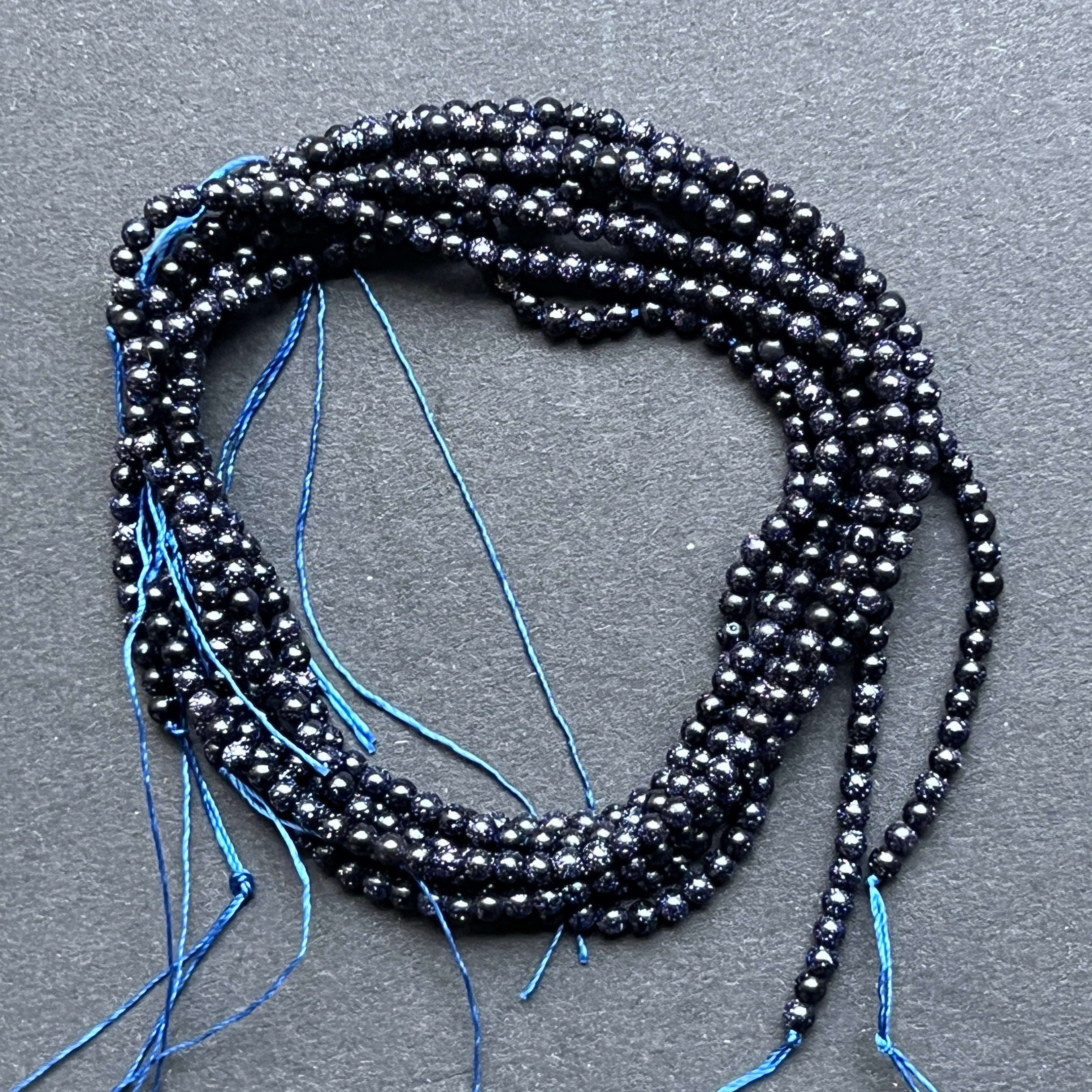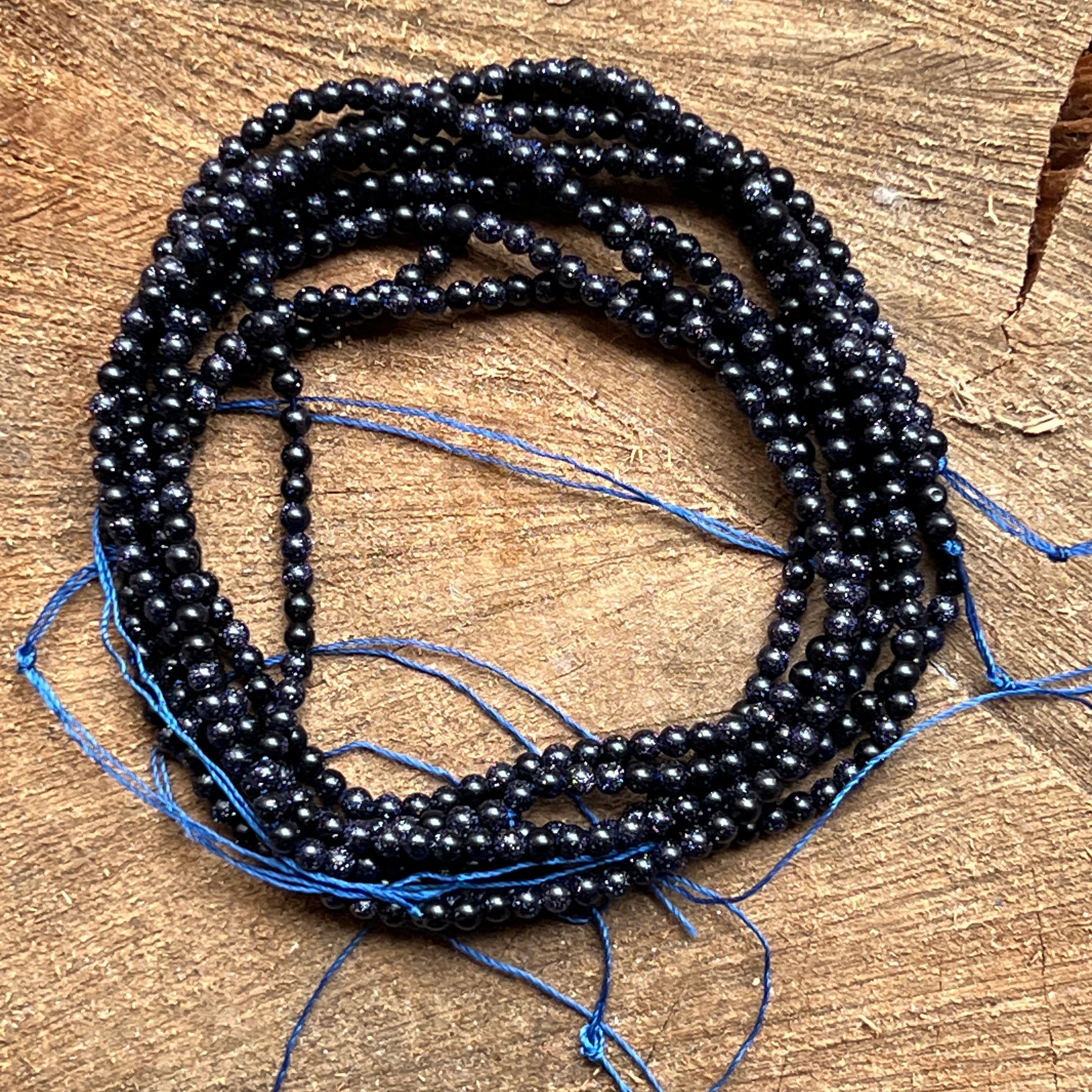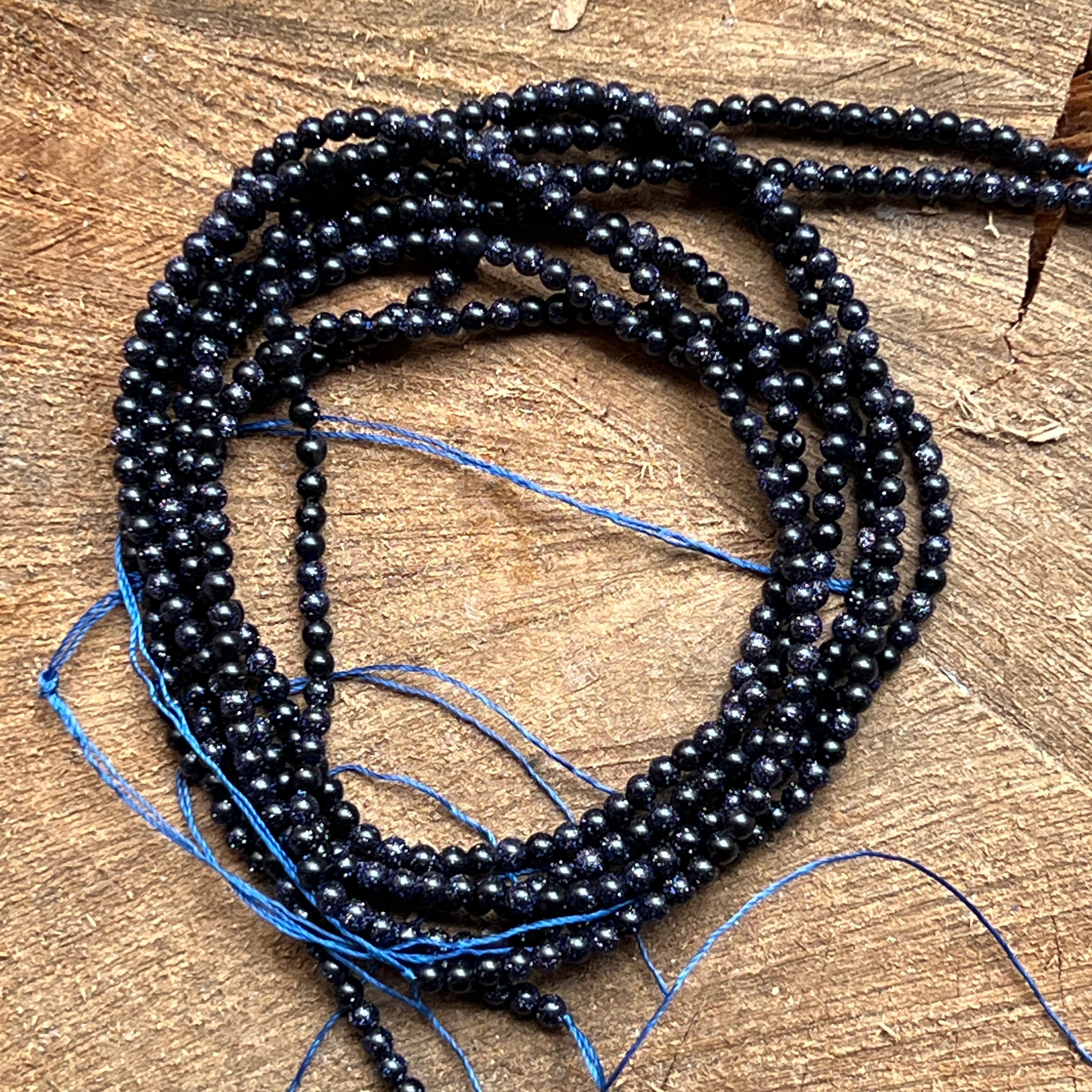 Sznurek BLUE SAND, wykonany z naturalnych kulistych koralików, idealny na naszyjniki, bransoletki czy inną ręcznie robioną biżuterię.