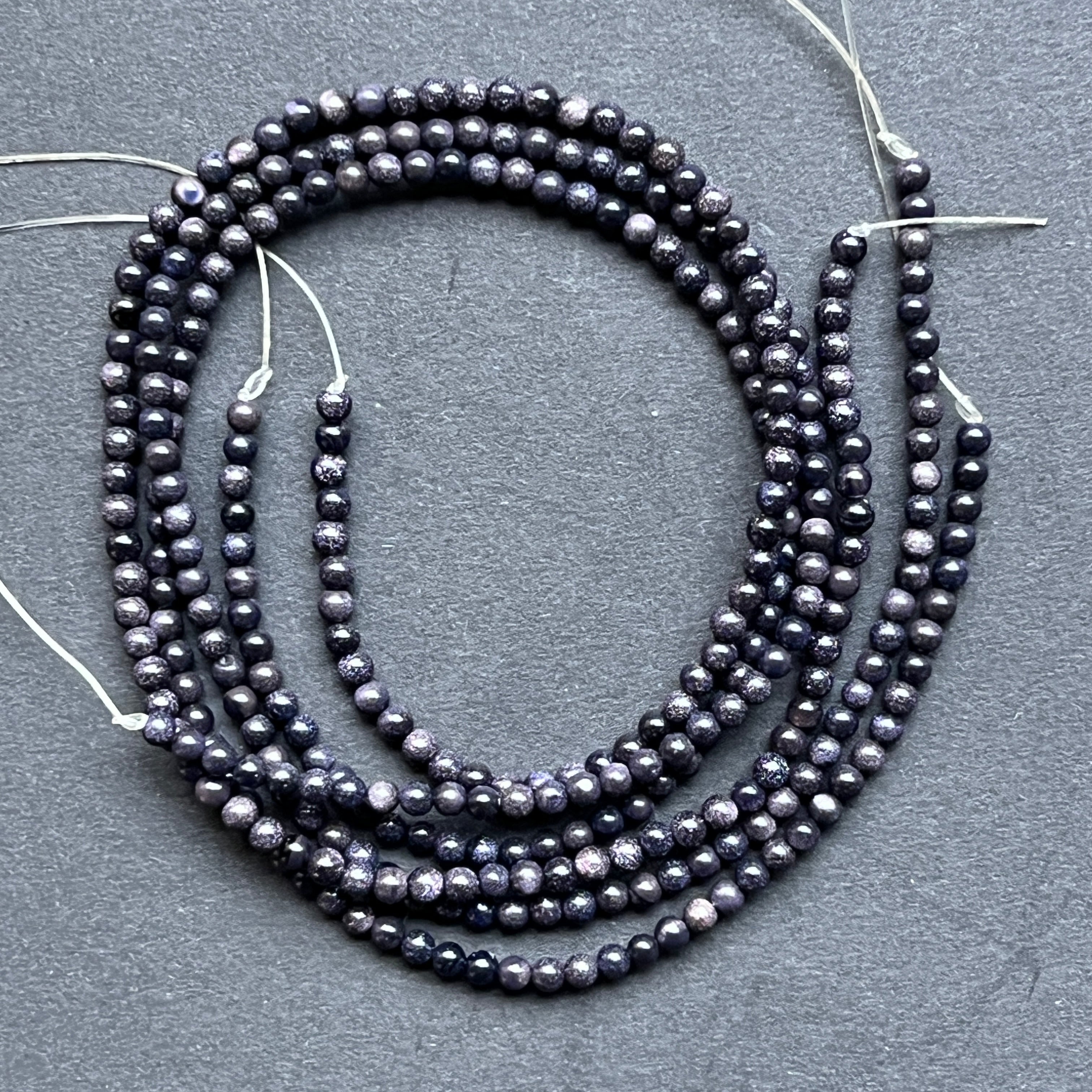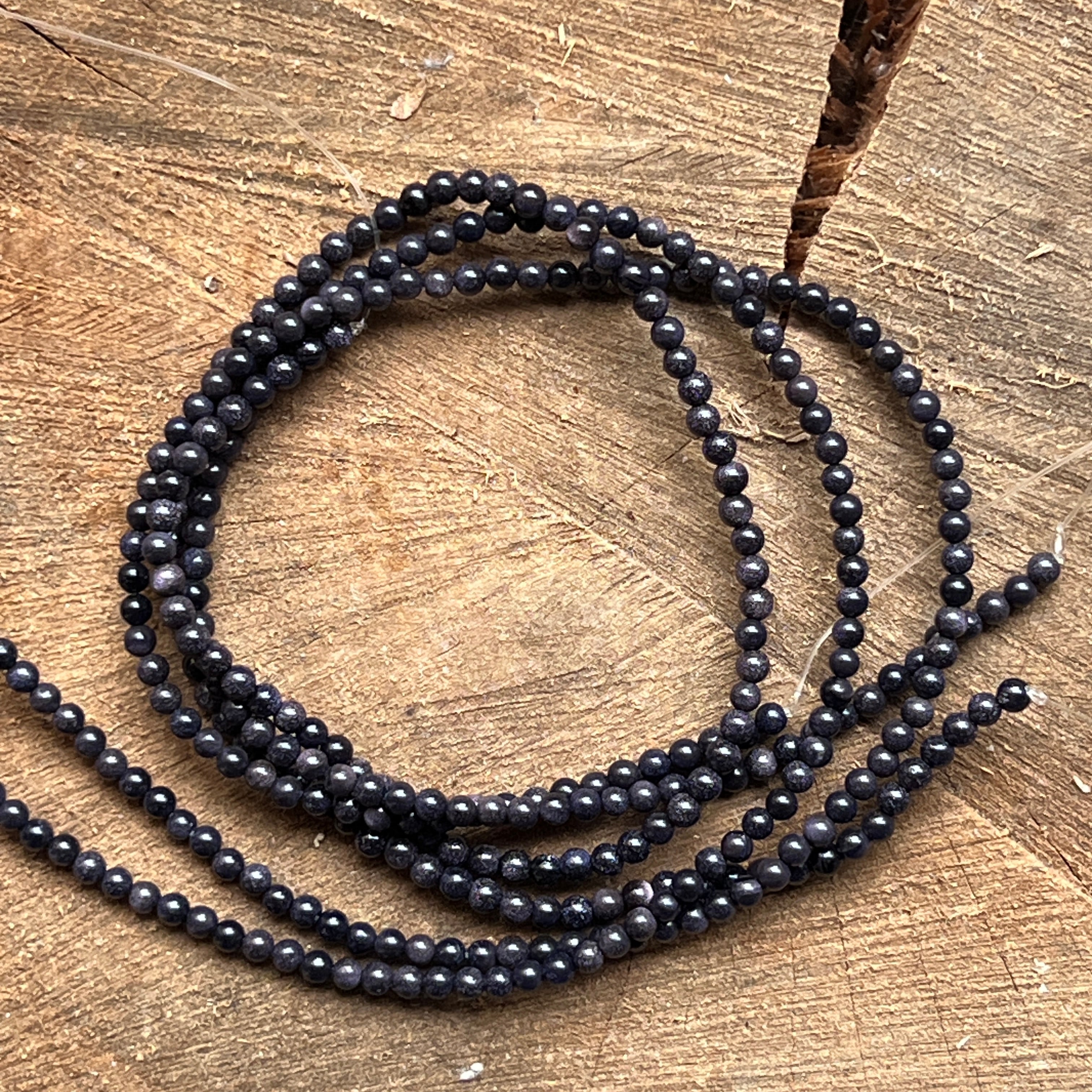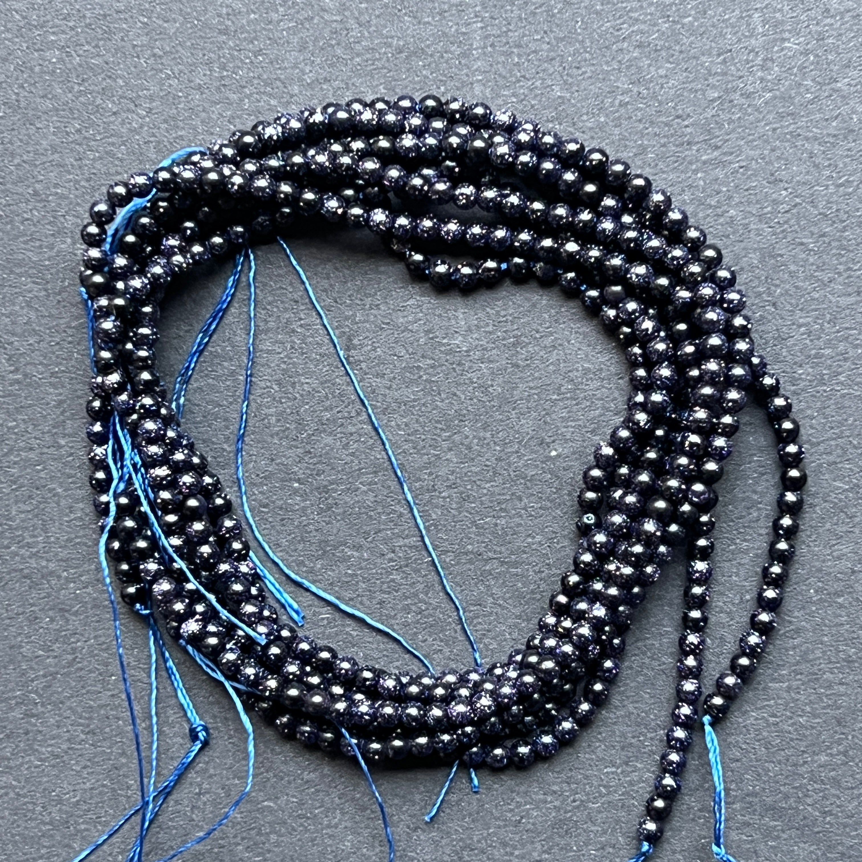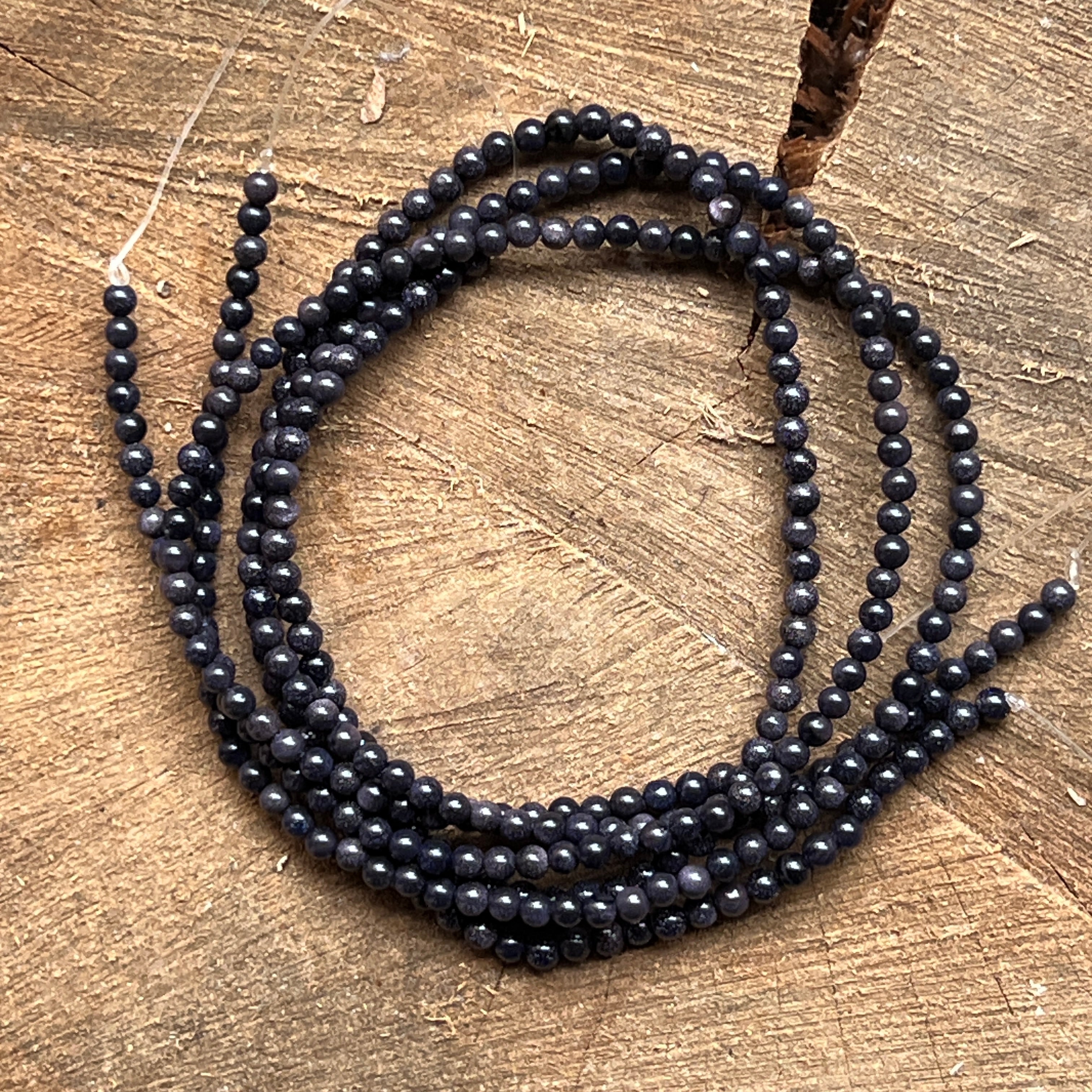 Sznurek BLUE SAND, wykonany z naturalnych kulistych koralików, idealny na naszyjniki, bransoletki czy inną ręcznie robioną biżuterię.