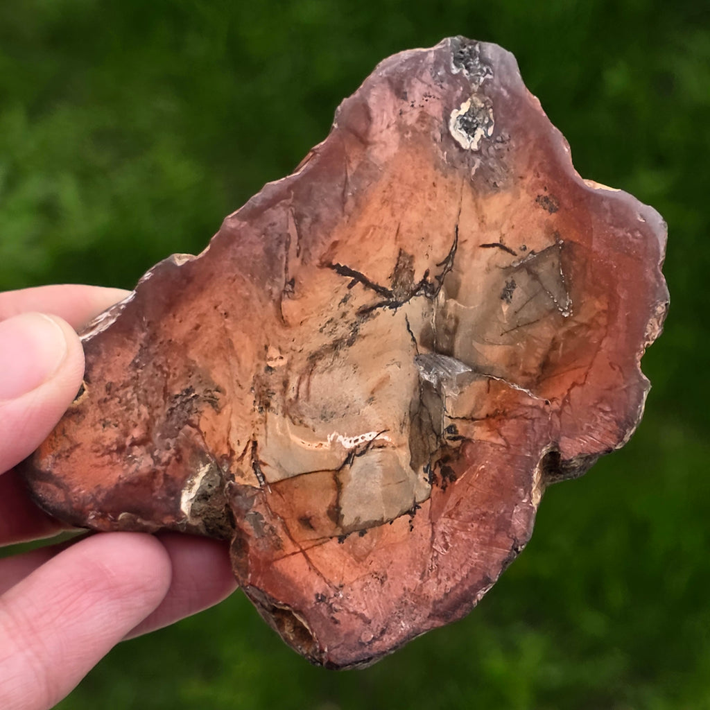 Z czasem kolory skamieniałego drewna rozwijają się z powodu zanieczyszczeń mineralnych: żelazo dodaje czerwonawe lub pomarańczowe, mangan przynosi czarne i fioletowe tony, a miedź może wprowadzać zielone lub niebieskie akcenty. Chociaż wydaje się, że drewno na pierwszy rzut oka kamień jest całkowicie zmineralizowany, mając Twardość mohs około 6,5 - 7, podobnie jak kwarc.
