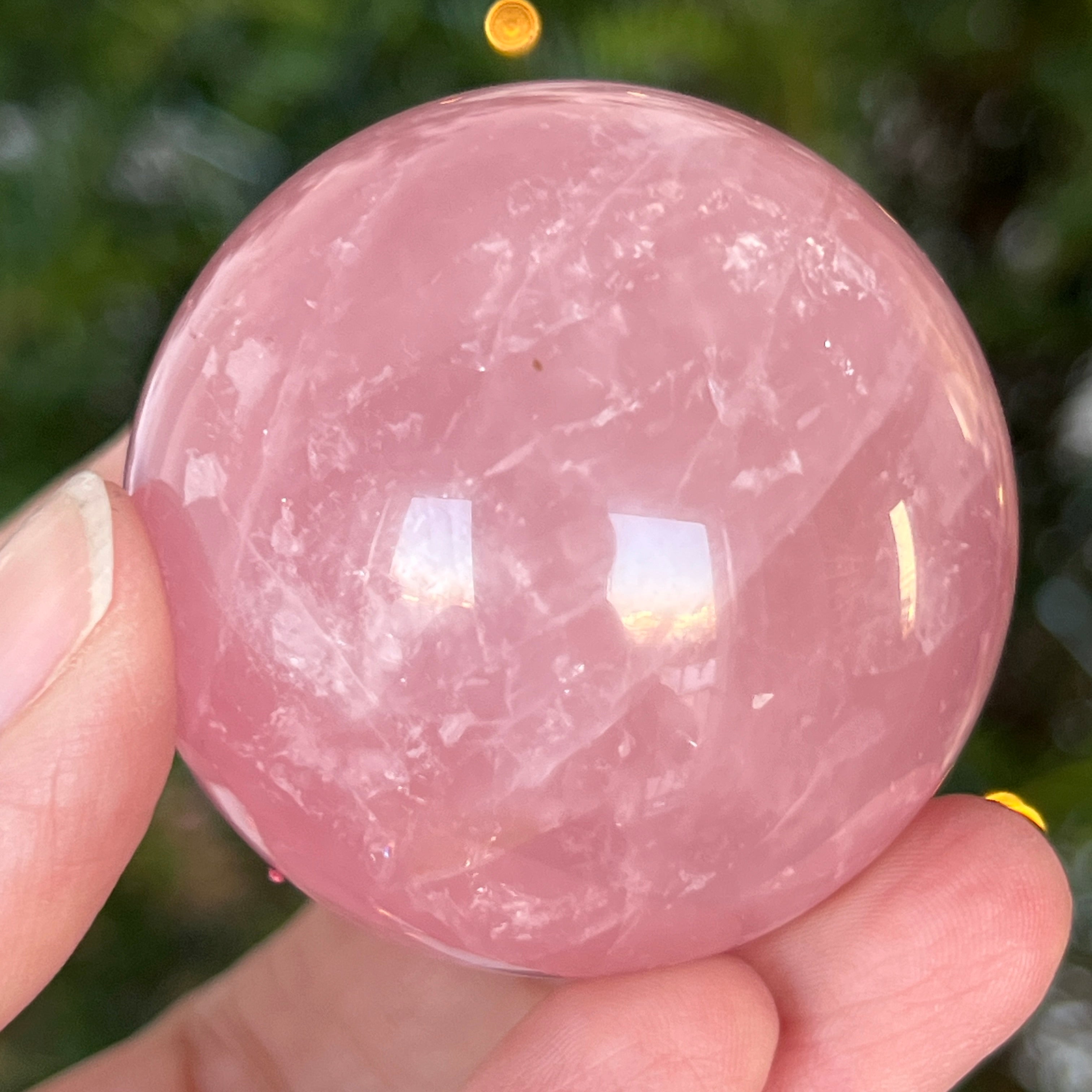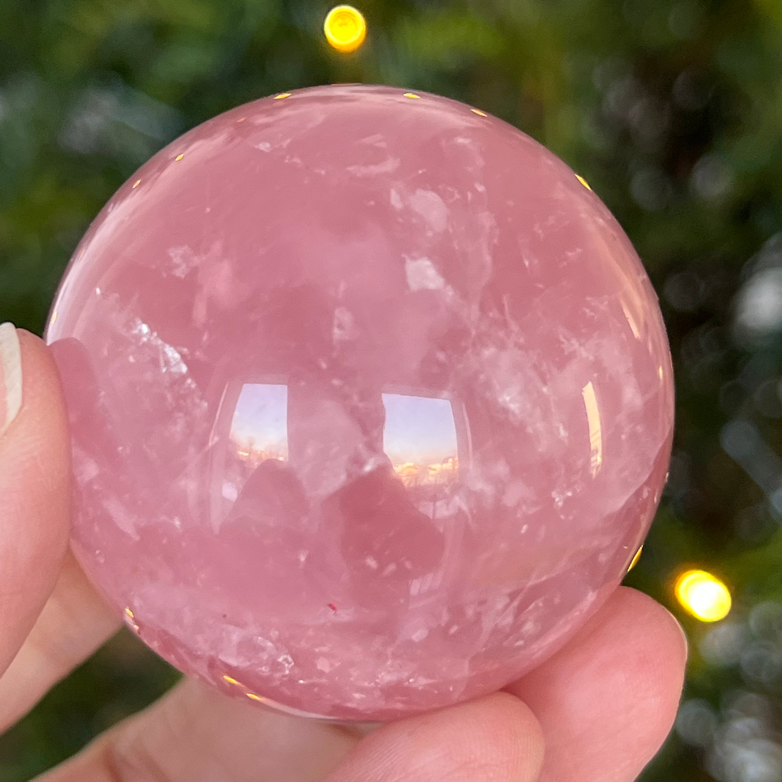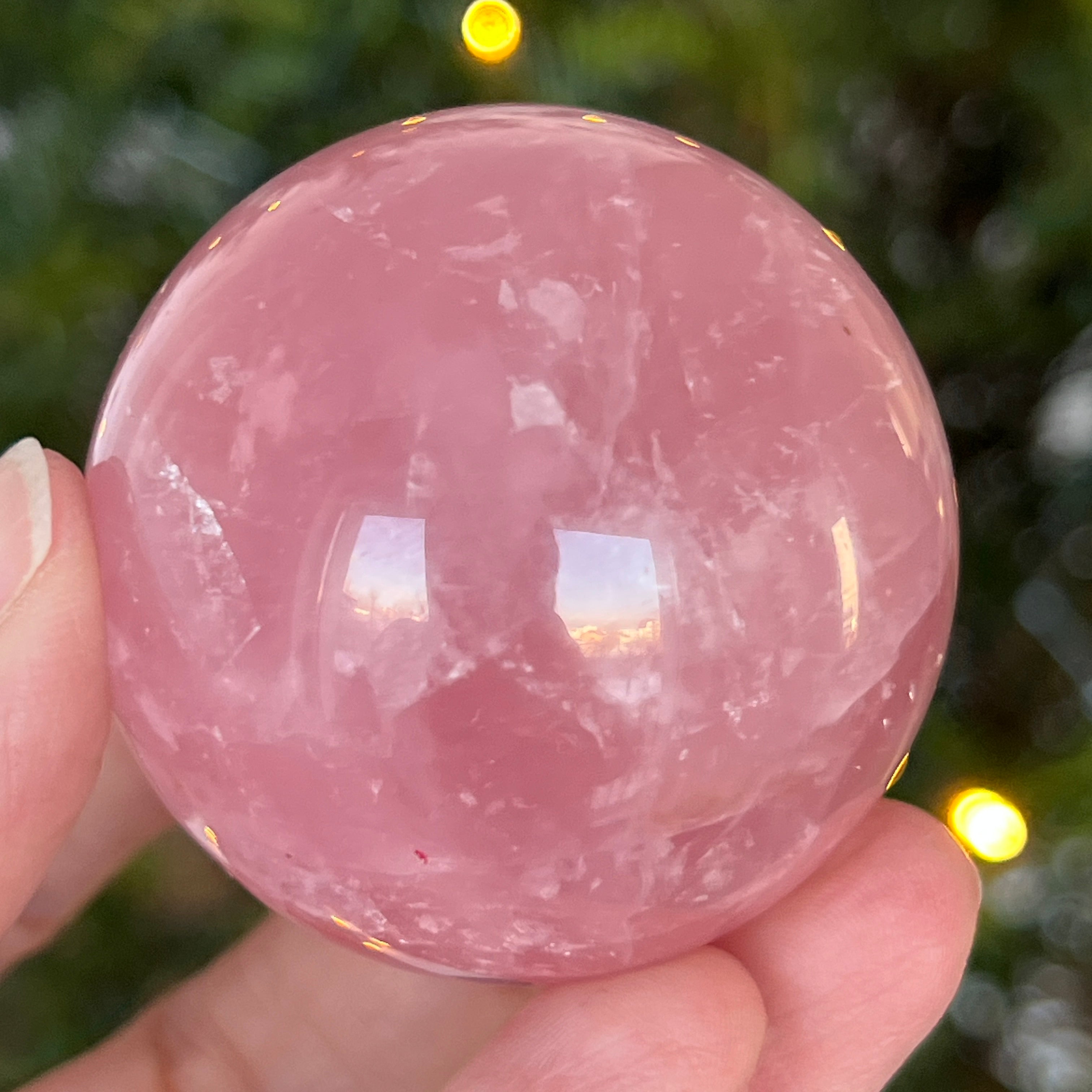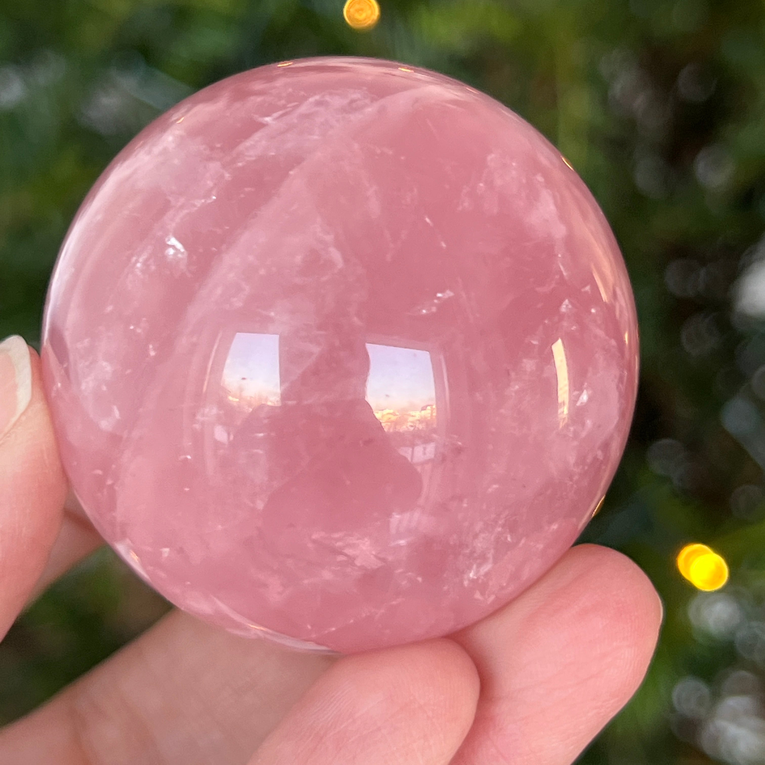 • Kamień: naturalny różowy kwarc z asteryzmem – w pełni wyszlifowana kula