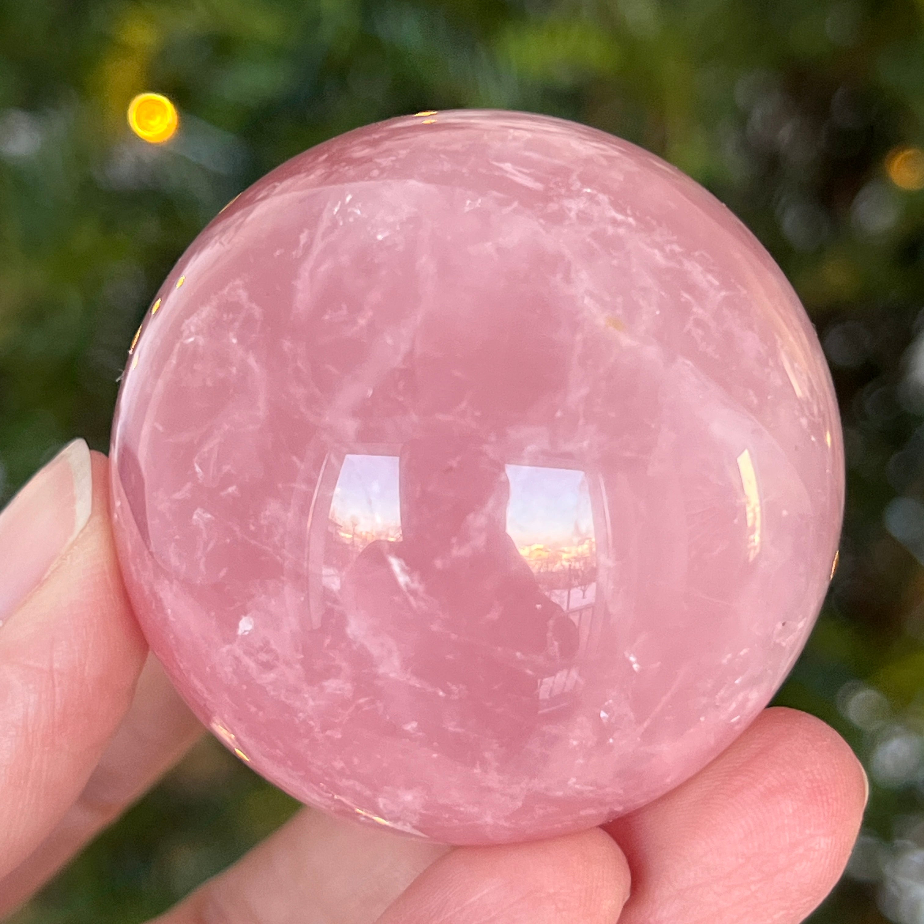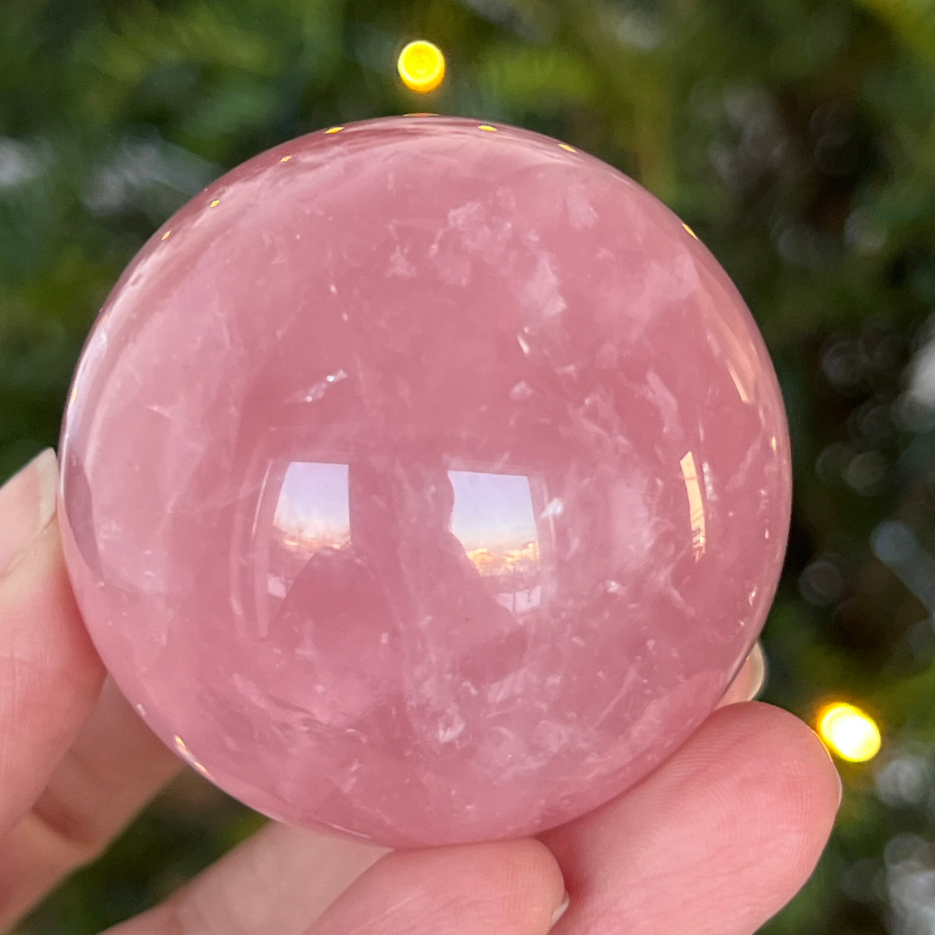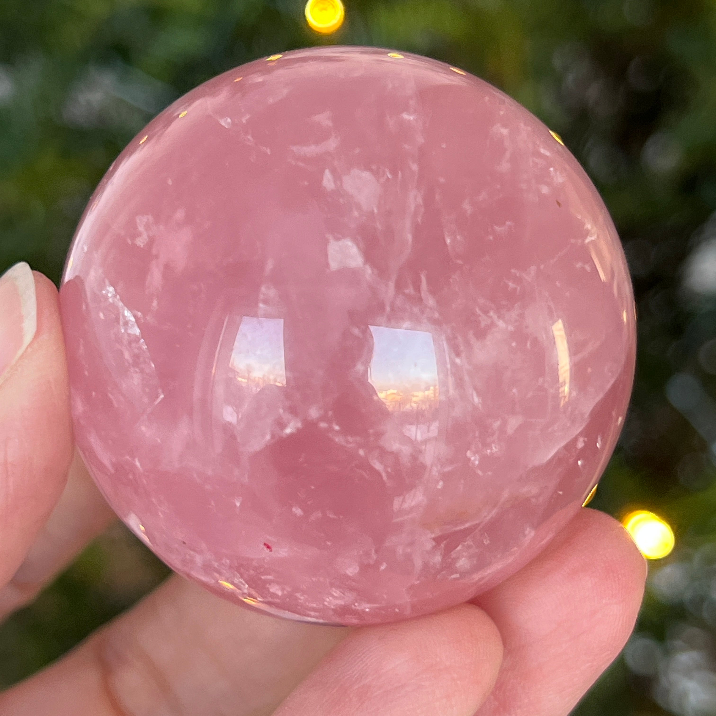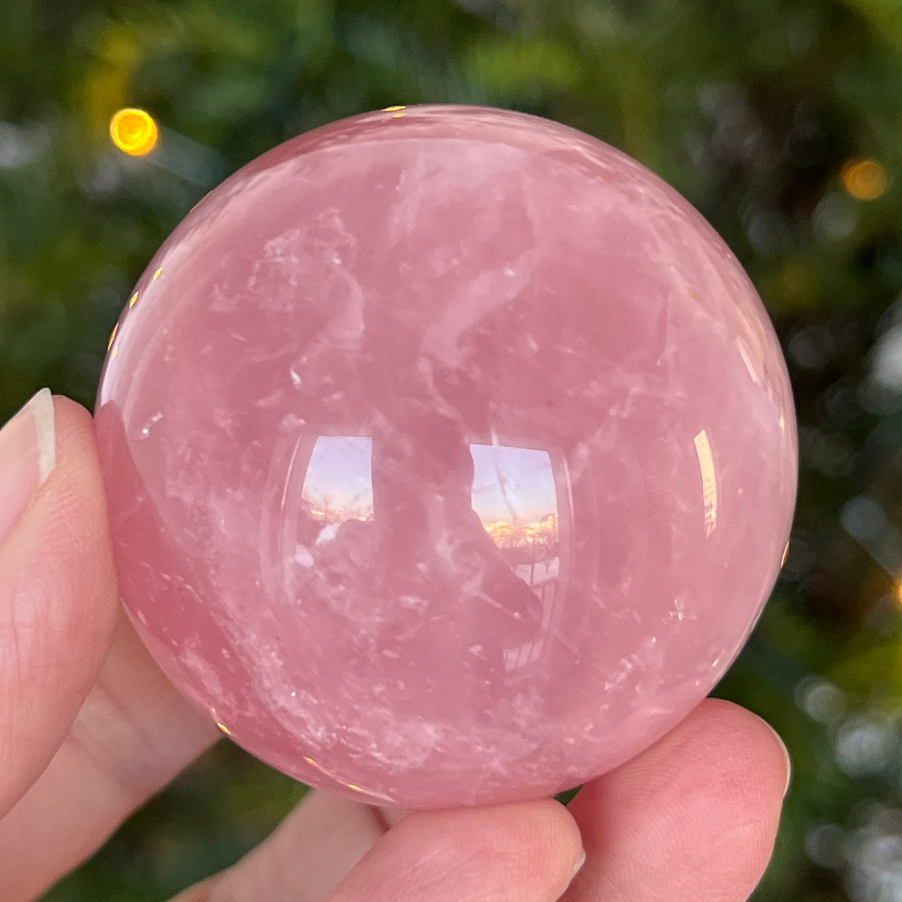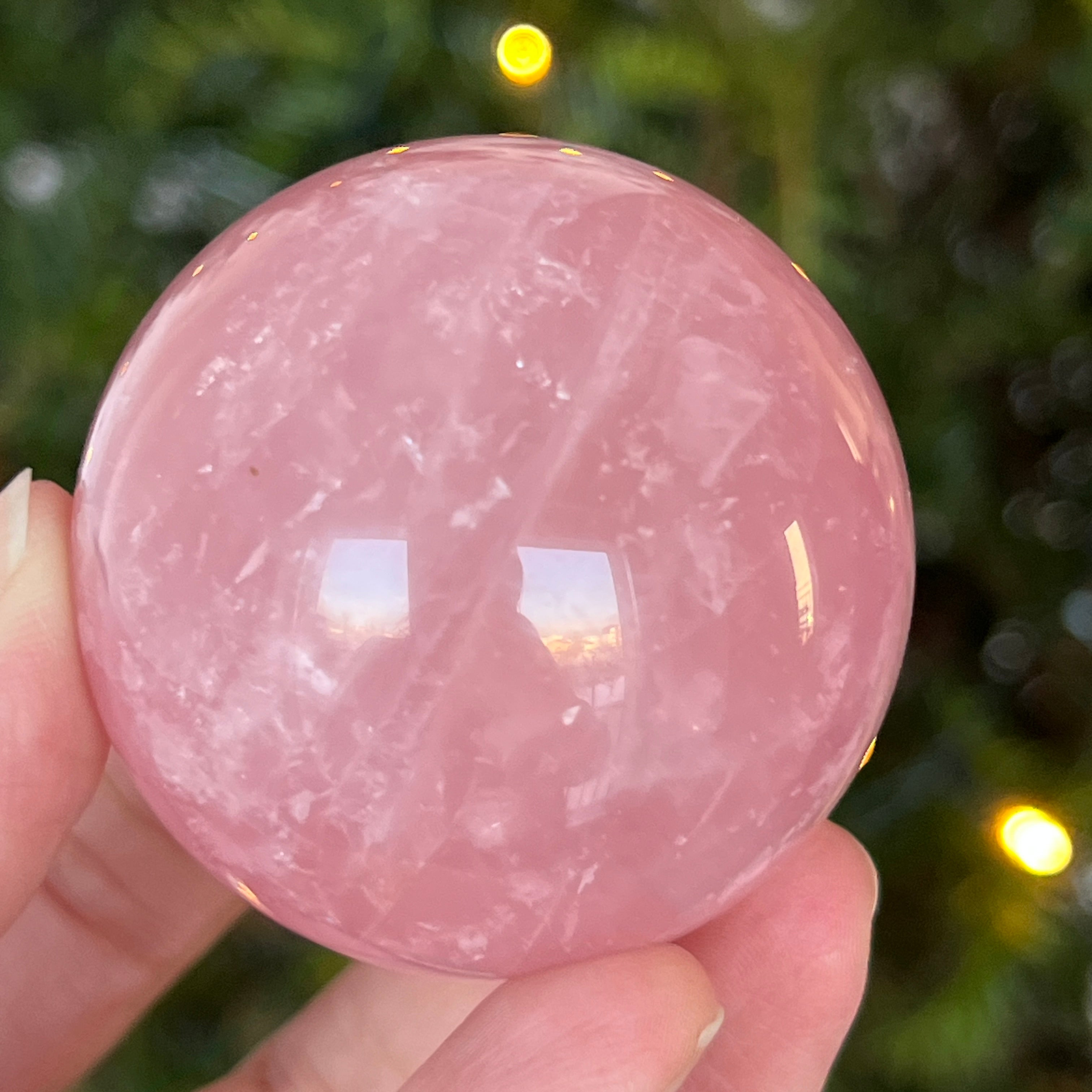 • Kamień: naturalny różowy kwarc z asteryzmem – w pełni wyszlifowana kula