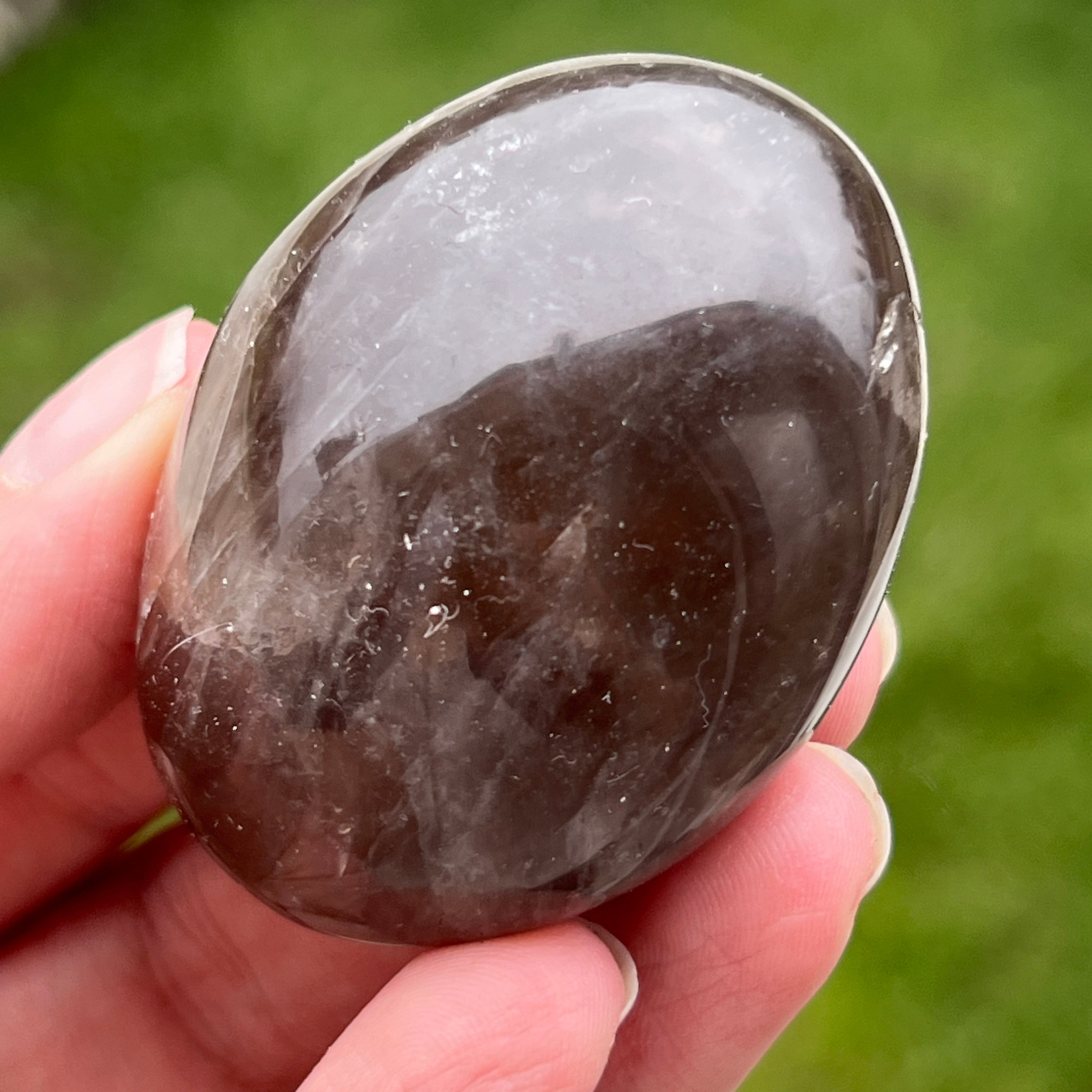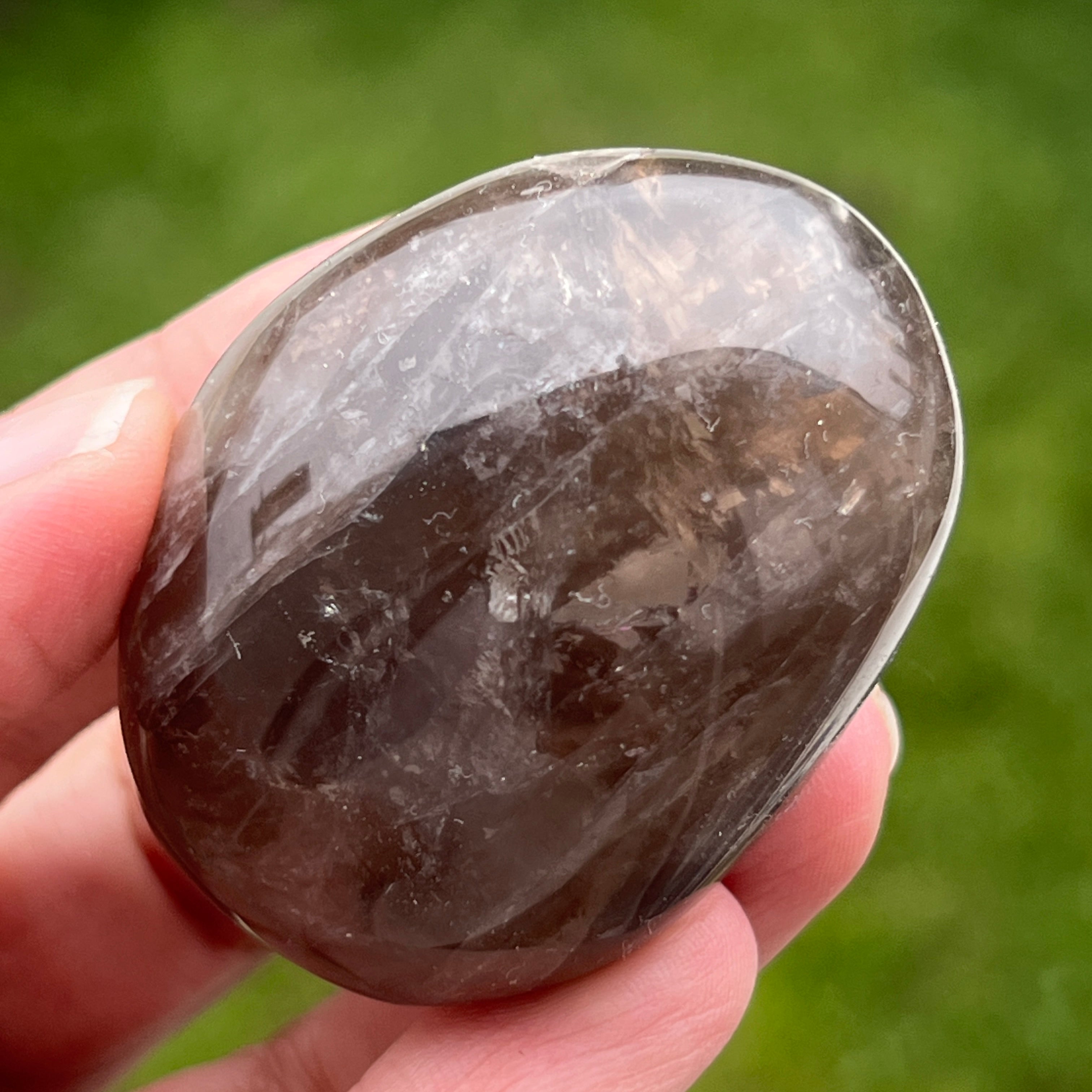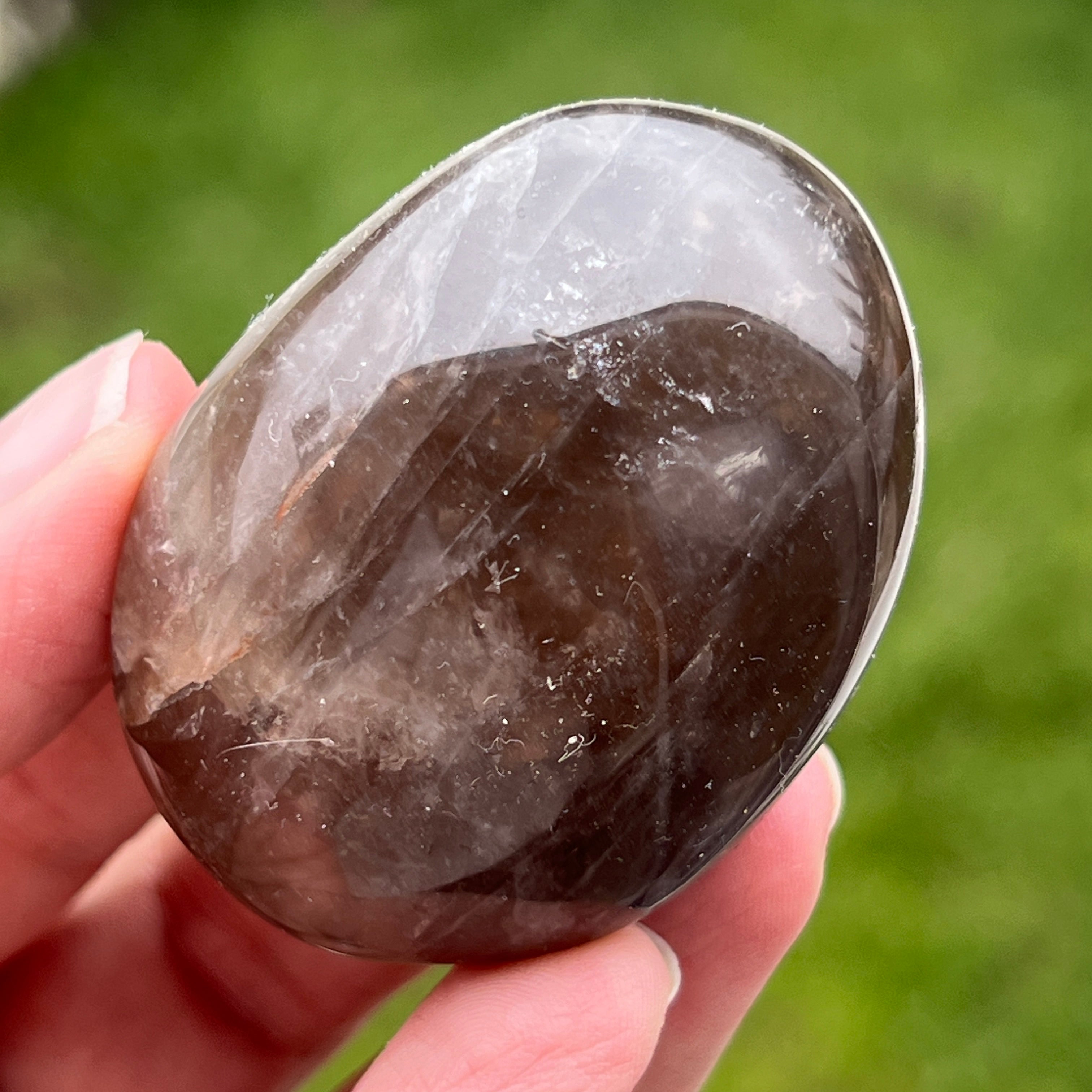 Starannie ukształtowany, aby idealnie leżeć w dłoni, ten kamień palmowy z kwarcu dymnego to nie tylko kamień – to punkt wsparcia w wirze codziennego życia. Dzięki swoim ziemistym odcieniom, od półprzezroczystego brązu po głębsze tony, kwarc dymny niesie ze sobą spokój starych skał i cierpliwość gór.
