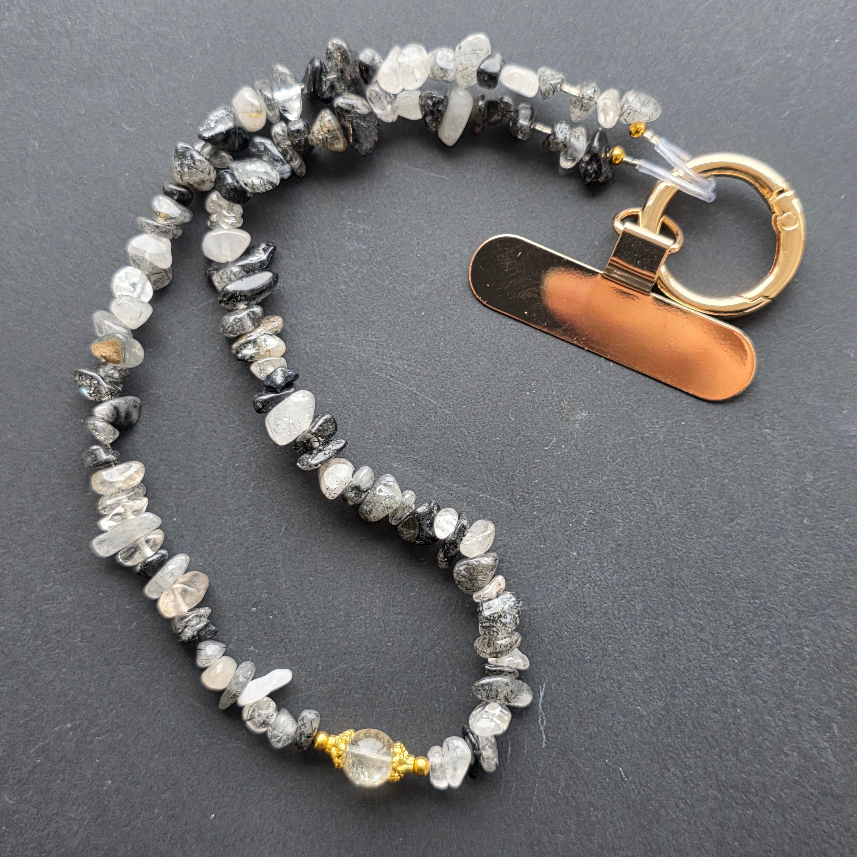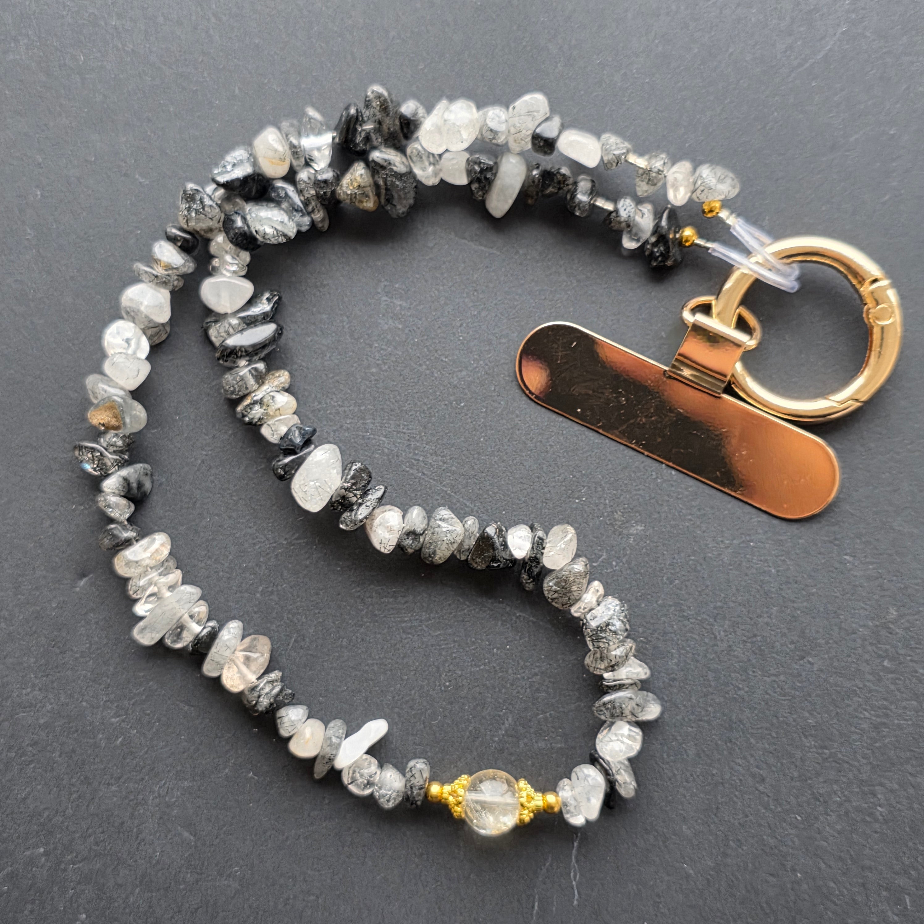 Lanț pentru telefon din cuart cu turmalina
