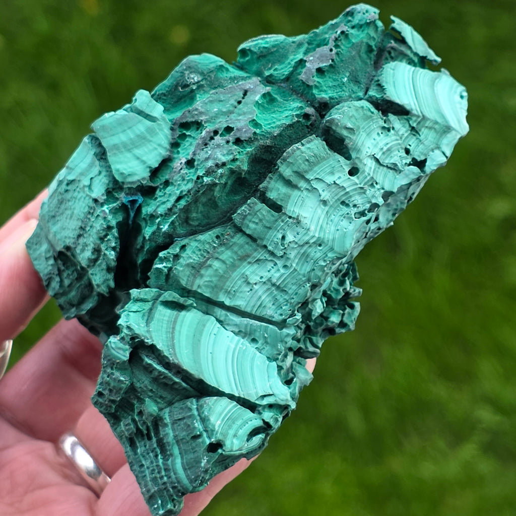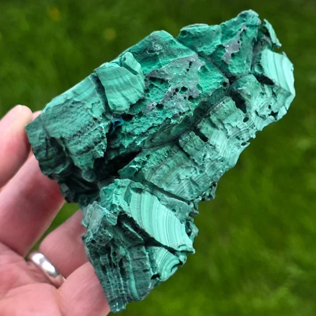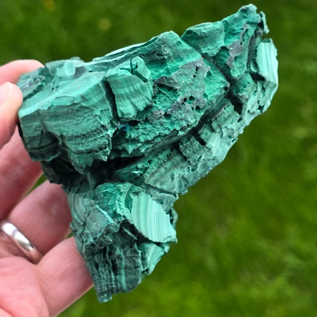 Malachit jest również używany do zwiększania pewności siebie i woli działania, pomagając podejmować decyzje zgodne z pragnieniami serca.