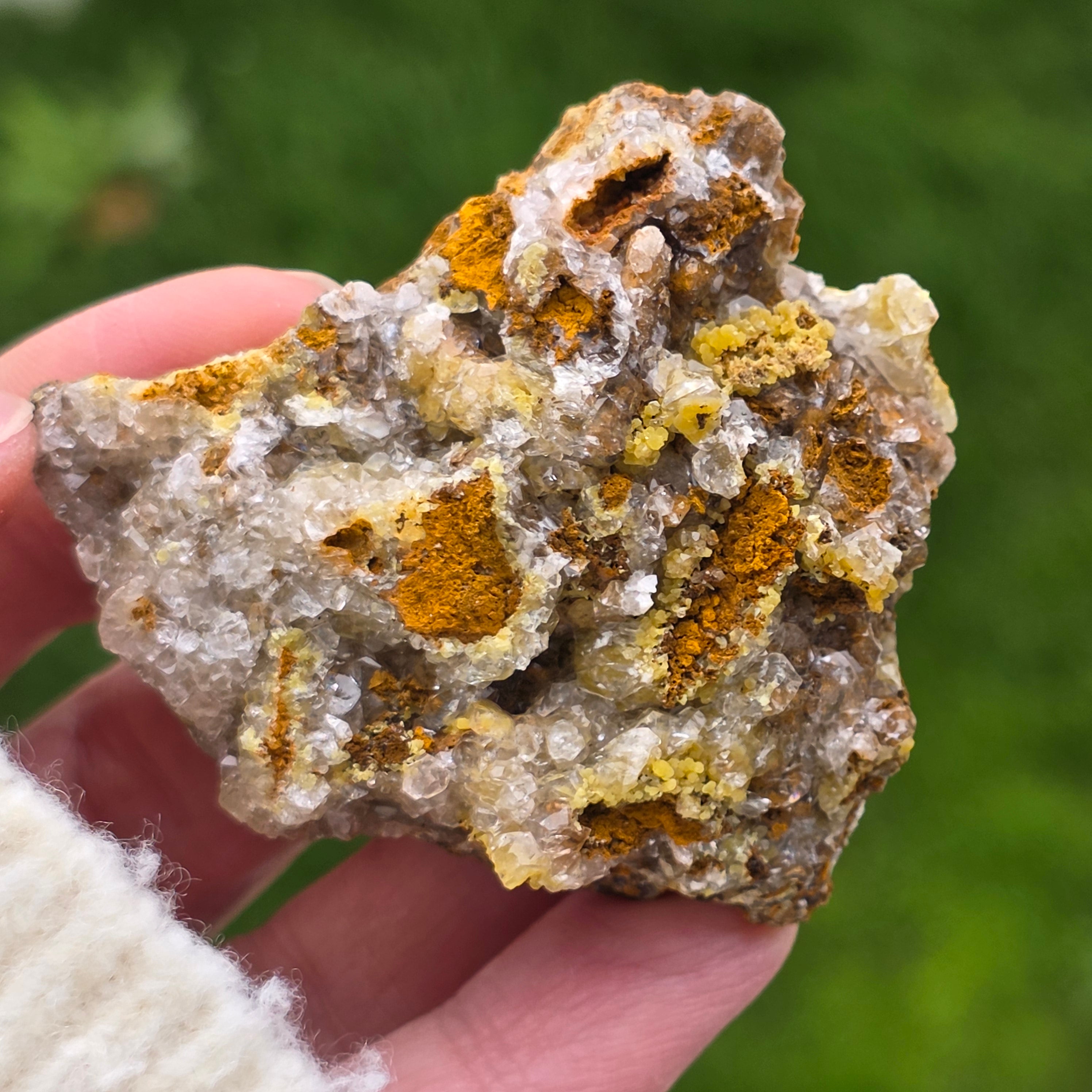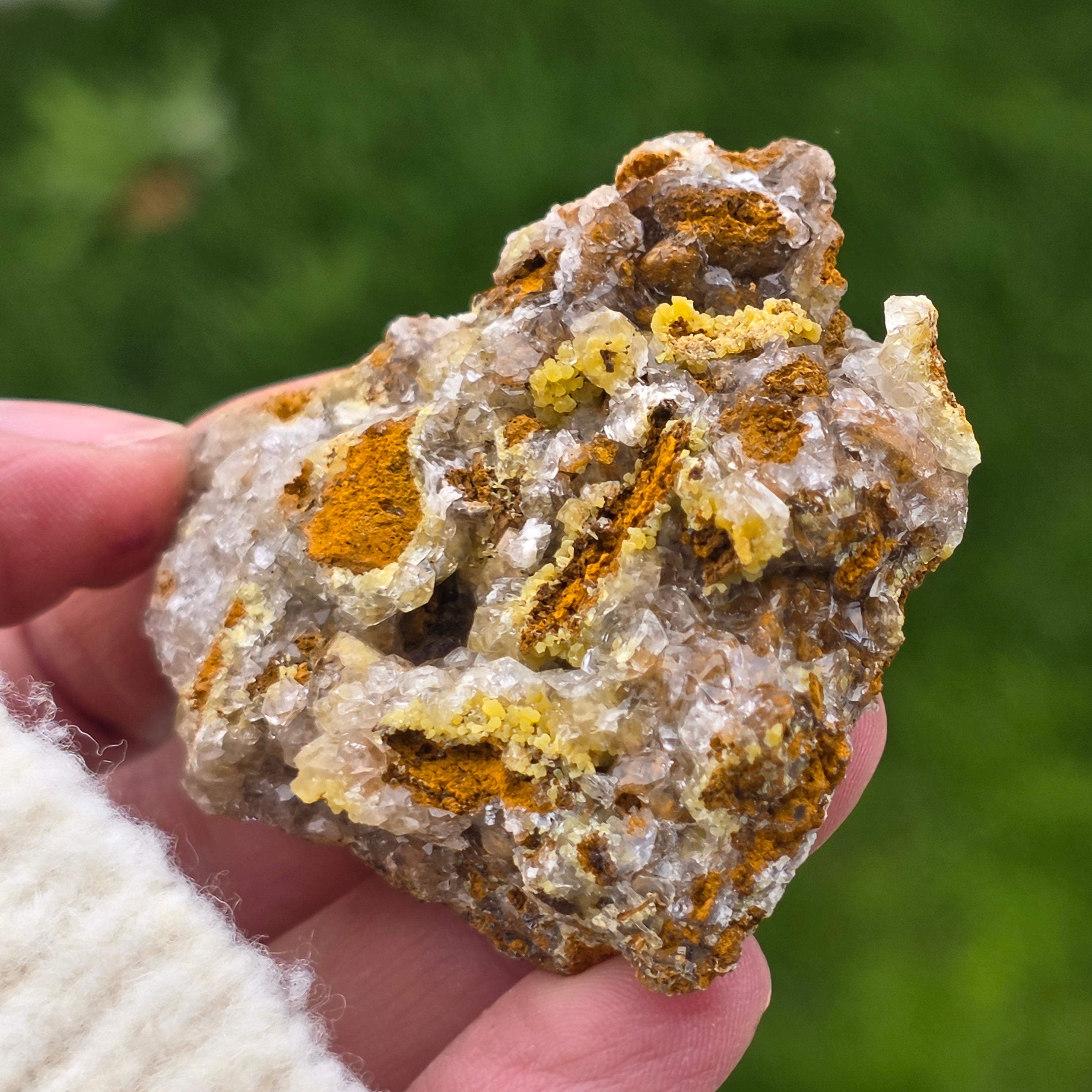 Ten mimetyt z Meksyku jest naturalnym okazem mineralnym cenionym za intensywną, złocisto-żółtą do pomarańczowej barwęoraz za dobrze wykształcone krystalizacje o sześciokątnych kształtach lub zwarte agregaty, typowe dla regionu Mapimí – Kopalnia Ojuela, jednej z najbardziej znanych lokalizacji tego minerału.