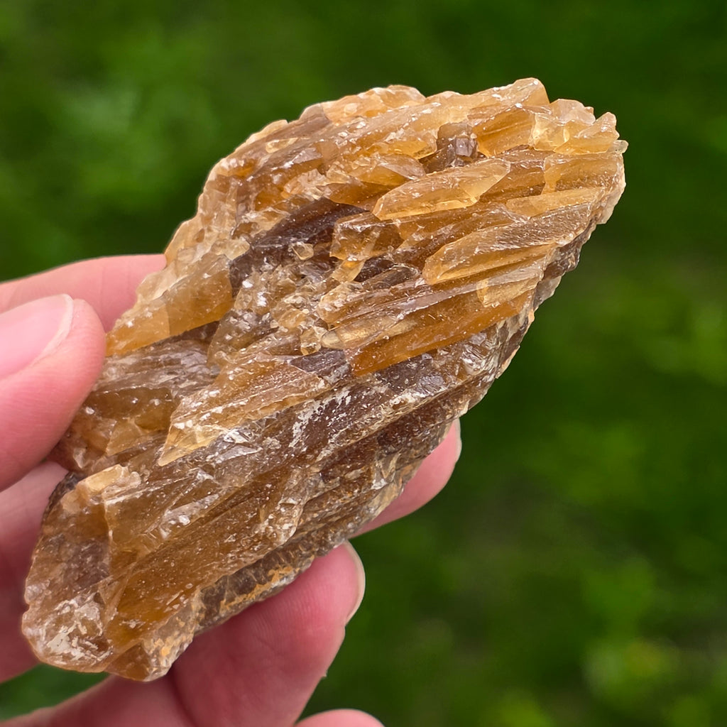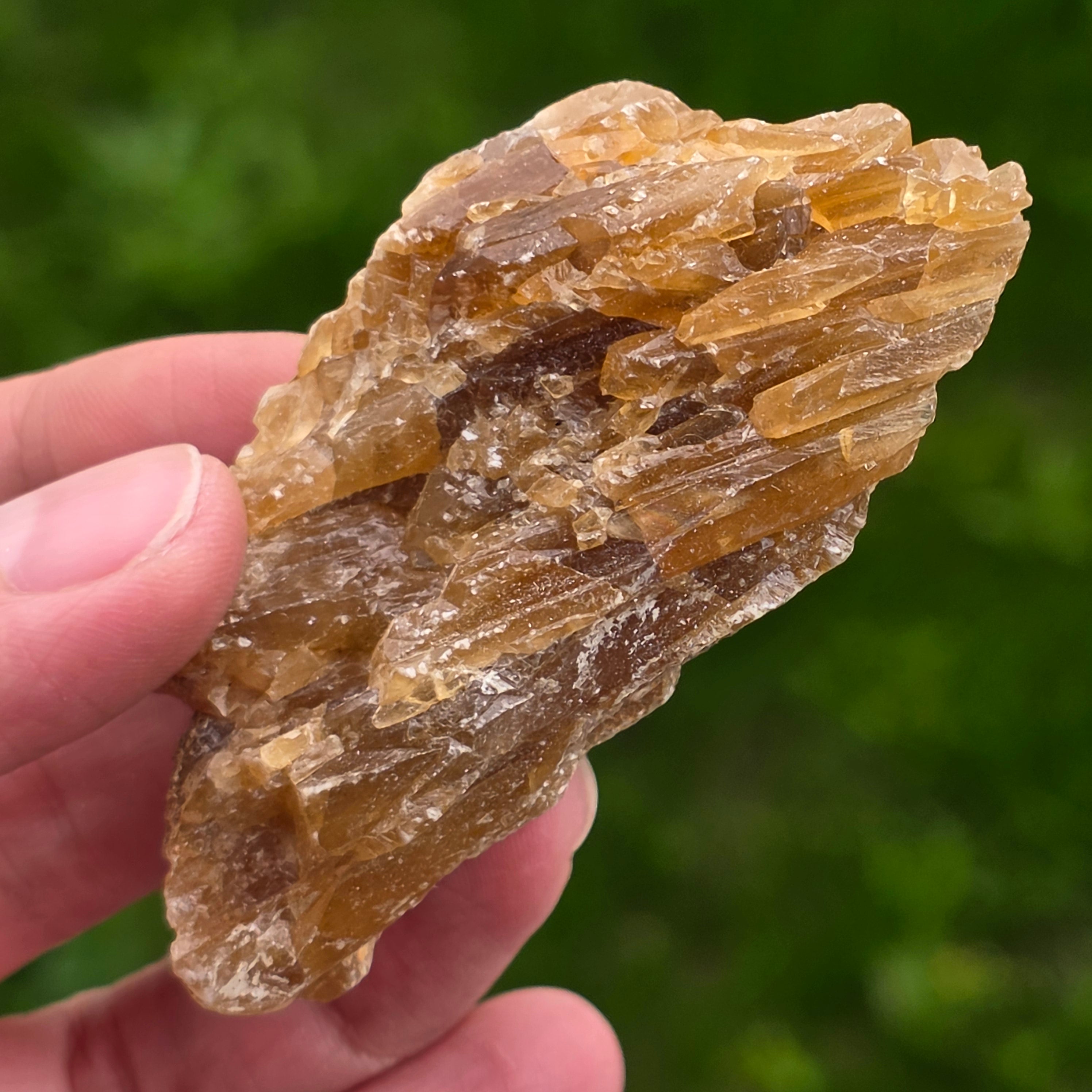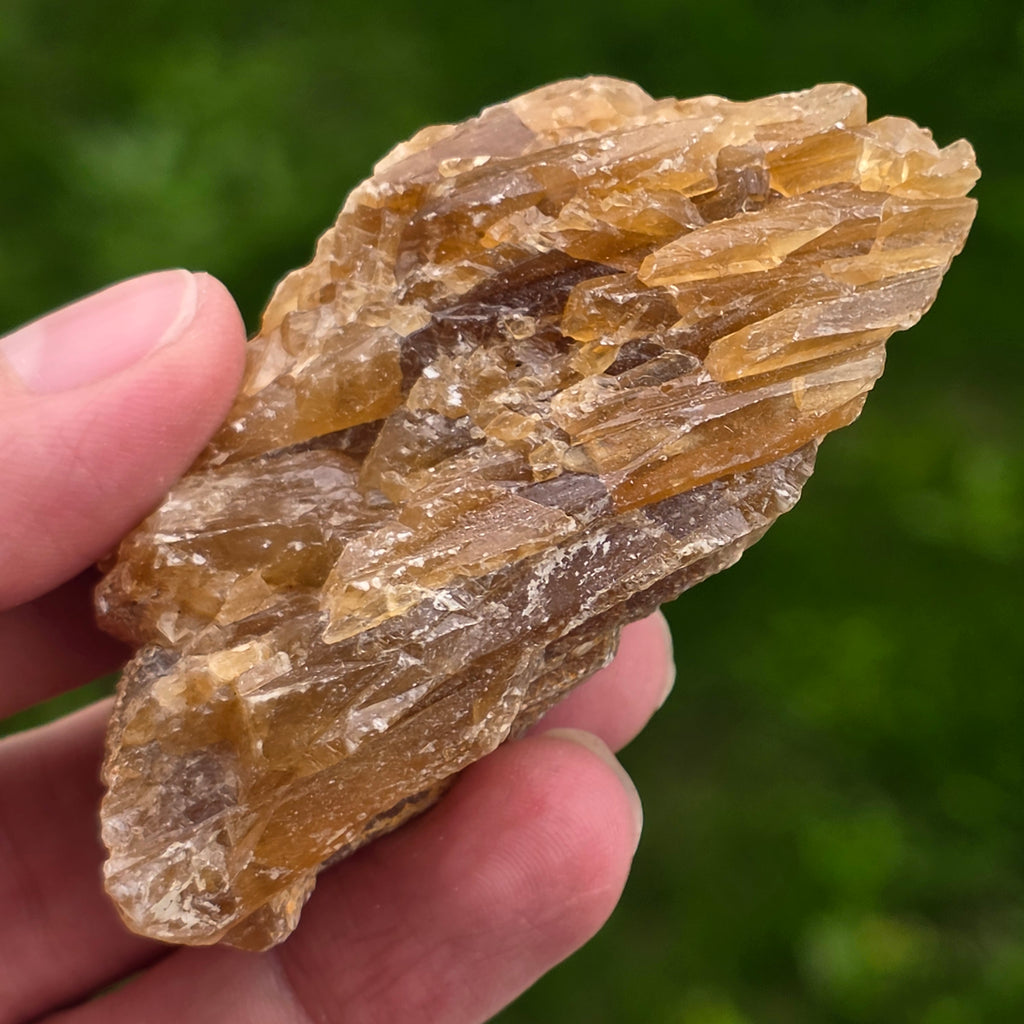 Aragonit miodowy z Namibii to odmiana aragonitu o ciepłych odcieniach żółci, pomarańczy i jasnobrązowego, przypominającego miód, stąd jego nazwa. Aragonit to minerał z rodziny węglanowych, posiadający rombową strukturę krystaliczną, chemicznie podobny do kalcytu, ale różniący się krystalizacją.