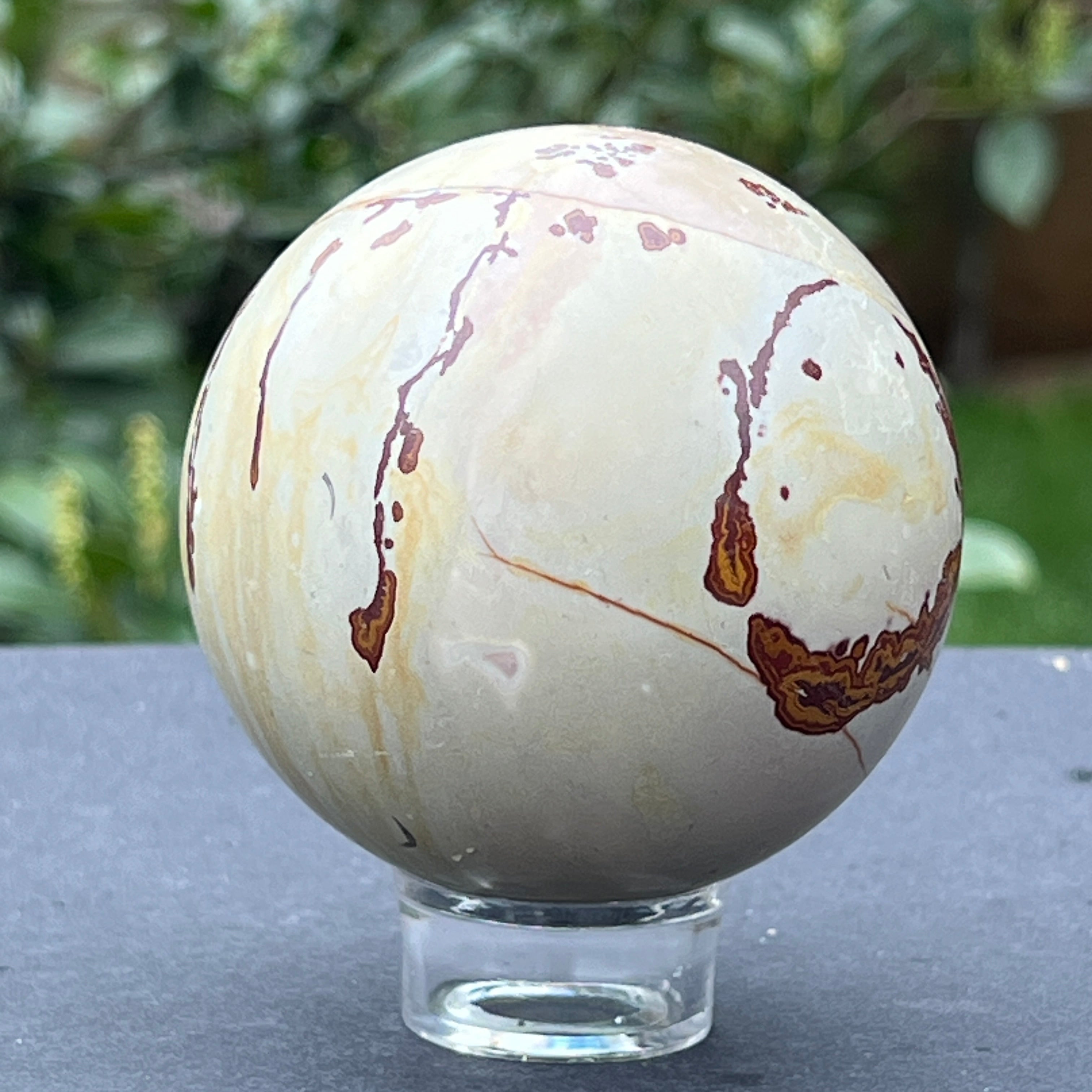 Jaspis krajobrazowy jest związany z czakrą korzenia i uważa się, że ma właściwości stabilizujące, ochronne i łączące z naturą. Mówi się, że promuje równowagę emocjonalną i psychiczną, zachęca do pewności siebie i poprawia połączenie z ziemią.