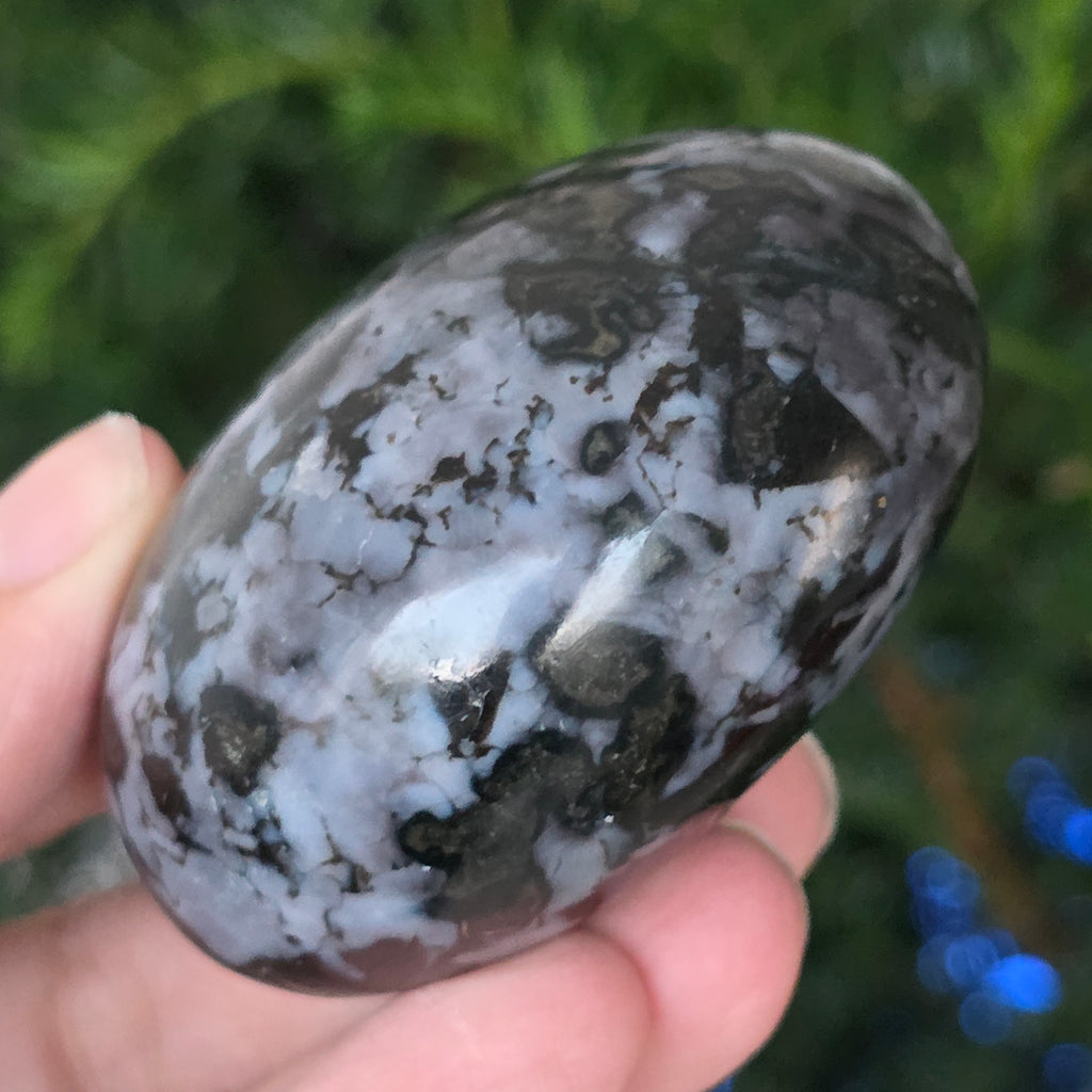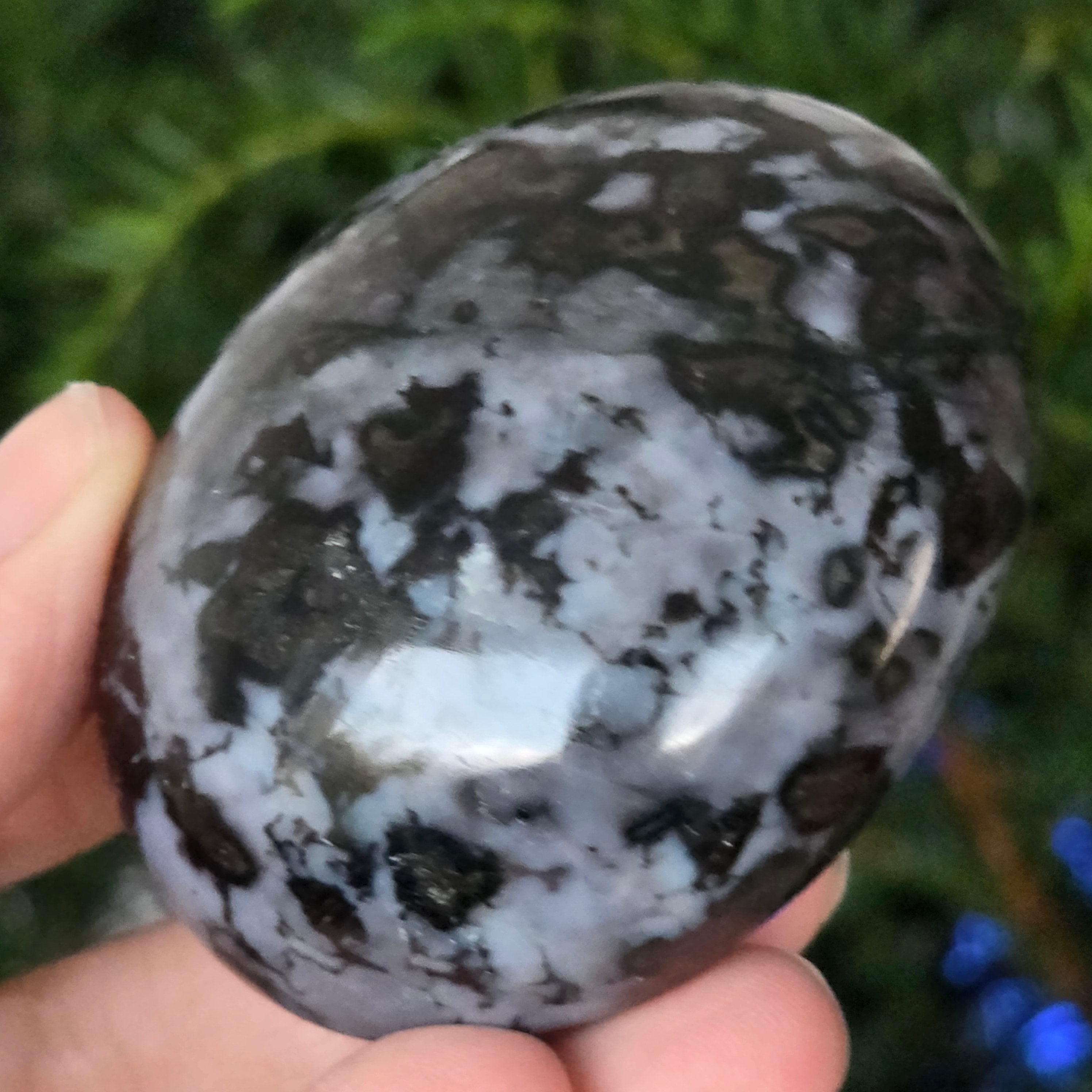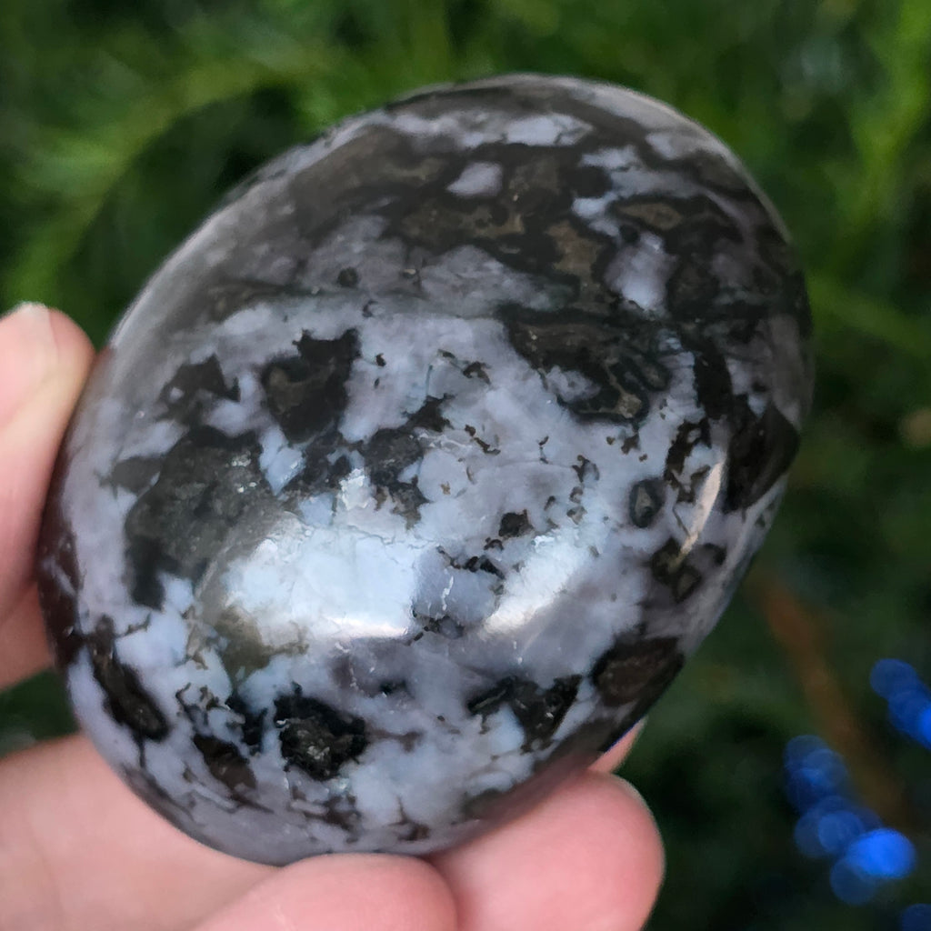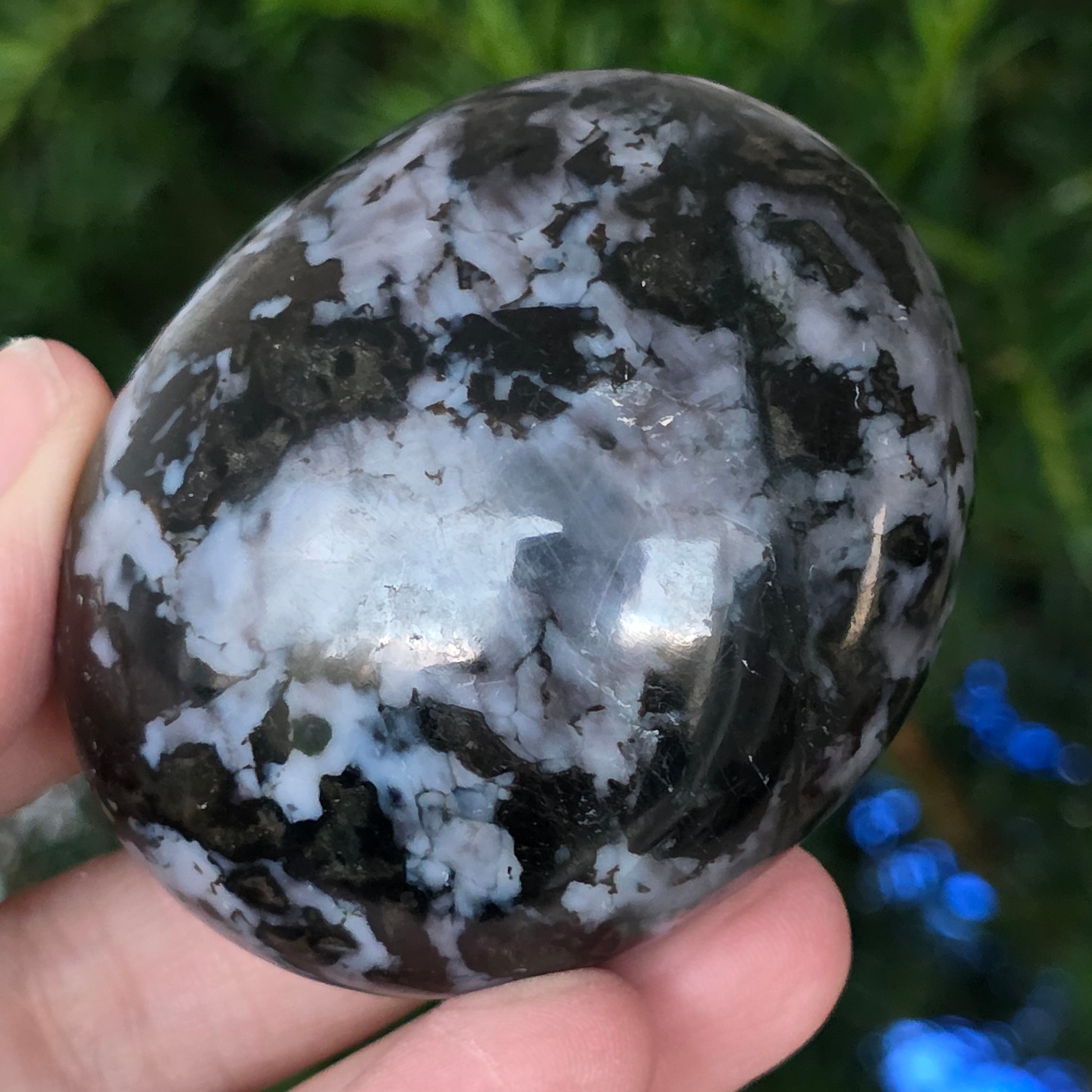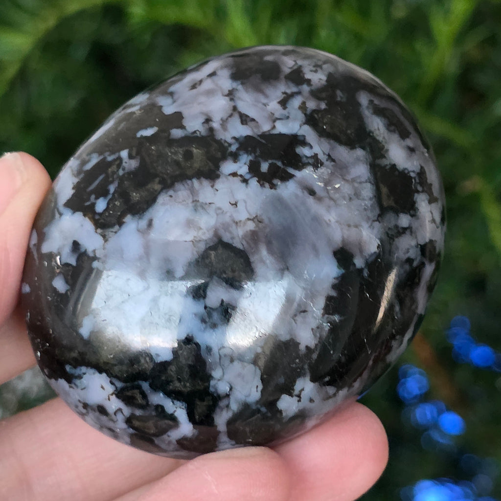 Merlinit to rzadka i fascynująca kamień półszlachetny, znany ze swojej kombinacji kontrastujących kolorów – białego i czarnego, które nadają mu wyjątkowy wygląd. Uważa się go za odmianę opalu dendrytowego lub kombinację kwarcu i innych minerałów, a jego skomplikowana struktura sprawia, że ceniony jest zarówno za piękno, jak i domniemane właściwości energetyczne. Merlinit jest znany w świecie terapii kamieniami ze względu na swoje mistyczne energie oraz związki z intuicją, jasnowidzeniem i duchową wiedzą.