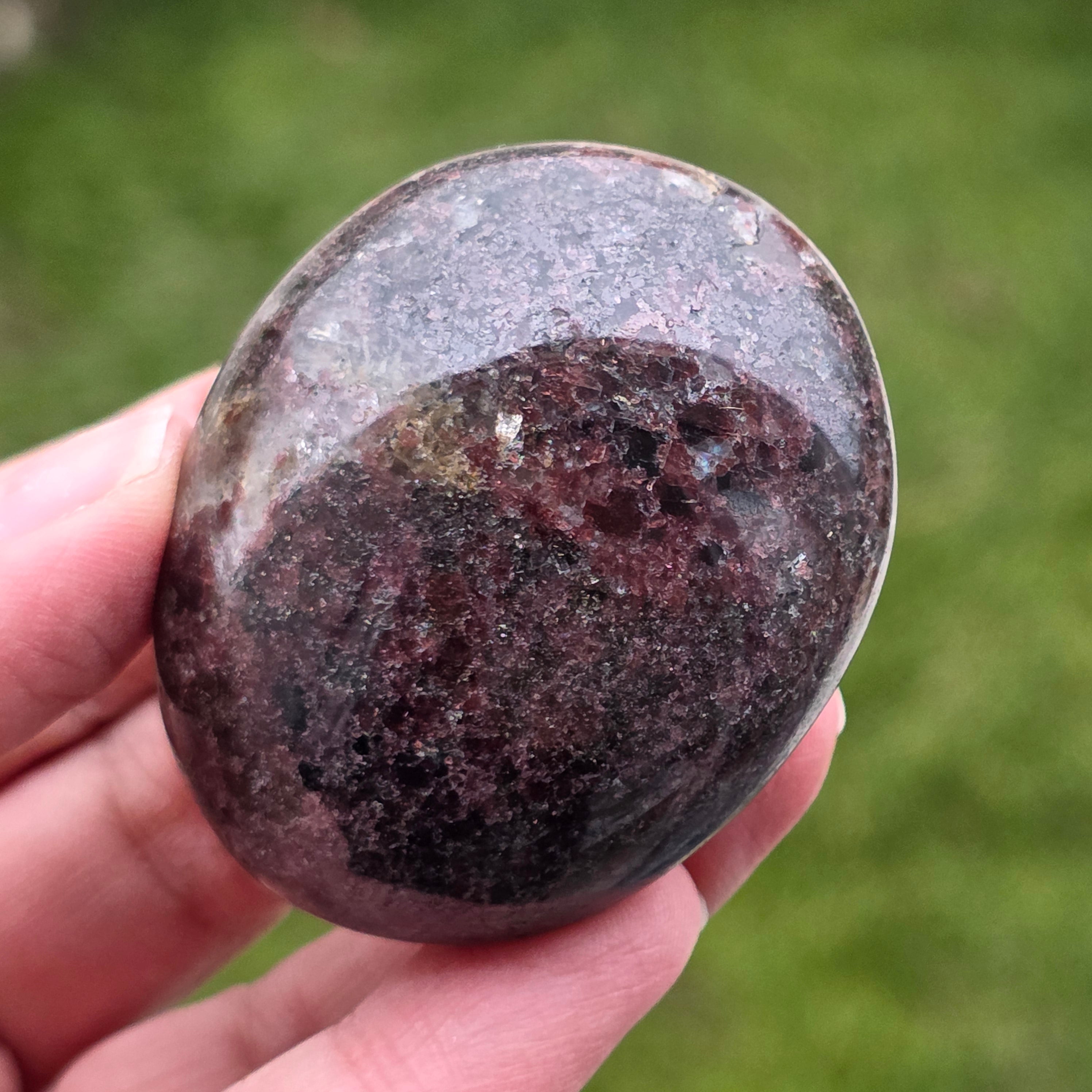 Ten palmstone z naturalnego granatu jest idealny do medytacji, introspekcji lub po prostu do trzymania blisko w momentach, gdy potrzebujesz ugruntowania i stabilności. Jego głęboka energia rezonuje z czakrą podstawy, przynosząc witalność i ochronę.