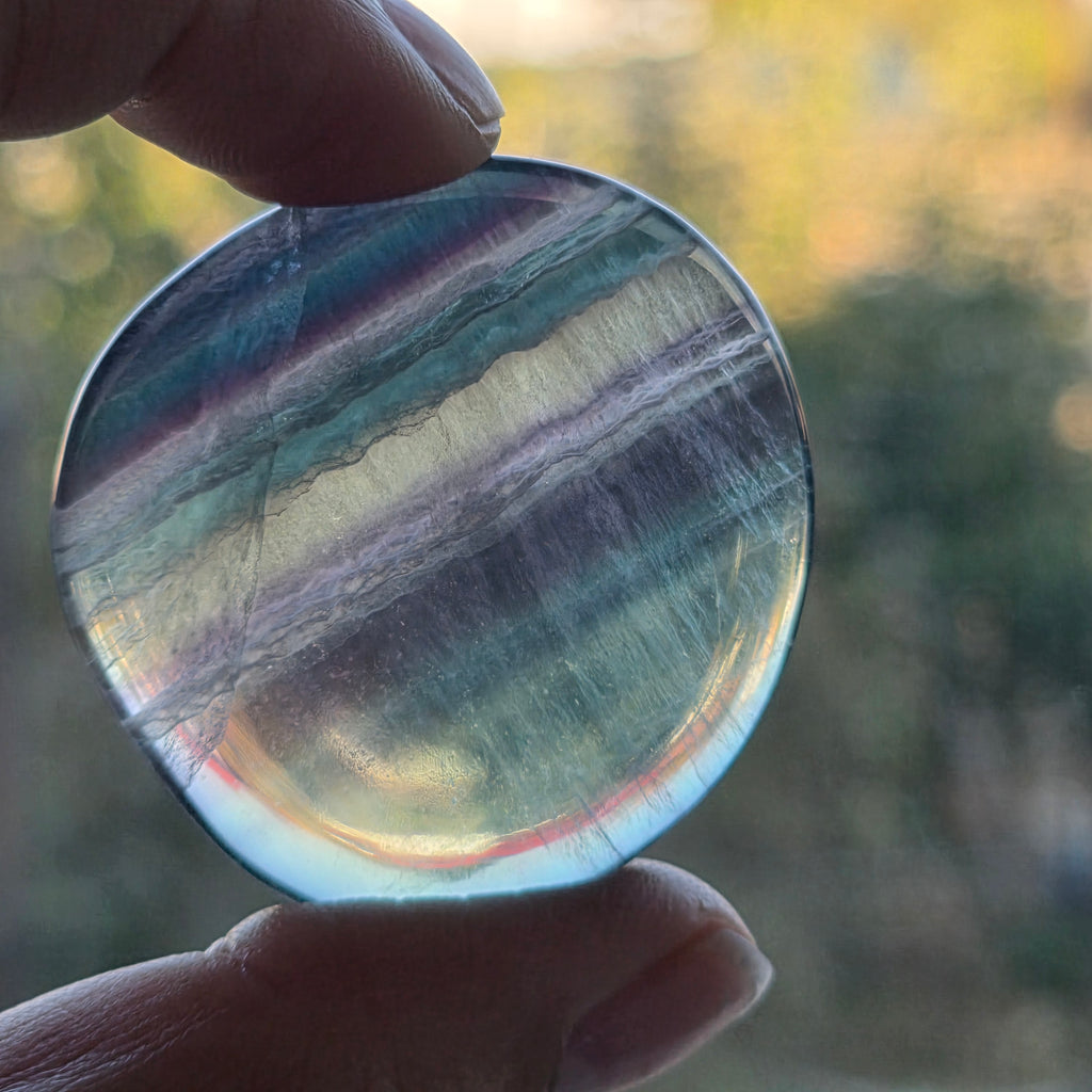 Ta mieszanka kolorów sprawia, że tęczowe fluoryt jest uważane za kamień ochrony, który eliminuje negatywną energię i pomaga uporządkować myśli, dzięki czemu jest idealny dla osób poszukujących jasności umysłowej i duchowej.