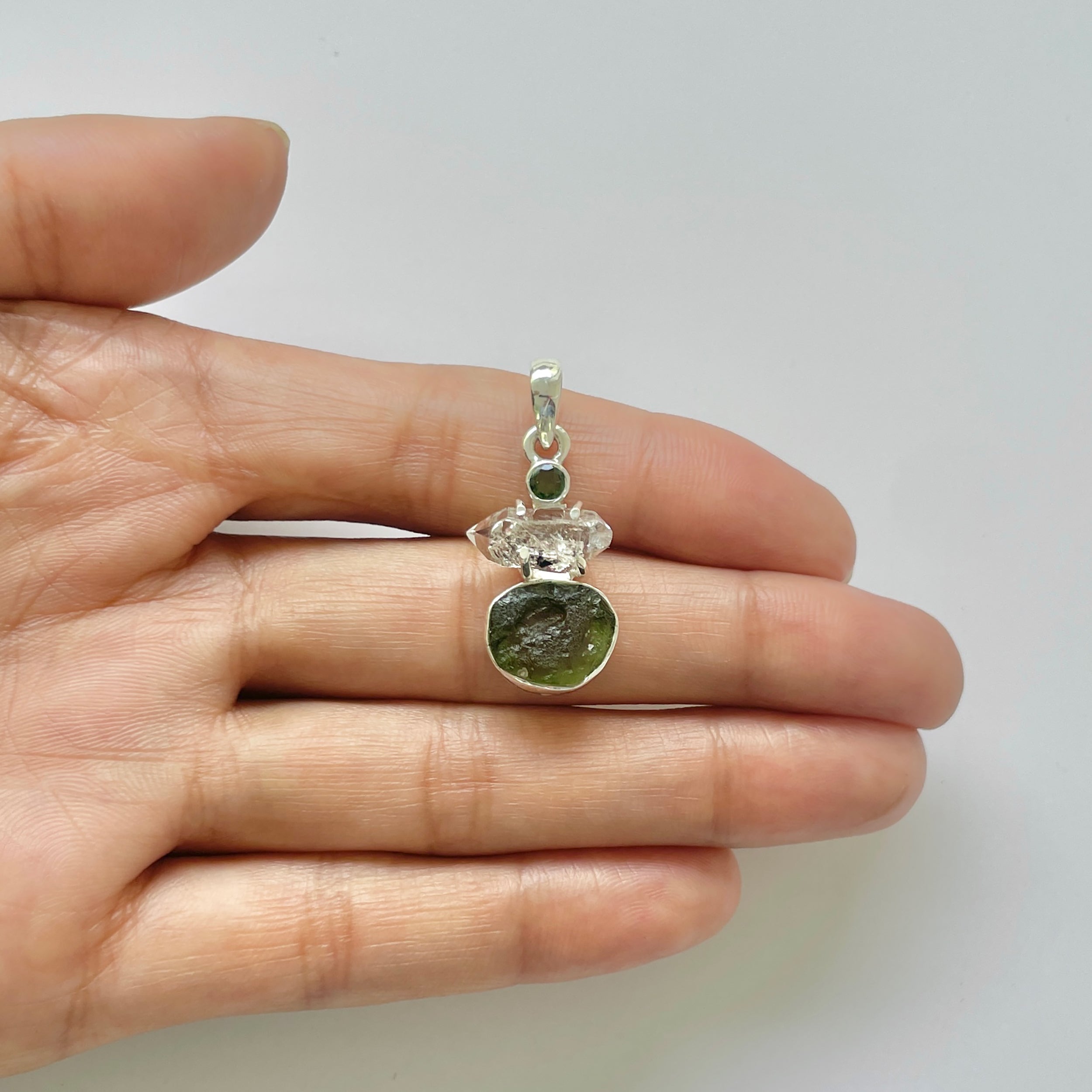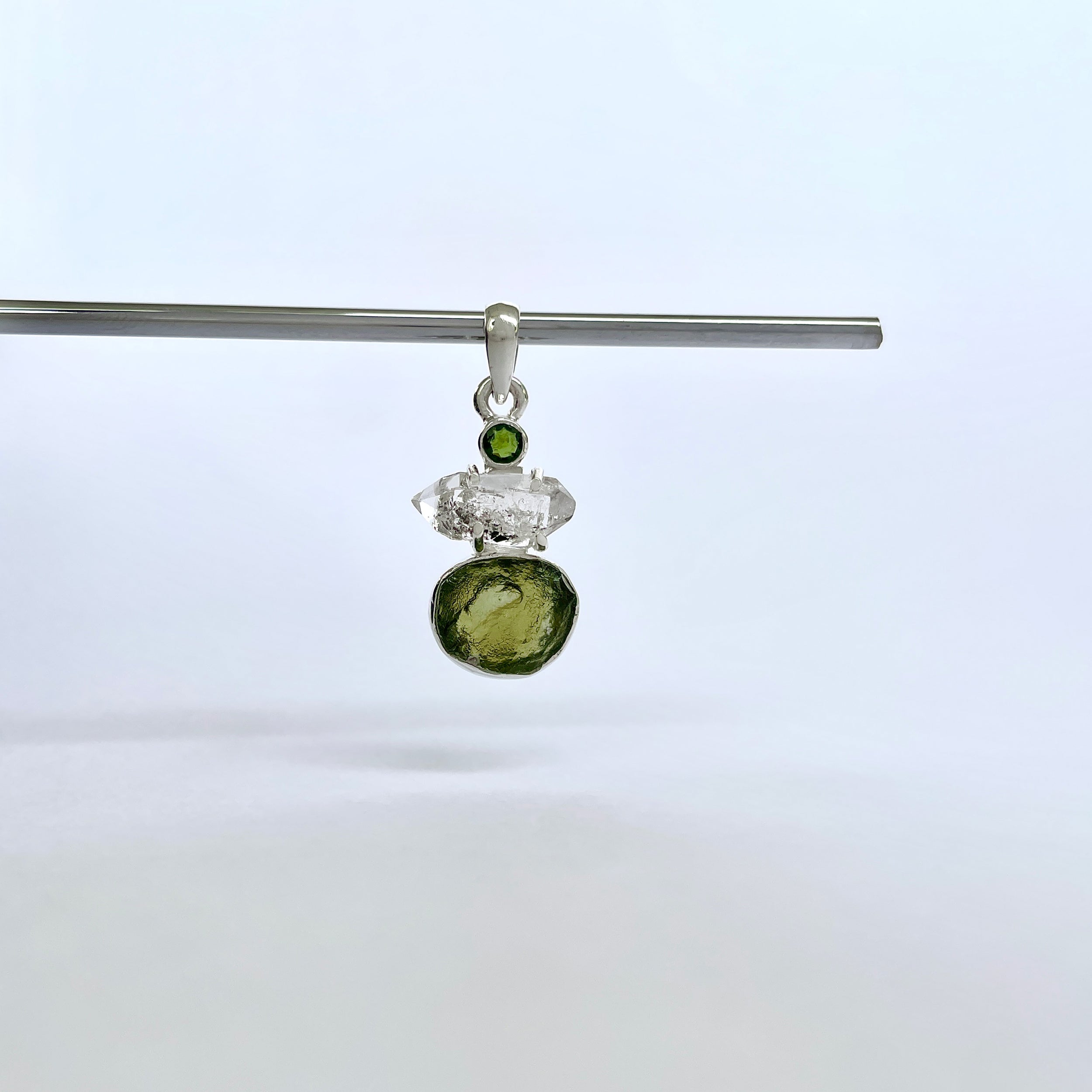 Rozmiar kamienia: Mołdawit ~ 1 x 0,7 cm, Herkimer ~ 1 x 0,6 cm