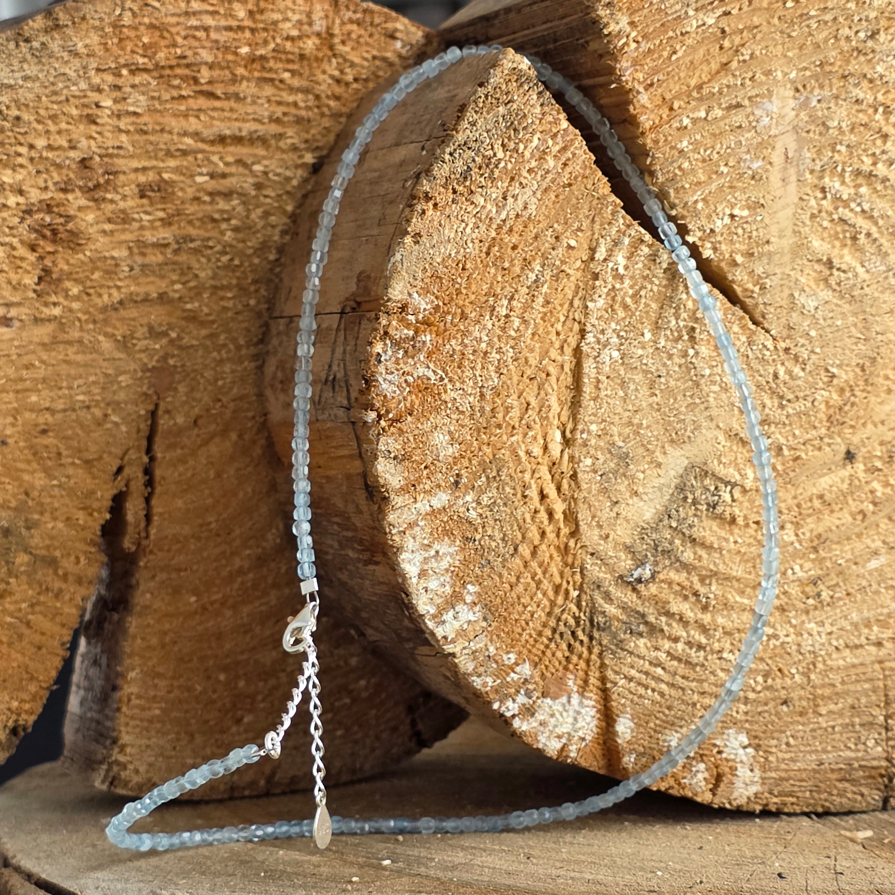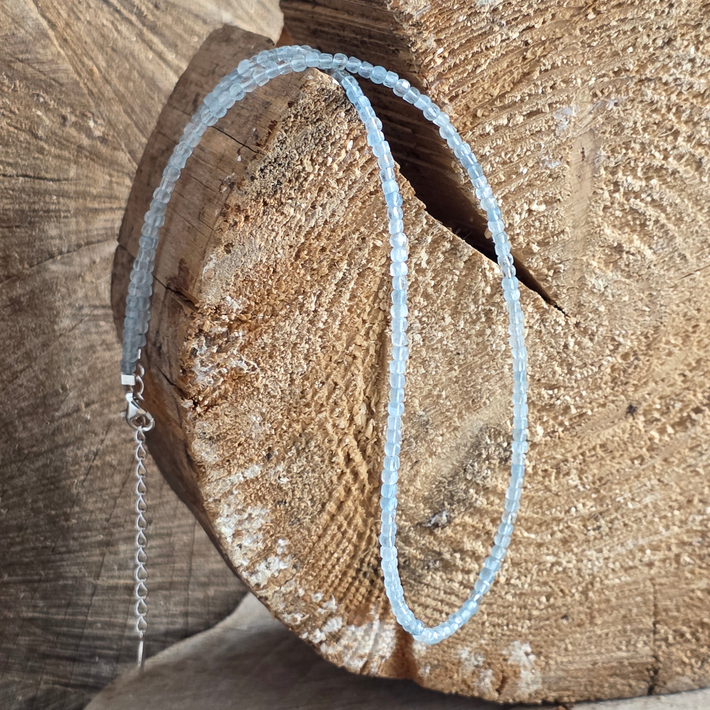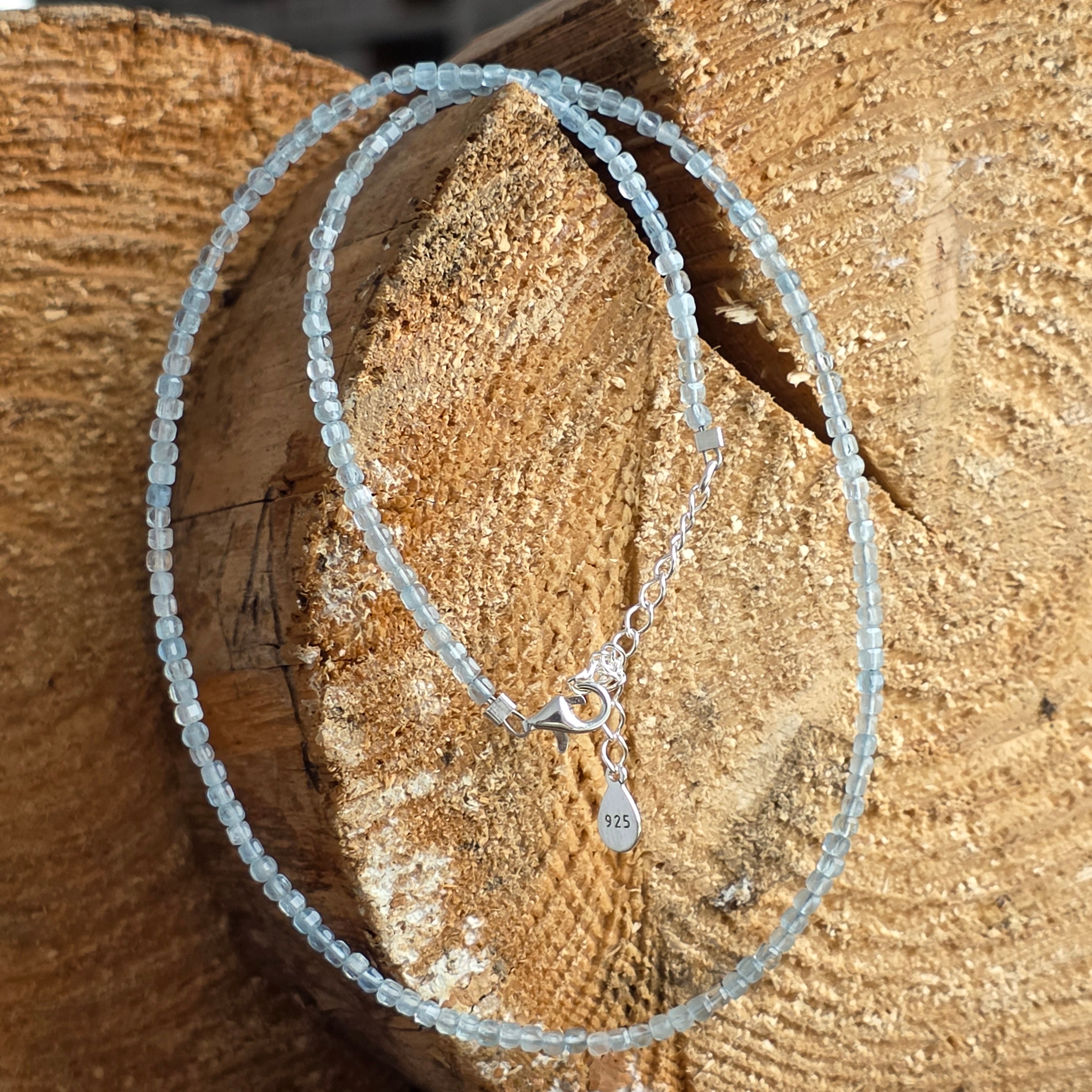 Materiały: naturalny akwamaryn kostki 3 mm, srebro 925