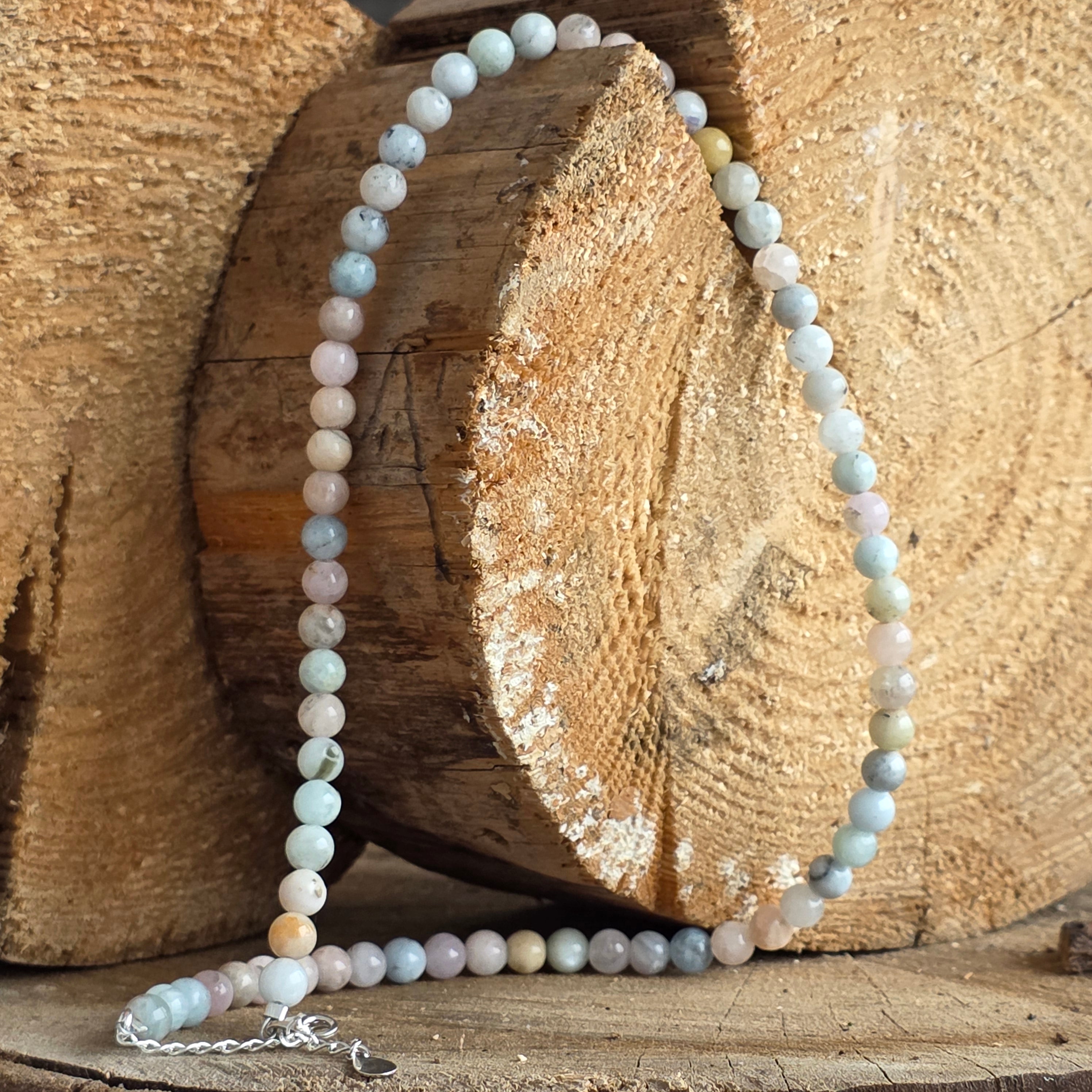 Akwamaryn to kamień emocjonalnej jasności, szczerej komunikacji i zaufania do własnej prawdy. Mówi się, że uspokaja serce, usuwa niepokój i przynosi łagodną odwagę. Perły uzupełniają tę wibrację swoją ponadczasową gracją – symbolem intuicji, łagodności i harmonii.