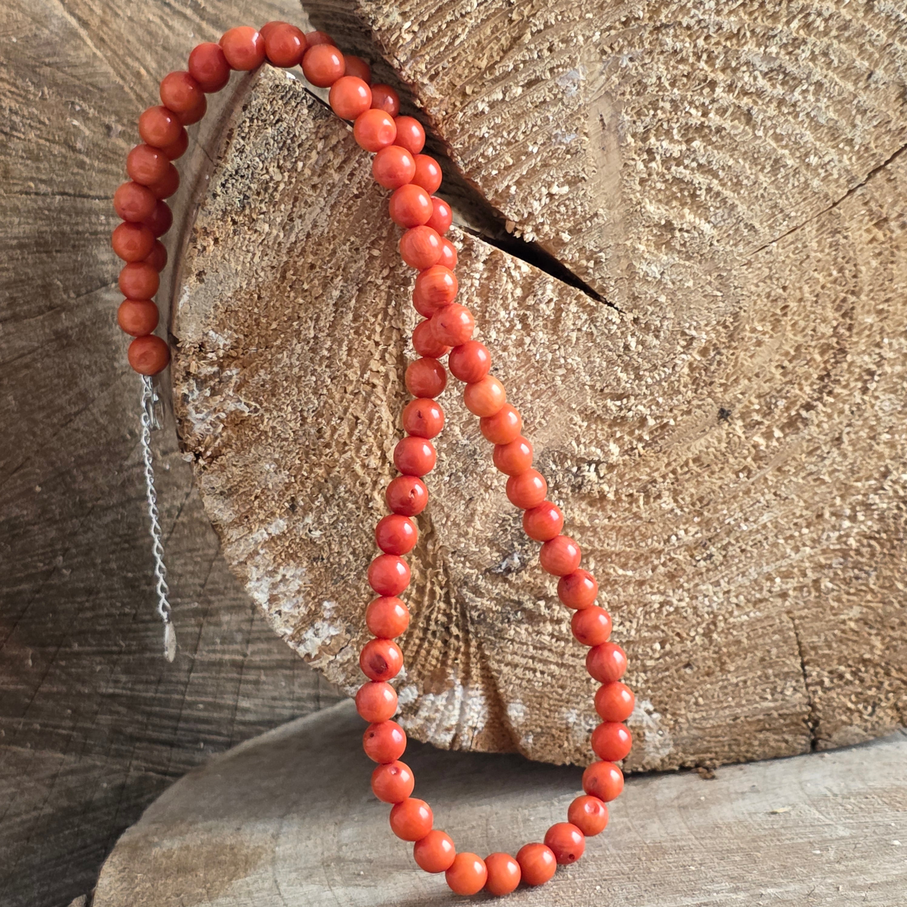 Materiały: naturalny pomarańczowy koral, kulki kuliste 6 mm, srebro 925