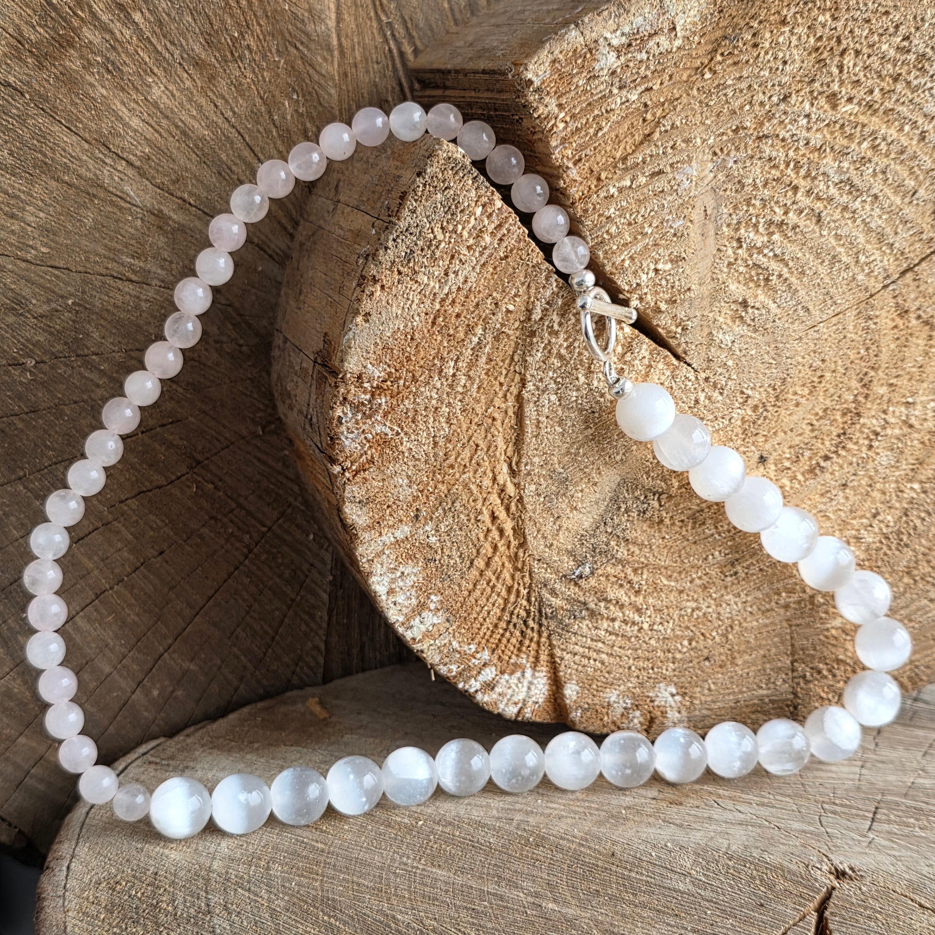 Naszyjnik Miłości z Selenitu i Różowego Kwarcu #92