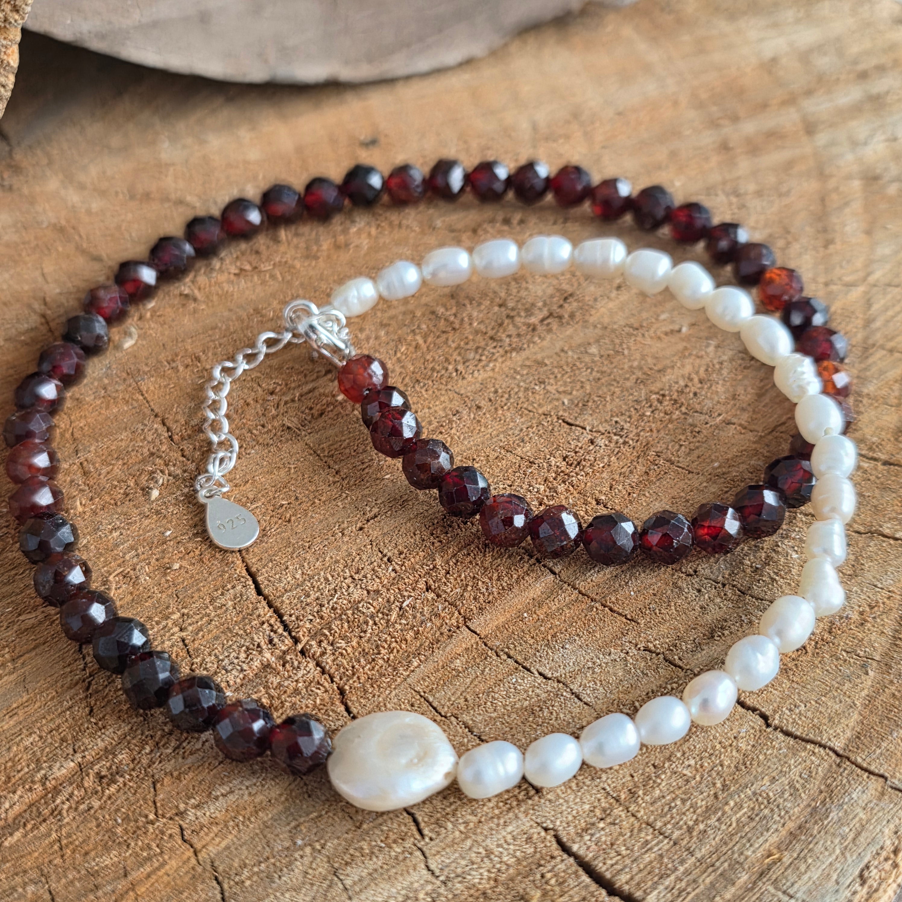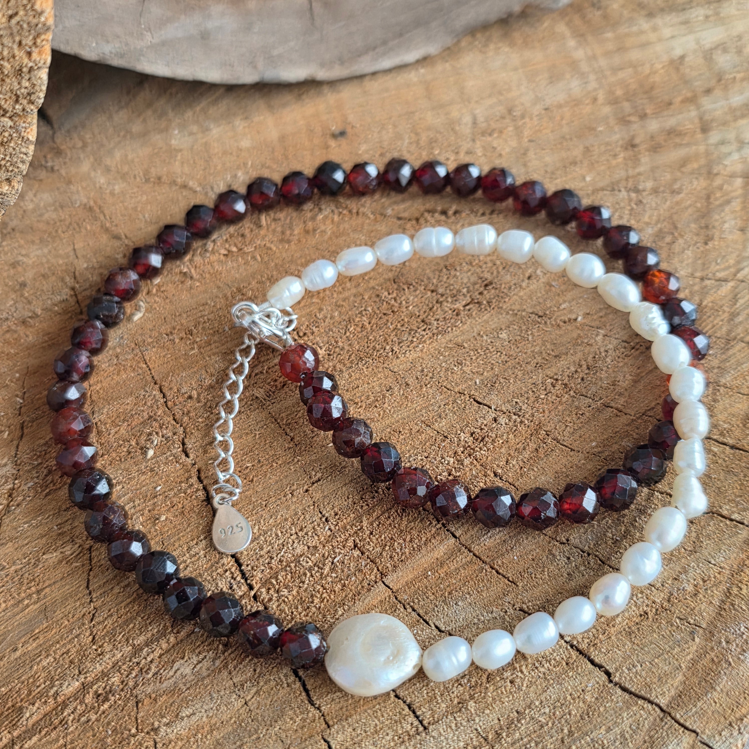 Przybory: 6 mm naturalny granat, naturalne perły, 925 srebrne