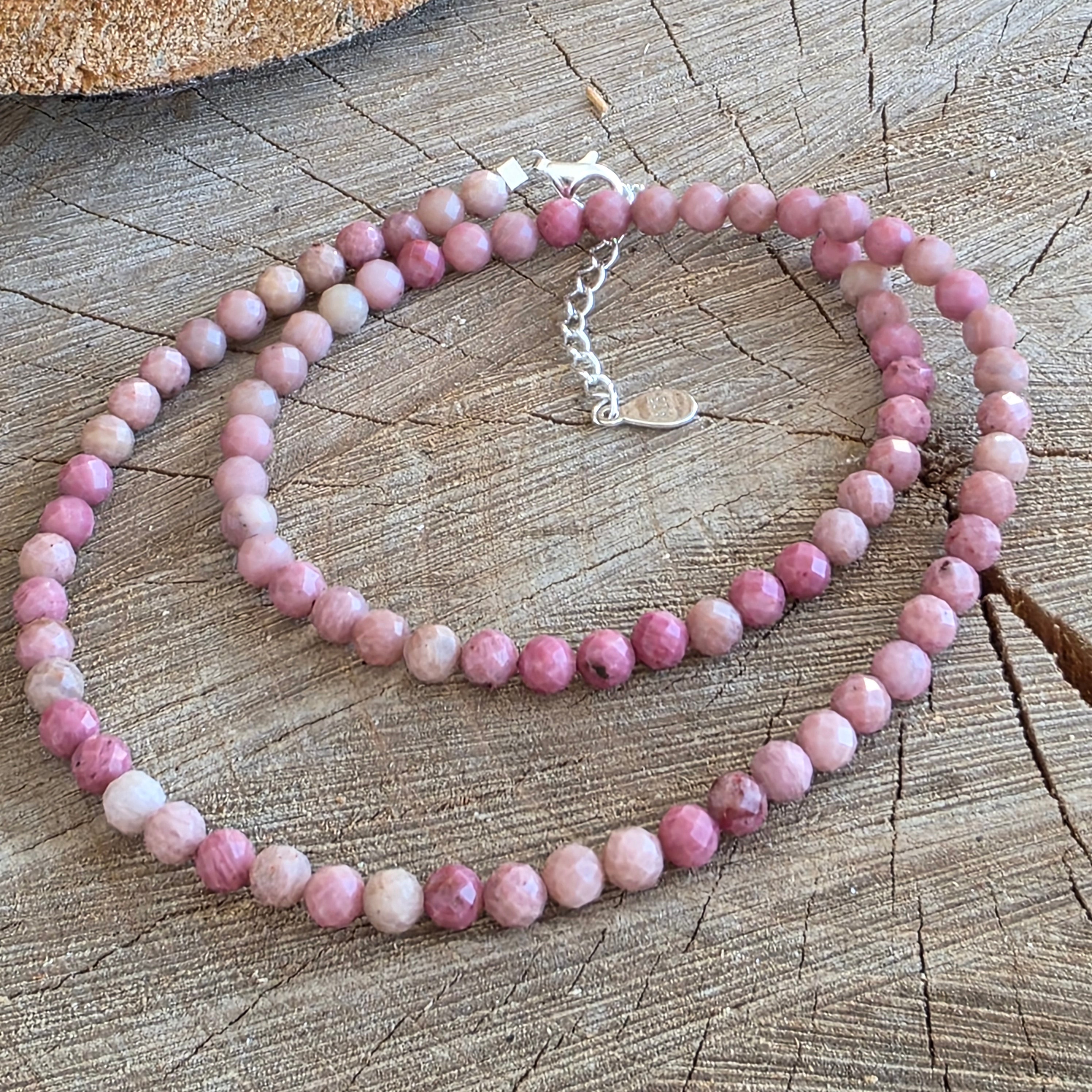 Materiały: naturalny różowy opal, fasetowane koraliki 3 mm, srebro 925