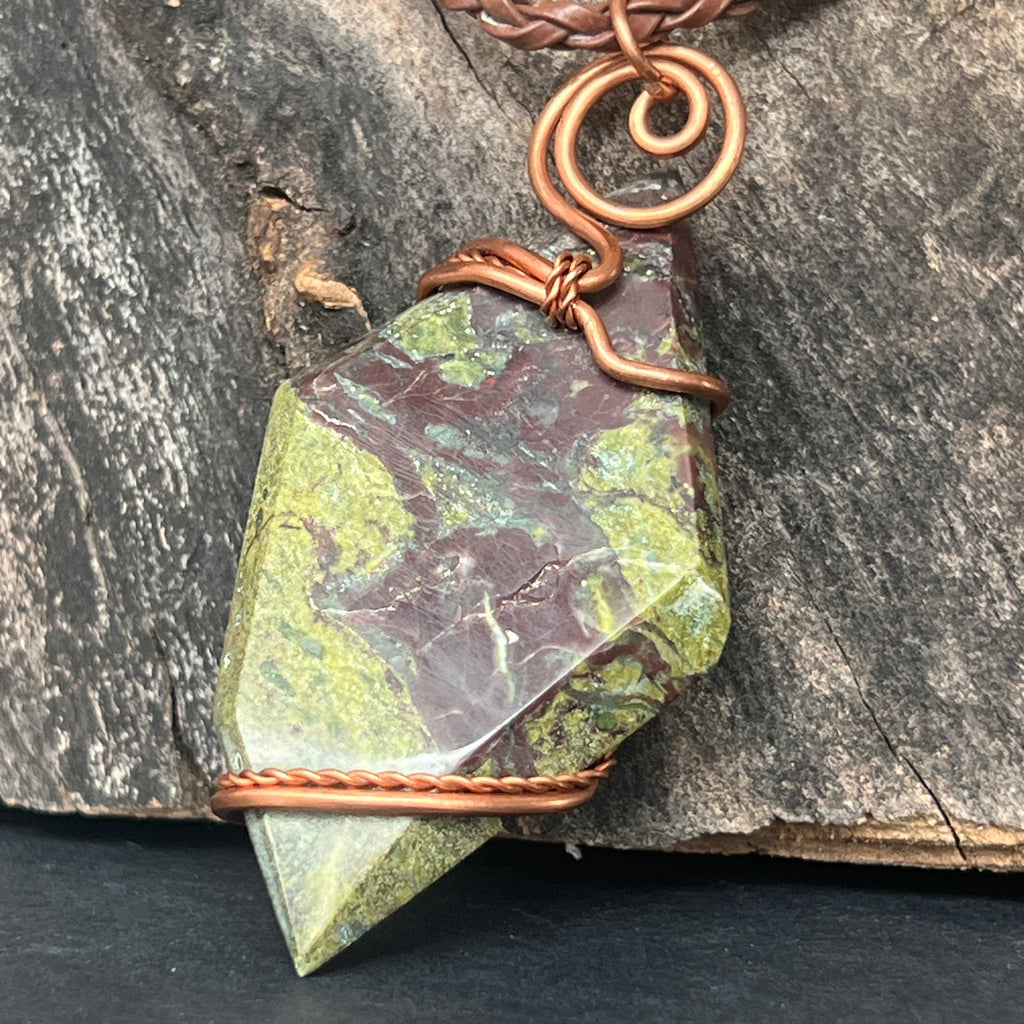 Opis - Naszyjnik wisiorek ze smoczą krwią z miedzi/drutu artystycznego m1