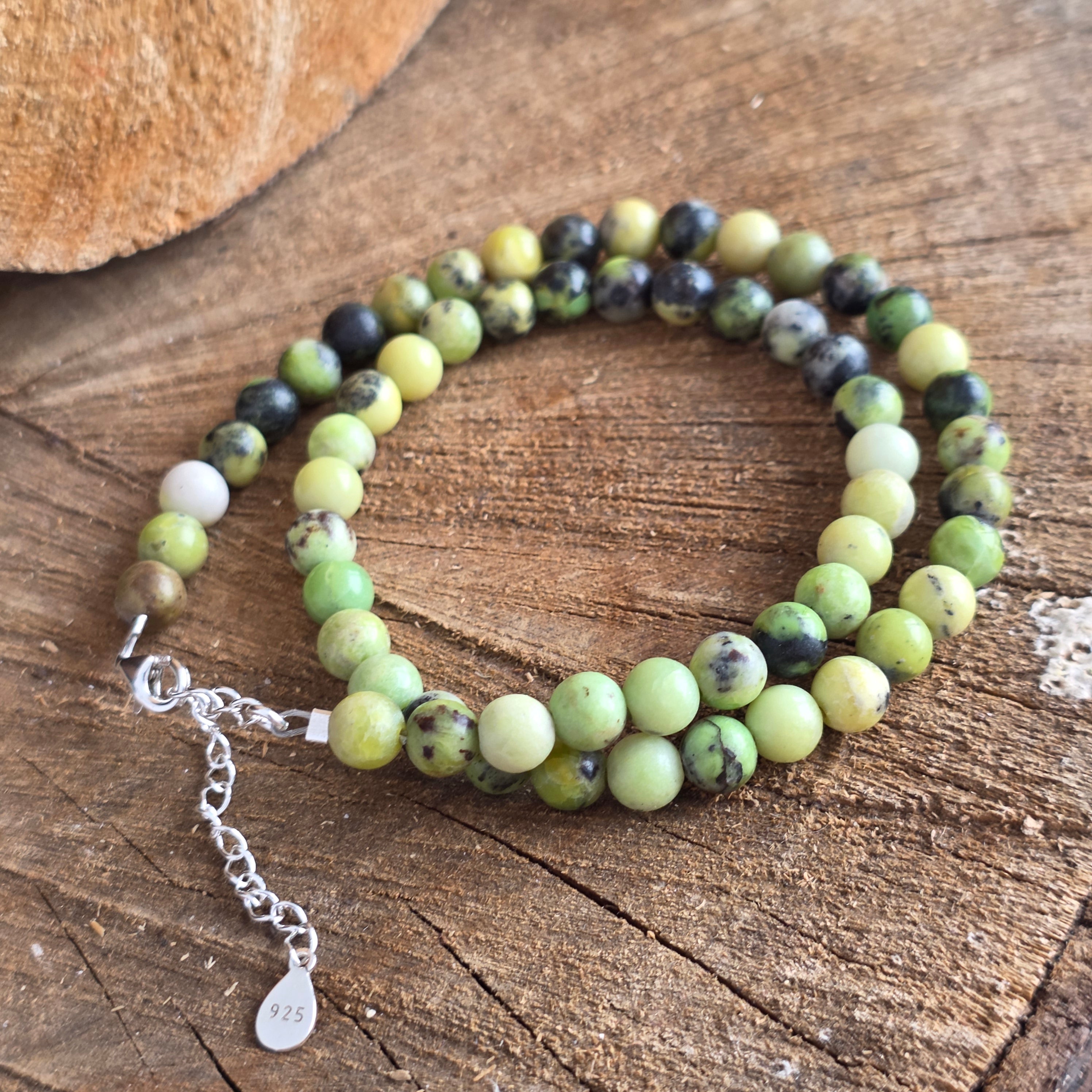 Zielony jadeit jest związany z czakrą serca – miejscem współczucia, akceptacji i bezwarunkowej miłości. Przynosi harmonię, szczęście i spokój, często noszony jako symbol spokojnej obfitości i ochrony energetycznej.
