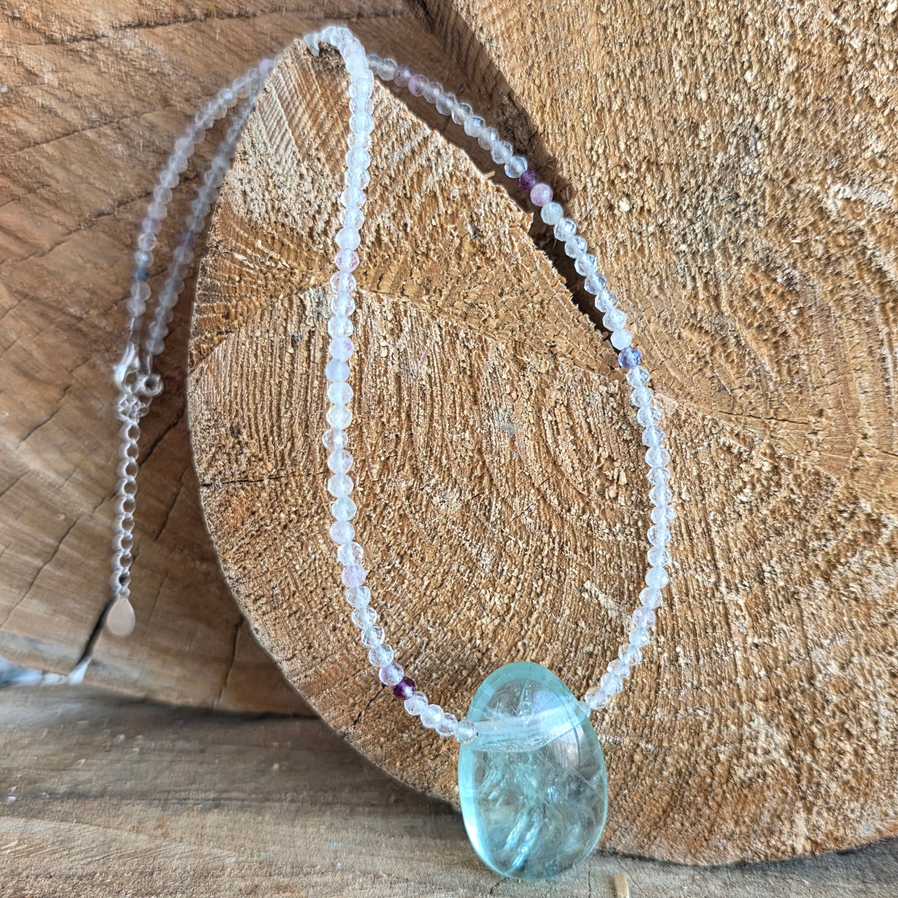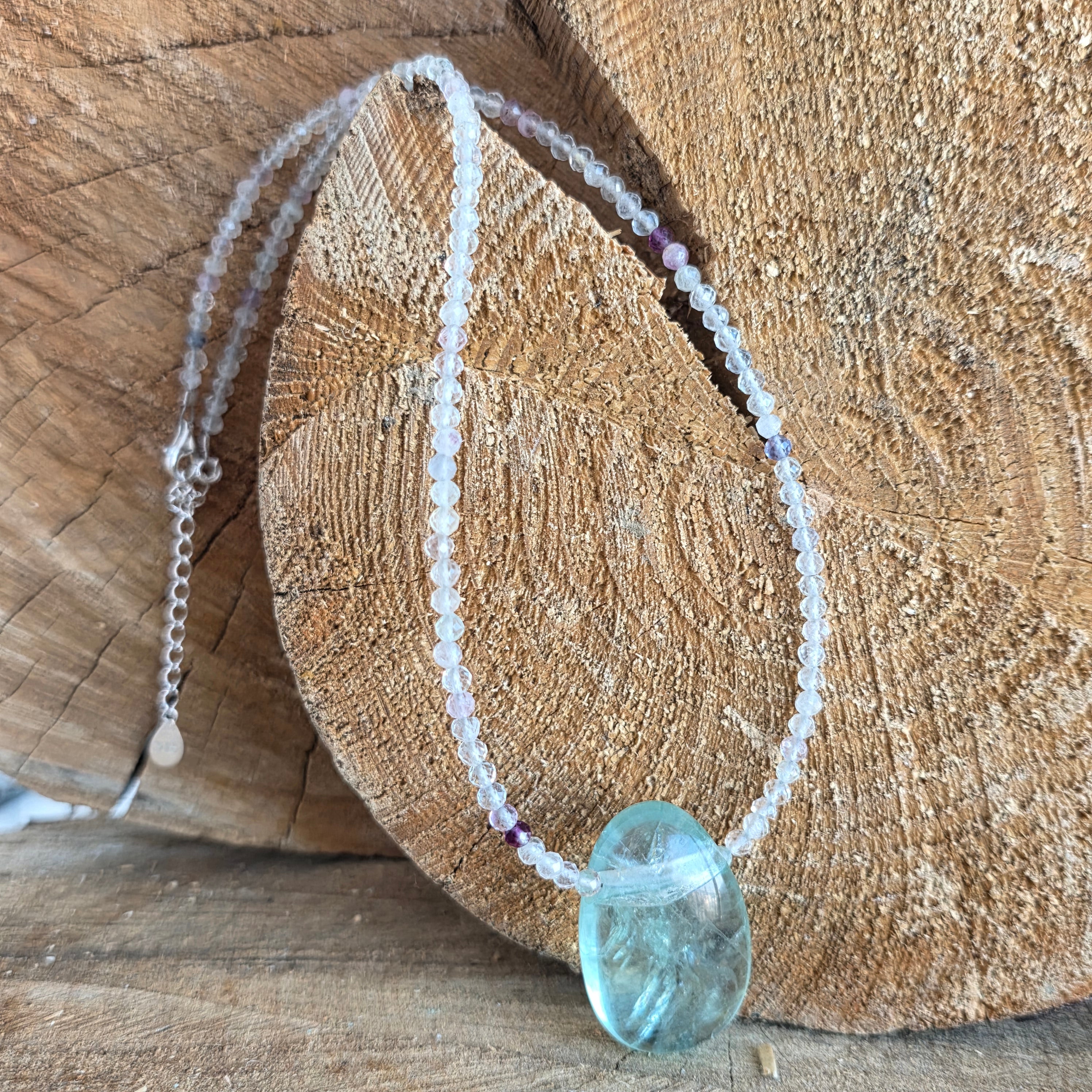 W tradycji kryształoterapii fluoryt kojarzony jest z jasnością umysłu, organizacją myśli i równowagą wewnętrzną. Noszony jako biżuteria, jest postrzegany jako subtelne wsparcie dla koncentracji i stabilności emocjonalnej, nie przyćmiewając estetycznego piękna naszyjnika.