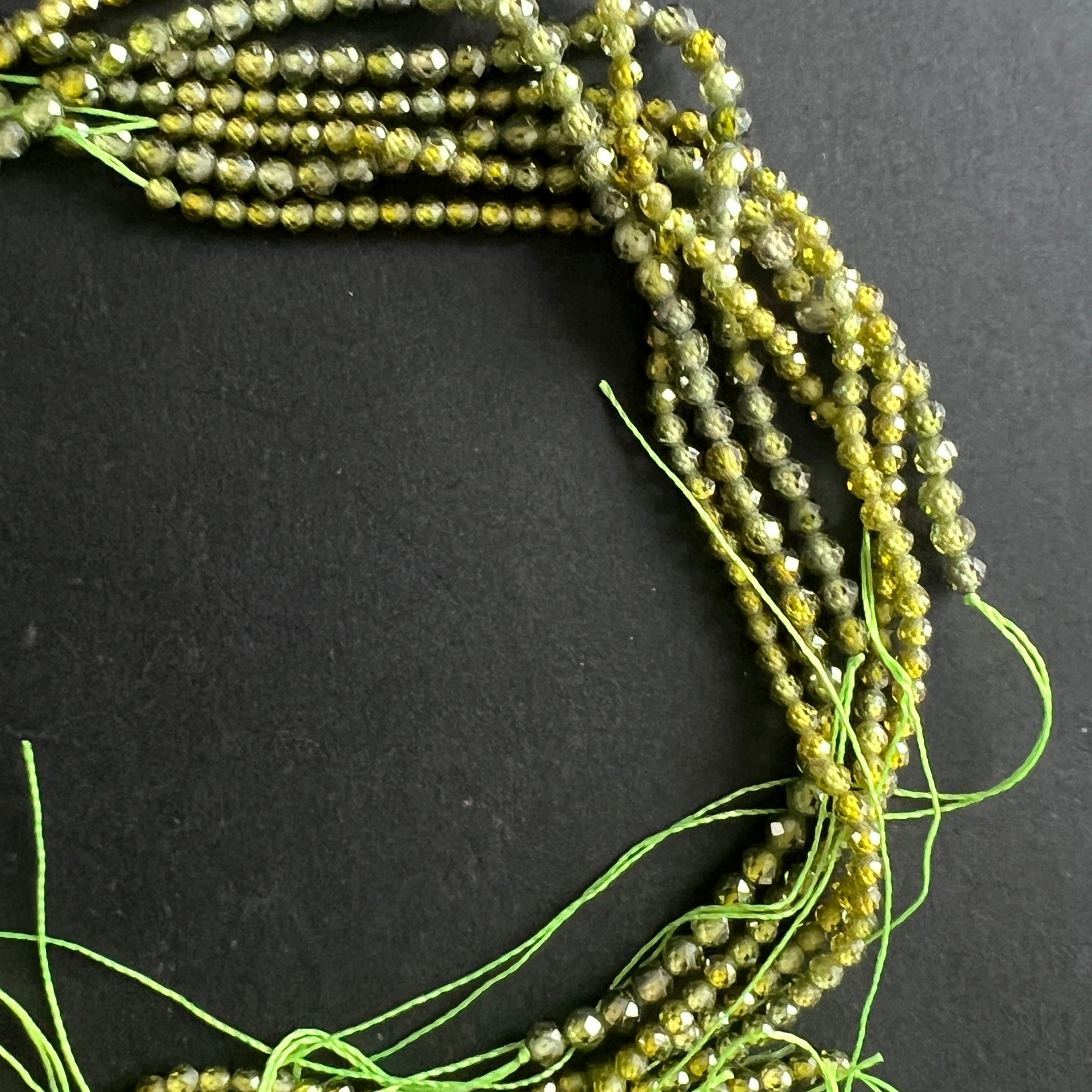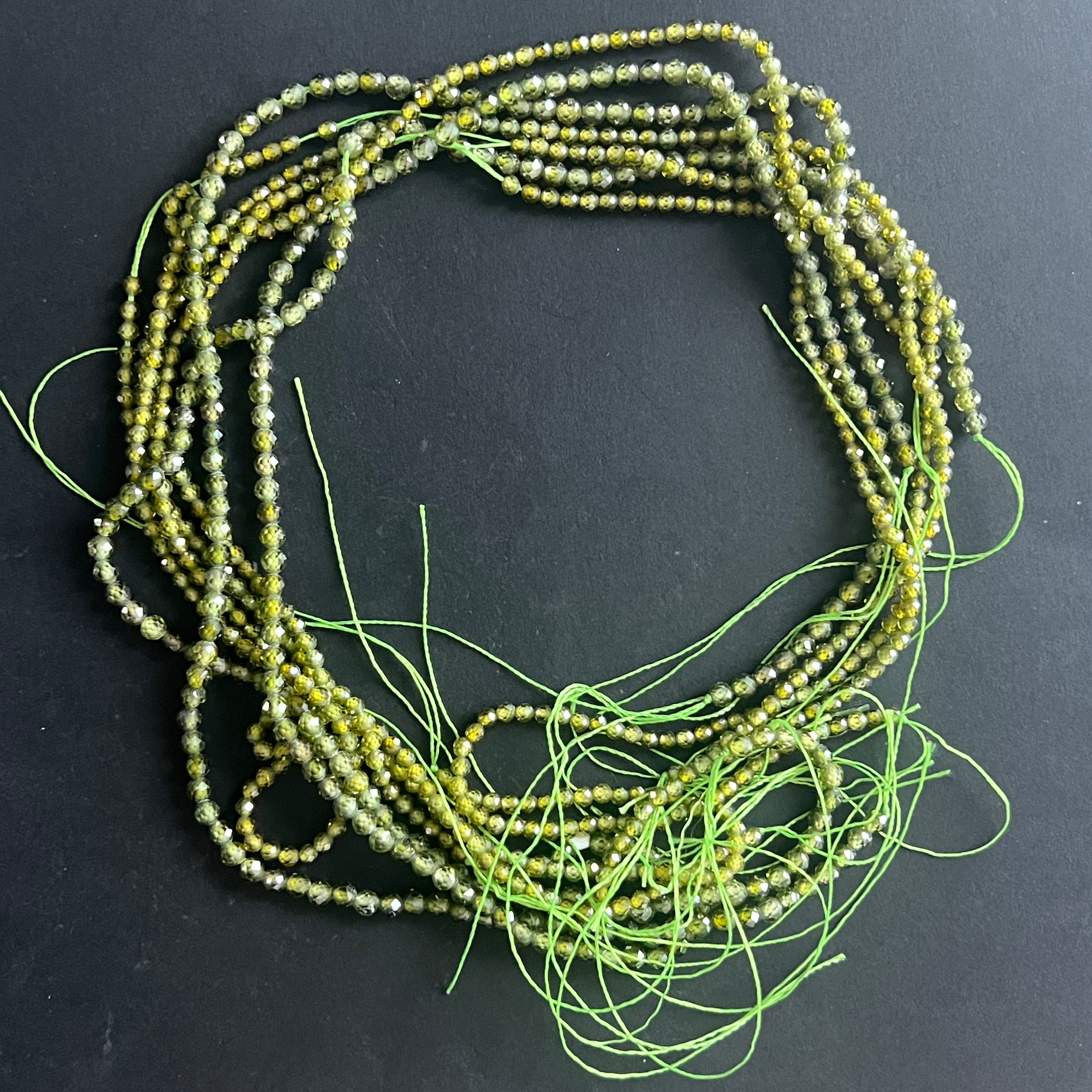 Naszyjnik z koralików z kamieni półszlachetnych, fasetowane kule ZIRKON ZIELONY