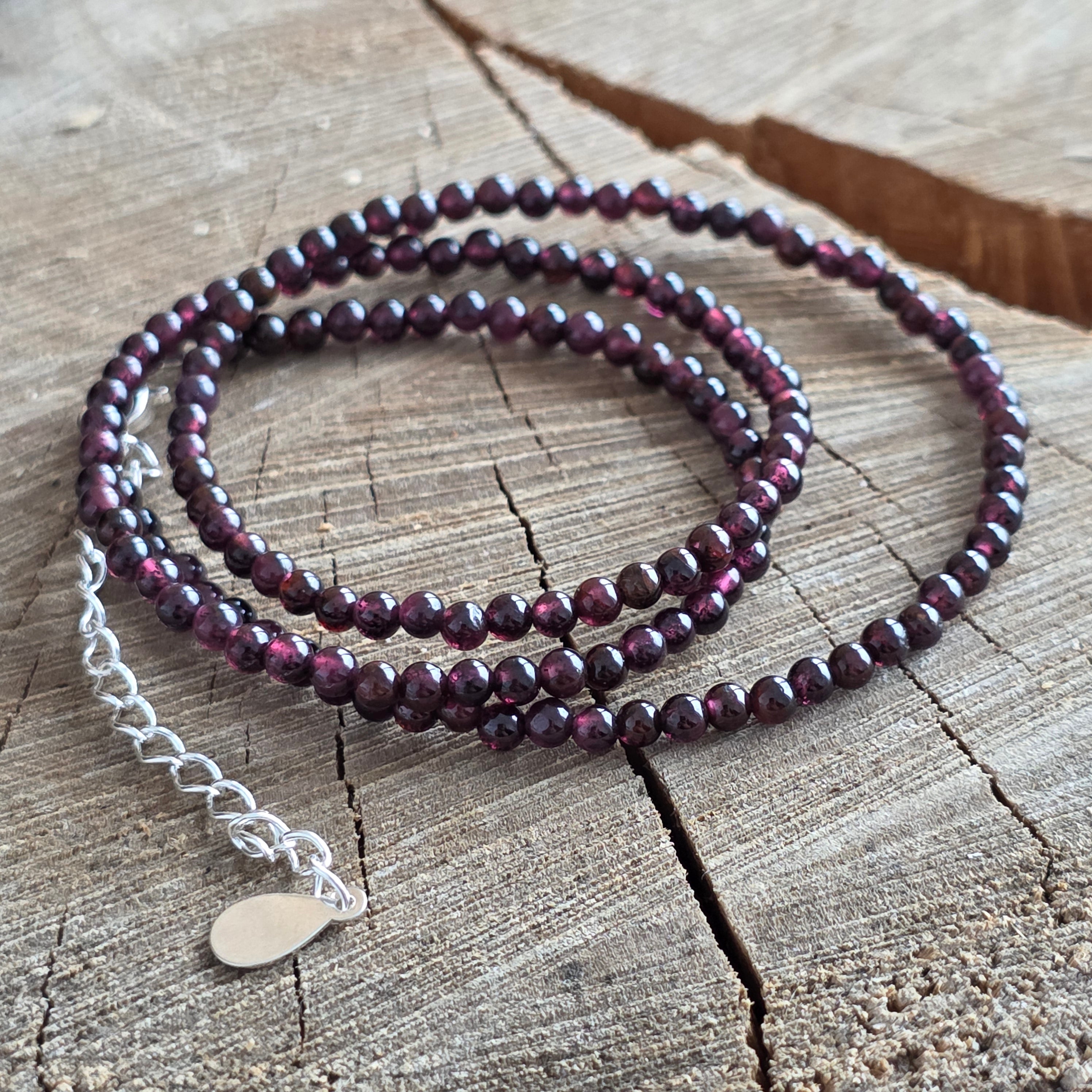 Materiały: polerowany naturalny granat, kulki kuliste 3 mm, srebro 925