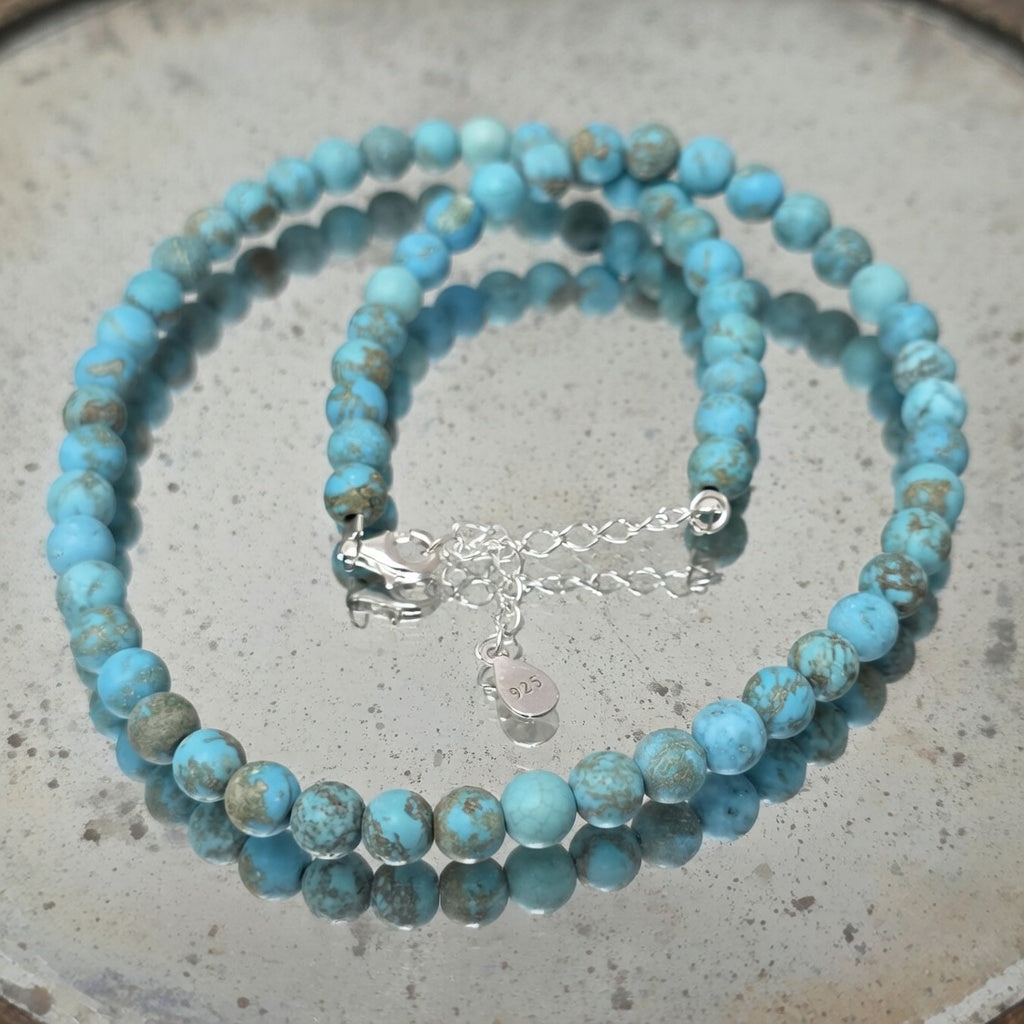 Ten naszyjnik z matowego niebieskiego howlitu o średnicy 6 mm jest biżuterią spokoju i równowagi – elementem, który harmonijnie uzupełnia każdy styl poprzez prostotę i wyrafinowanie. 💙