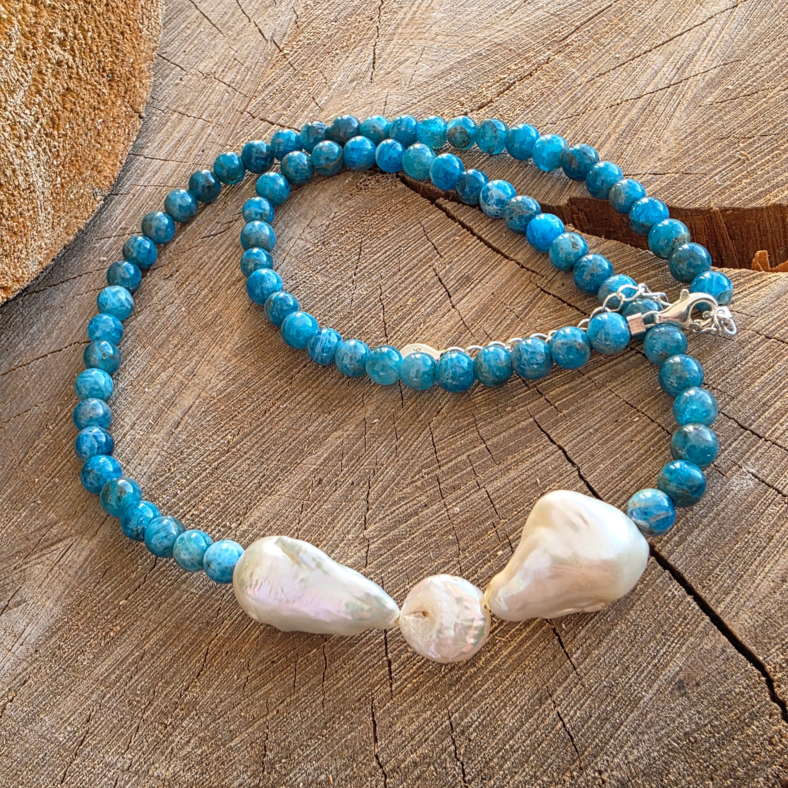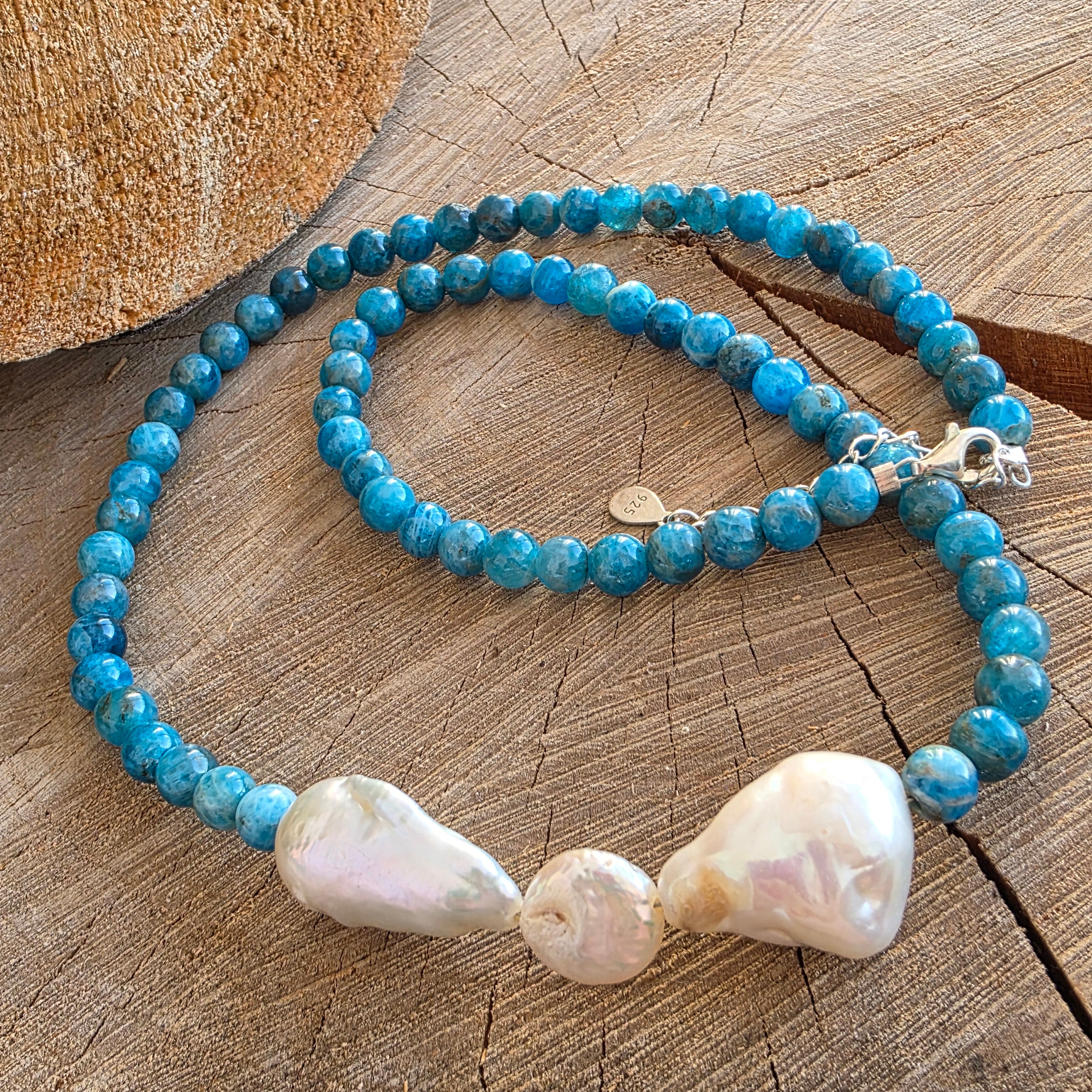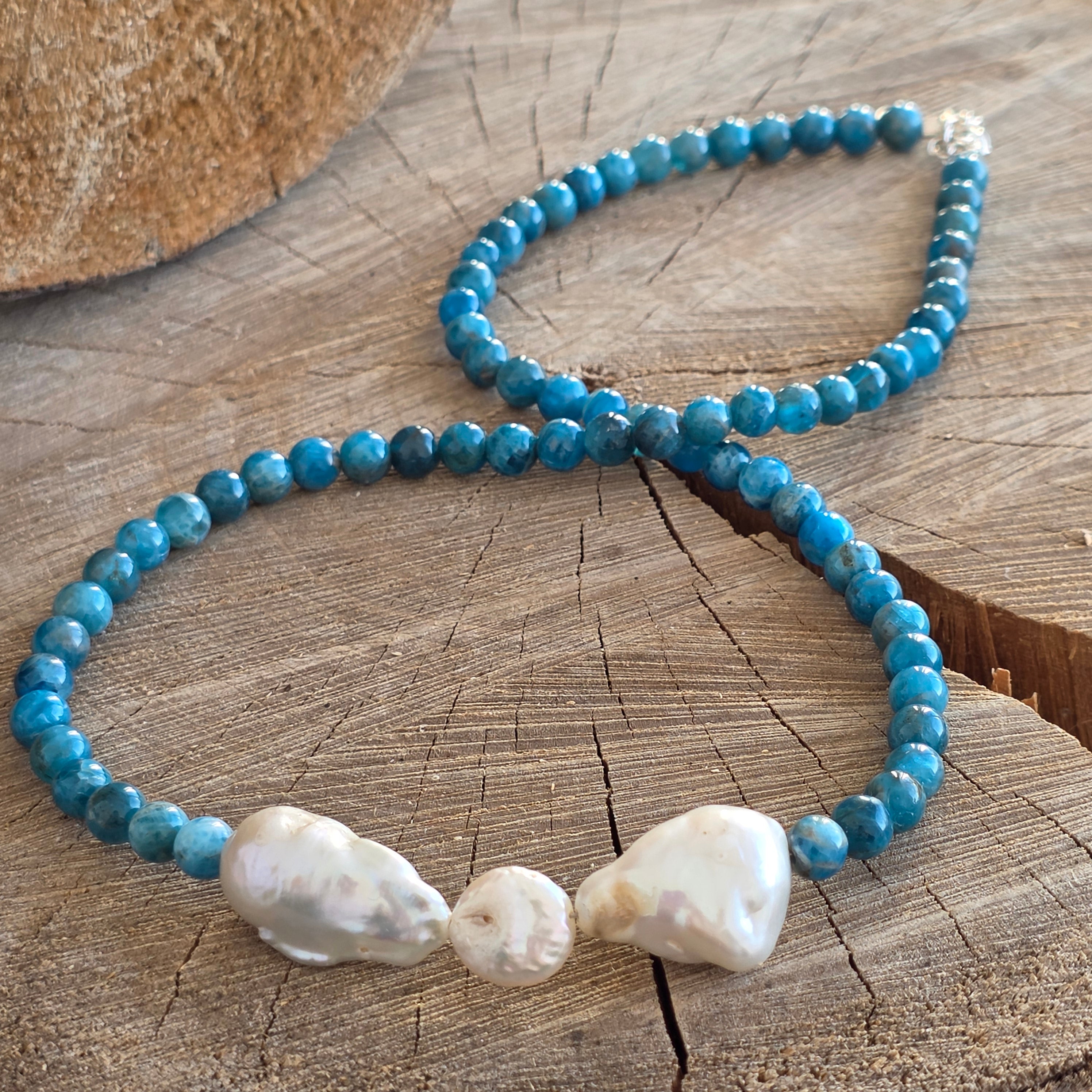 Opis - Naszyjnik z niebieskiej perły i apatytu Whisper#35