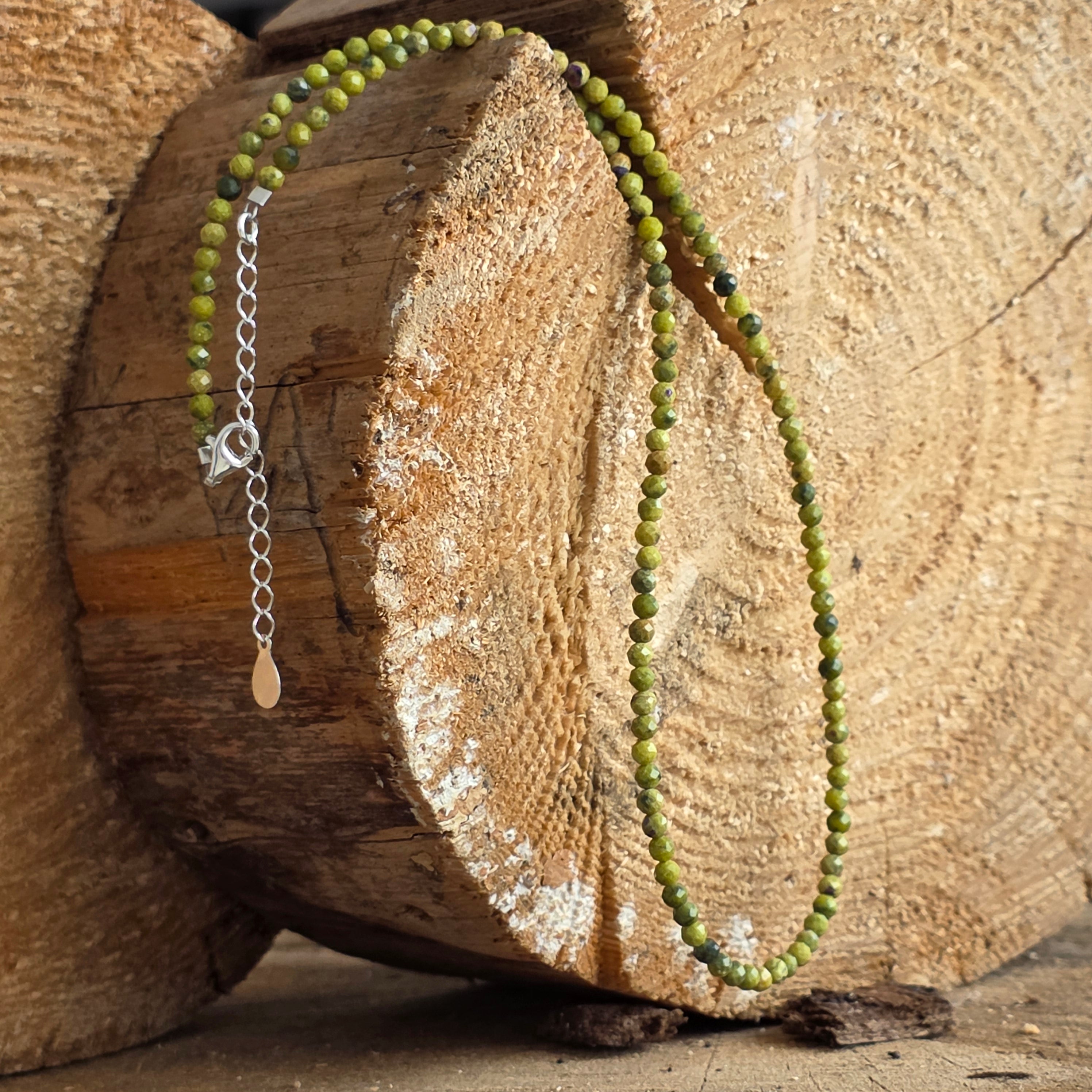 Materiały: naturalny, fasetowany serpentin 3 mm, srebro 925