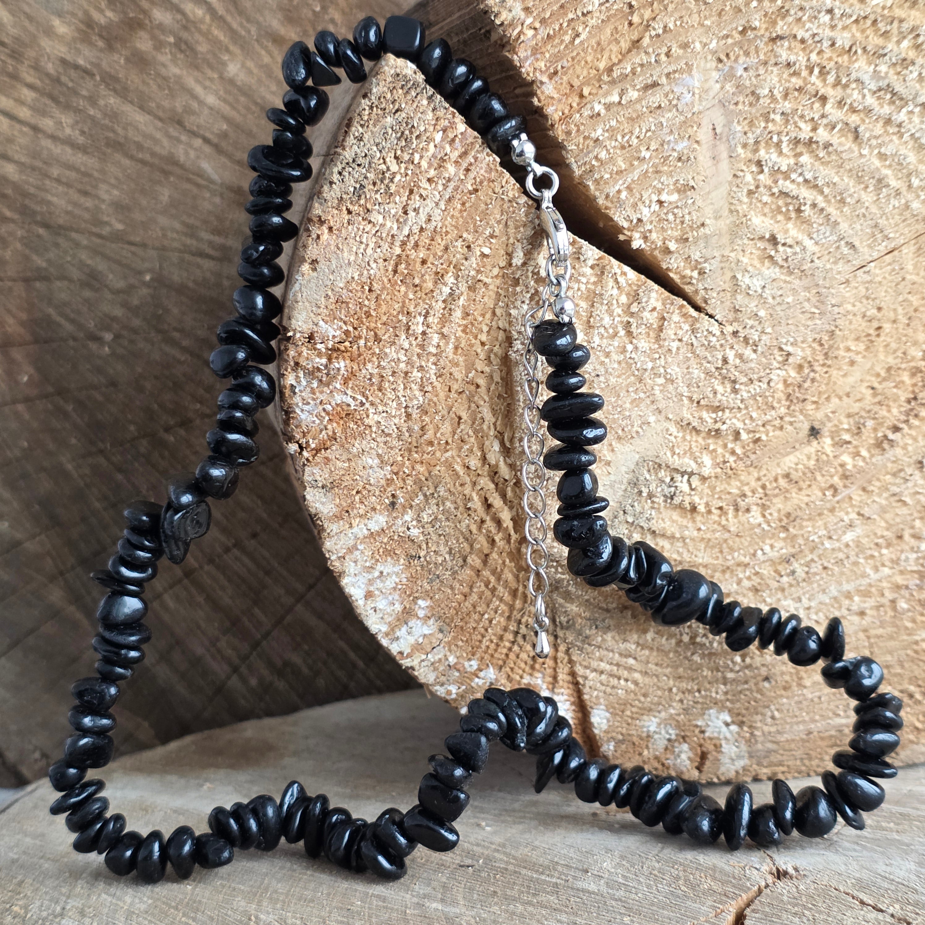 Czarny naszyjnik z wiórami turmalinu, rozmiar ok. 45 cm
