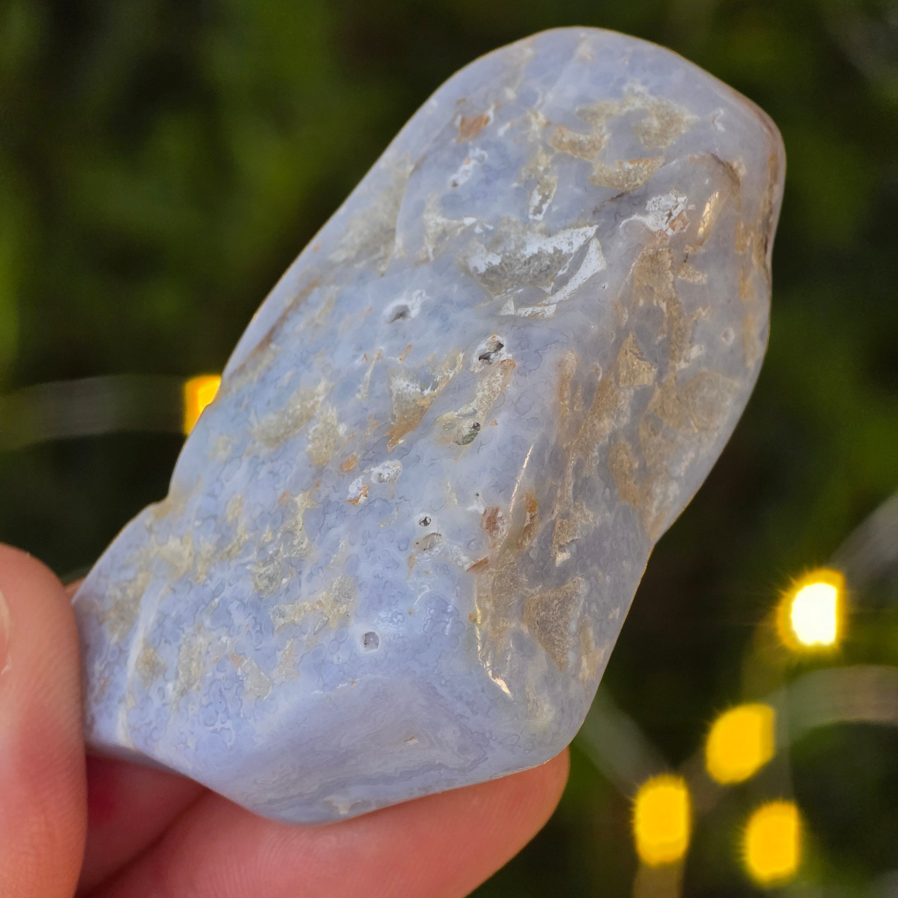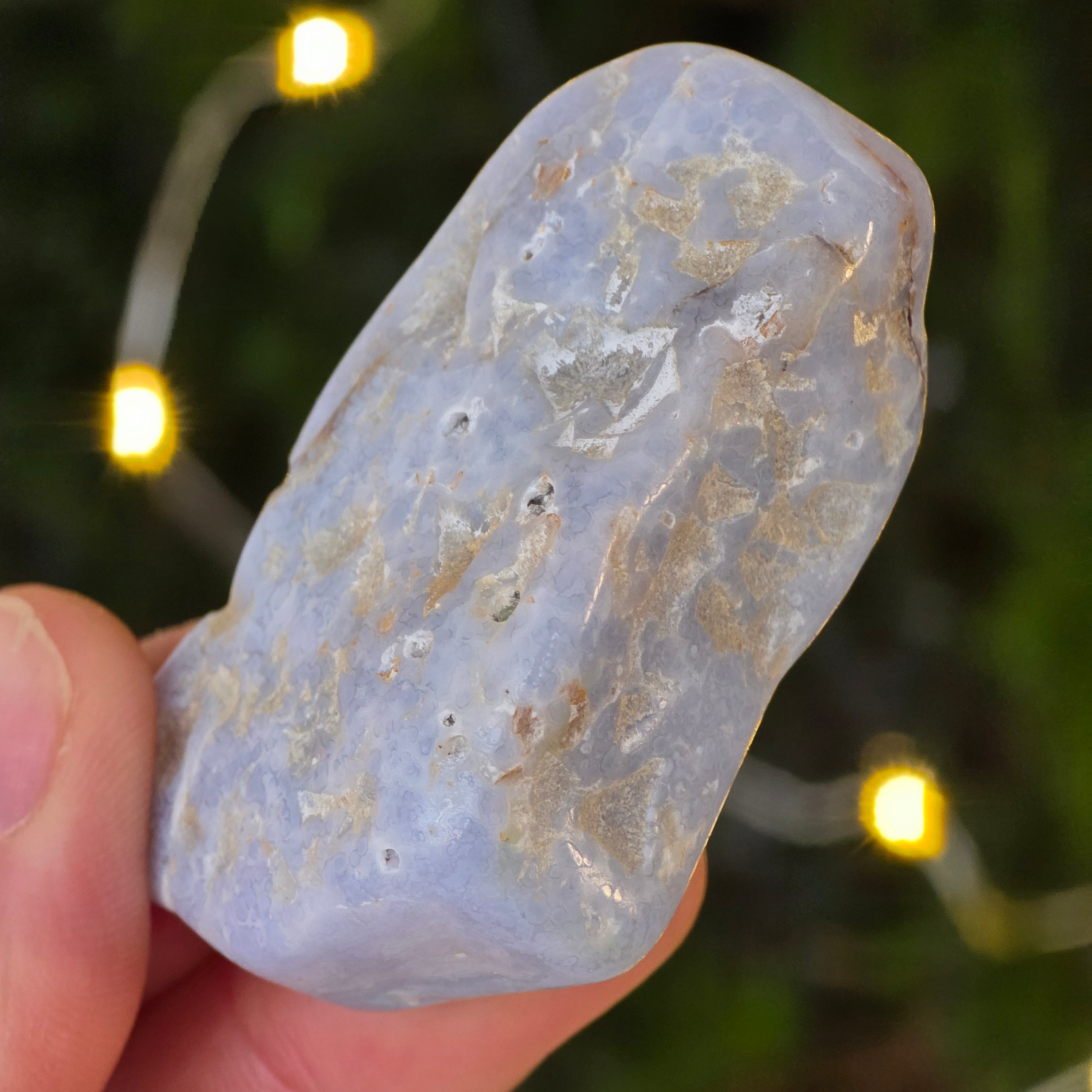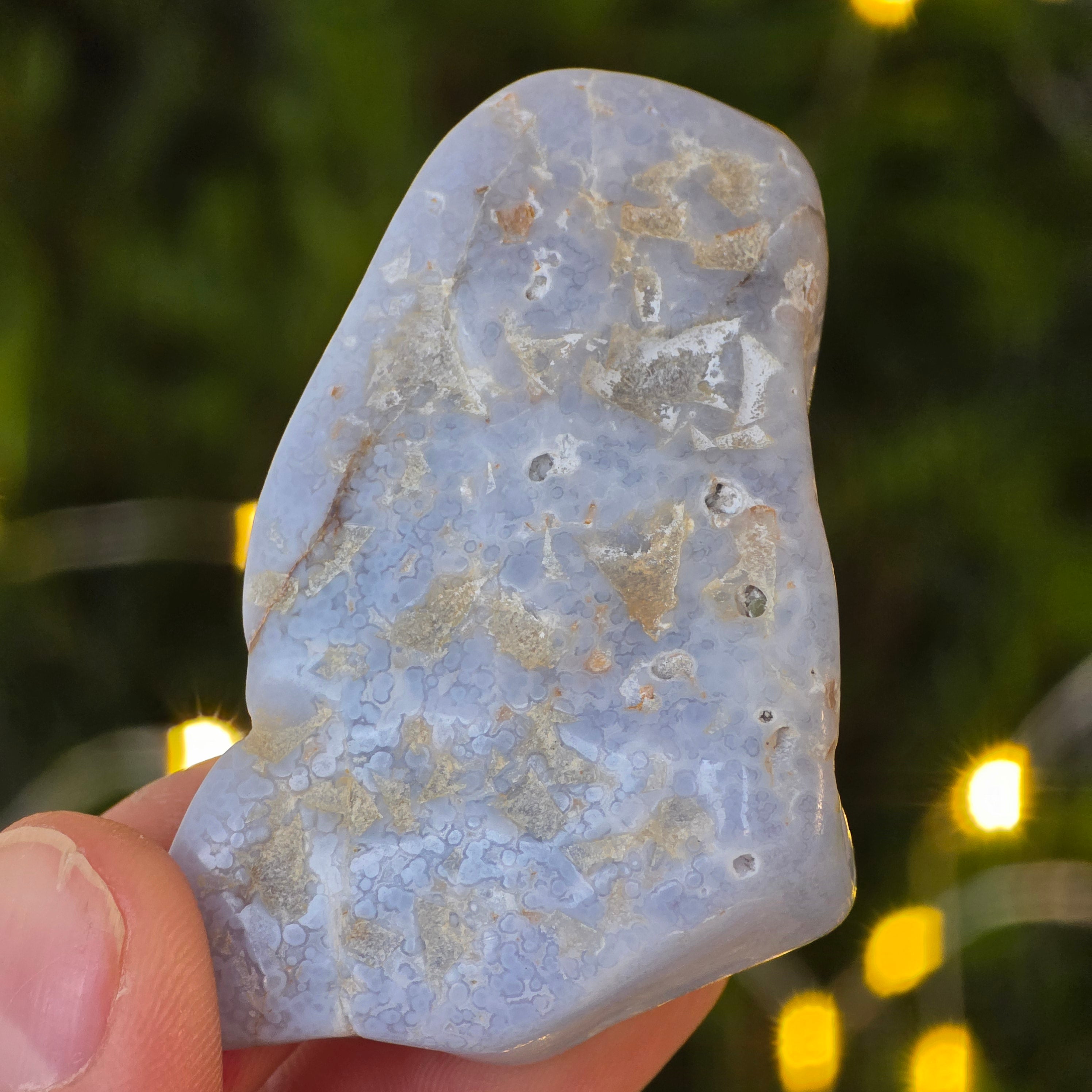 Niebieska chalcedon jest zazwyczaj kojarzona z komunikacją, wyrażaniem siebie i prawdy, może pomóc w stymulowaniu autentycznej komunikacji.