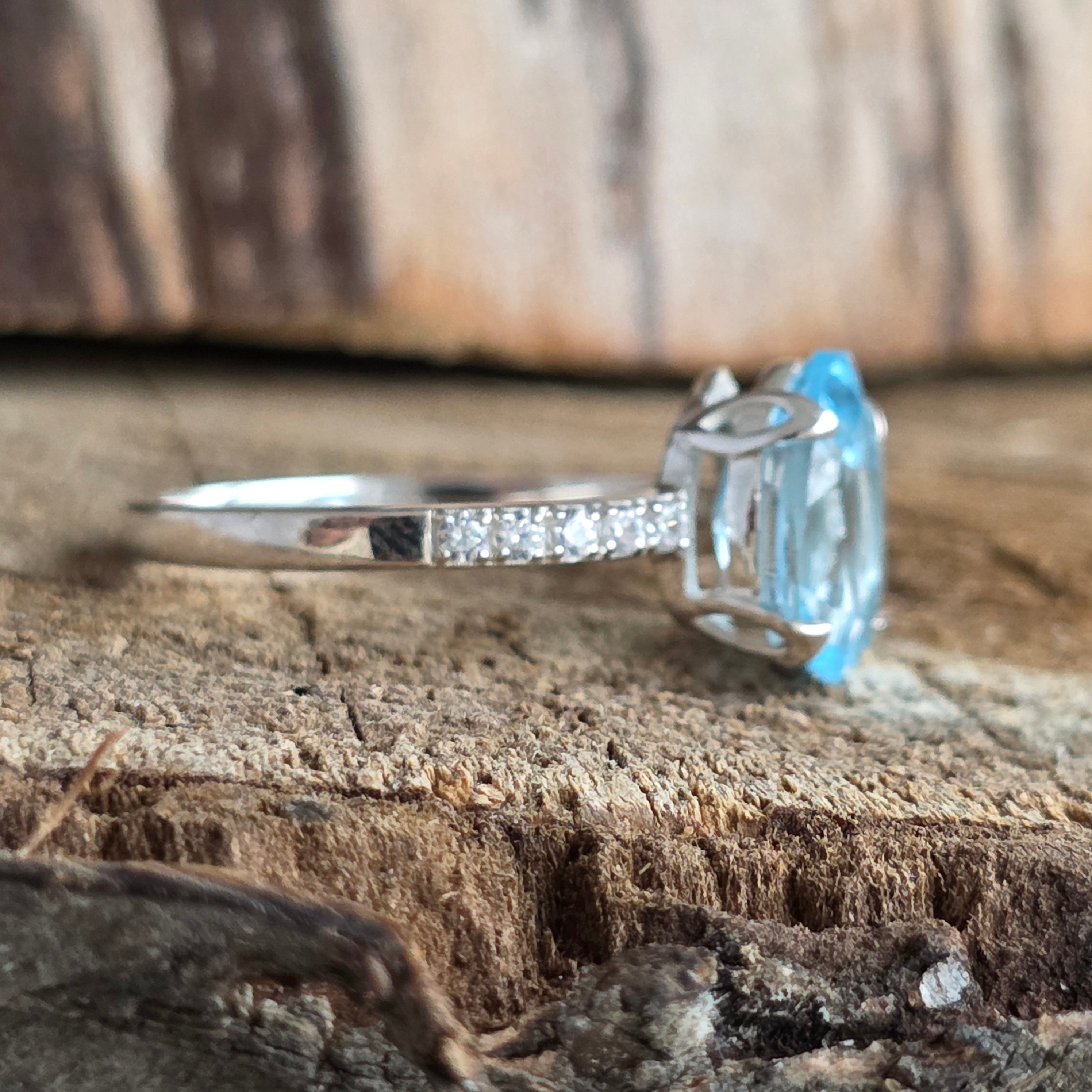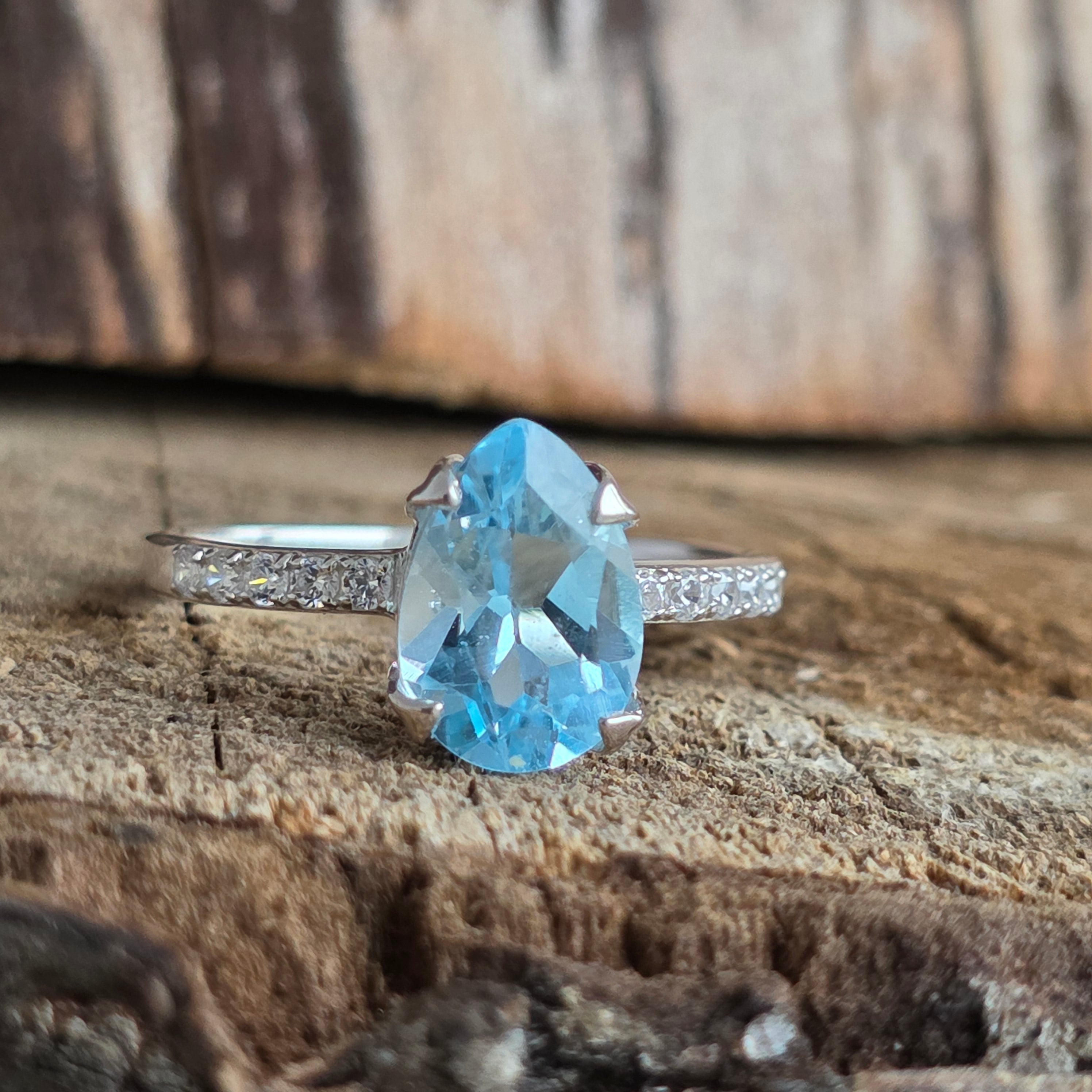 Niebieski srebrny topazowy pierścień gruszka 10 mm