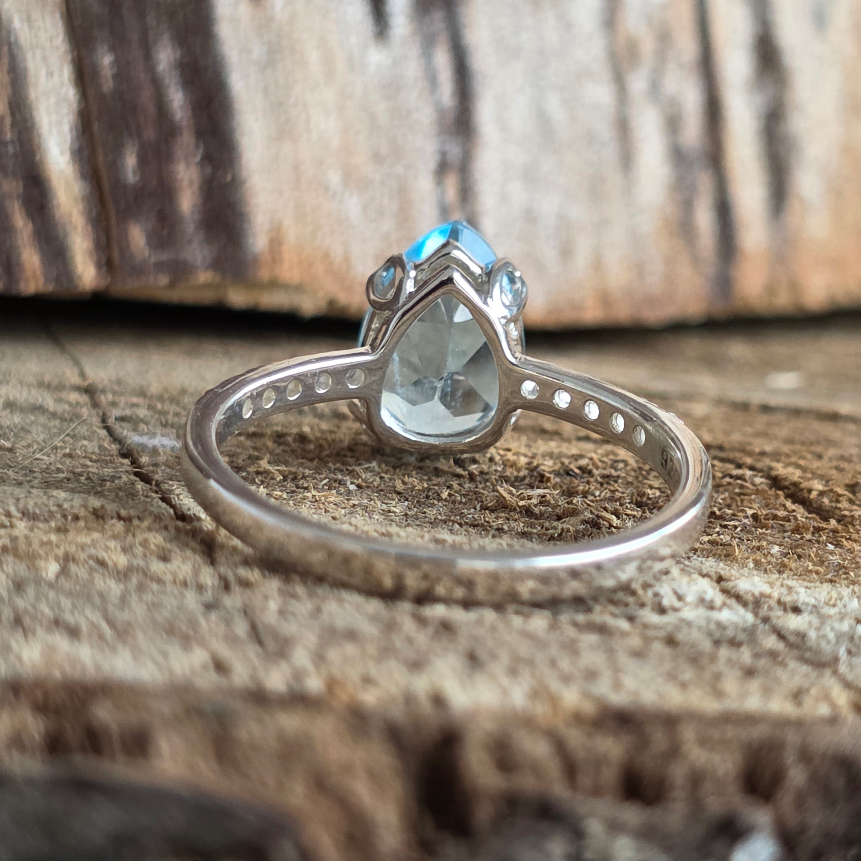 Opis - Niebieski srebrny topazowy pierścień gruszka 10 mm
