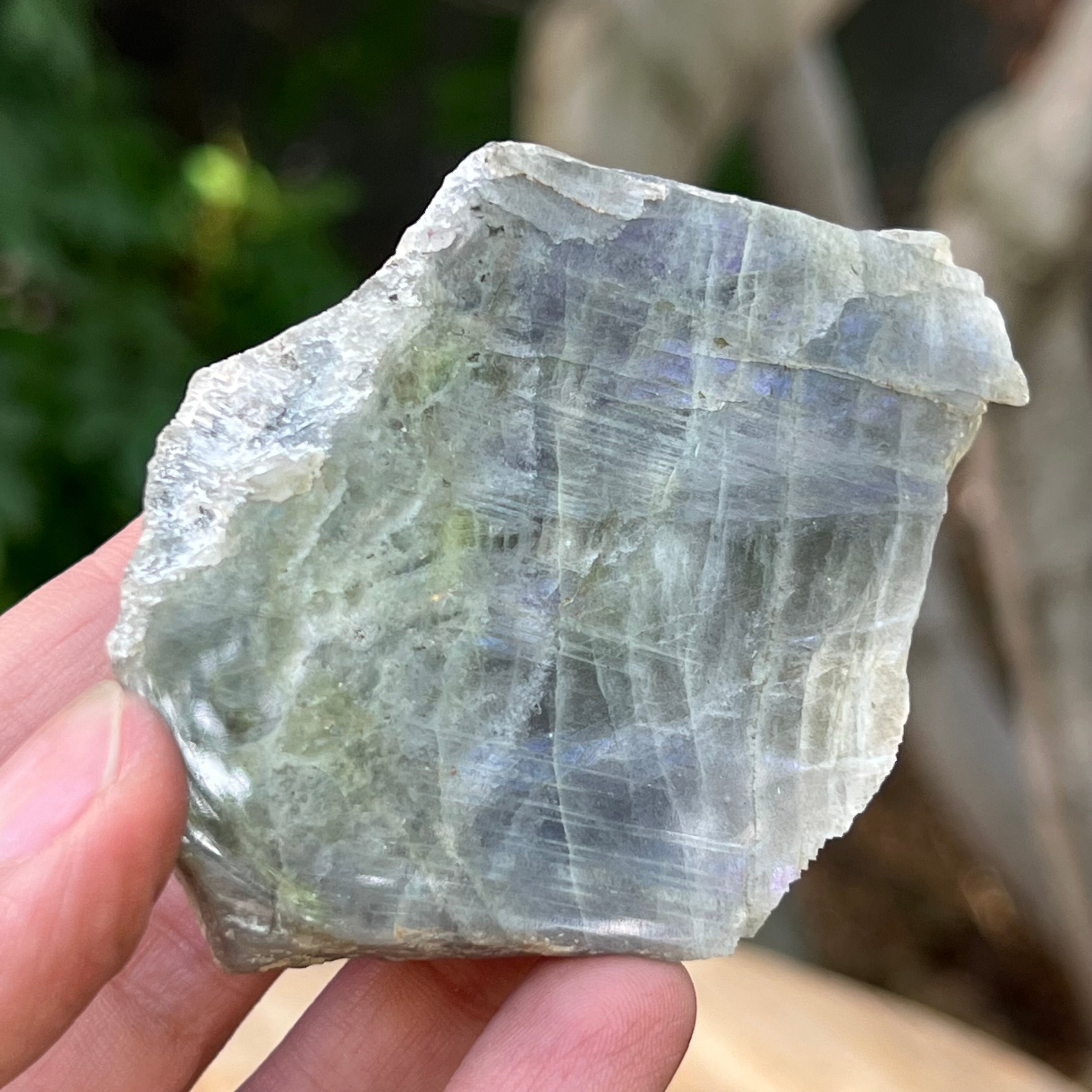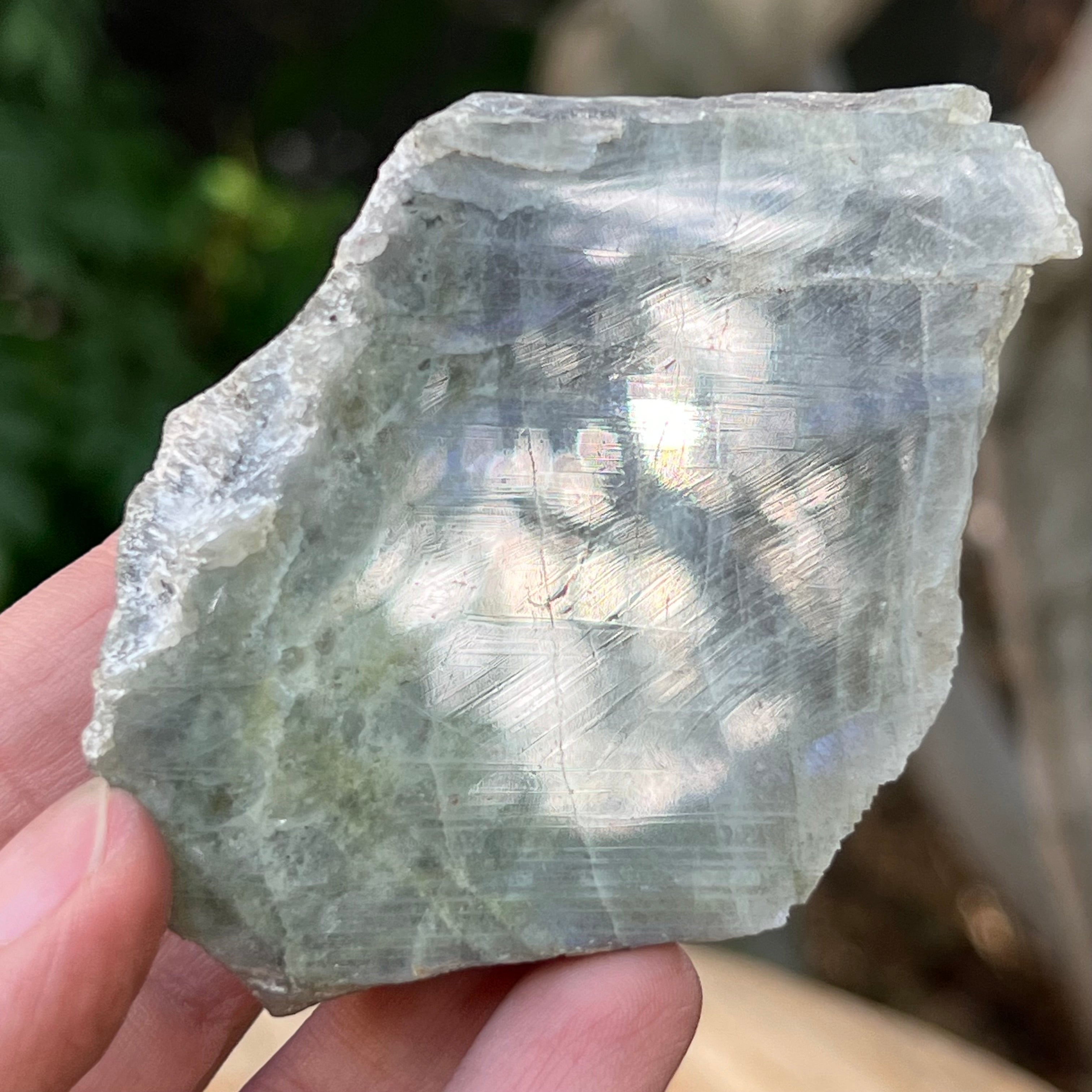 Nieobrobiony kamień labradorytowy polerowany z boku z Madagaskaru model 4, rozmiar 8,5*6*2,5cm