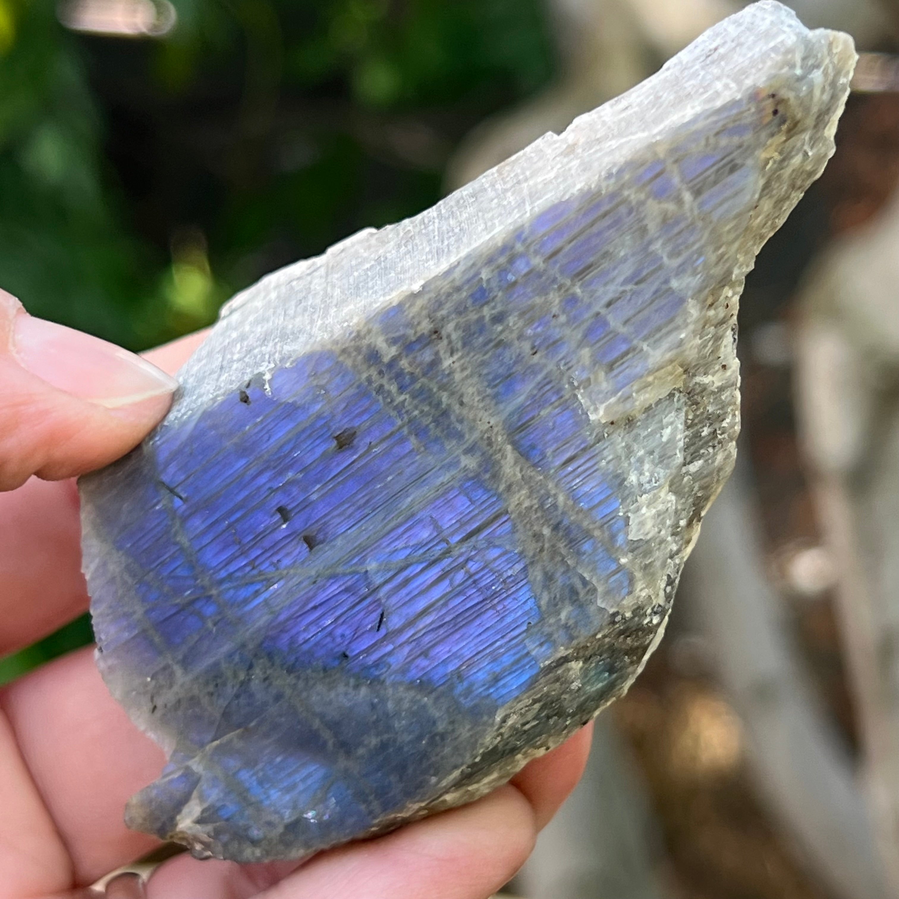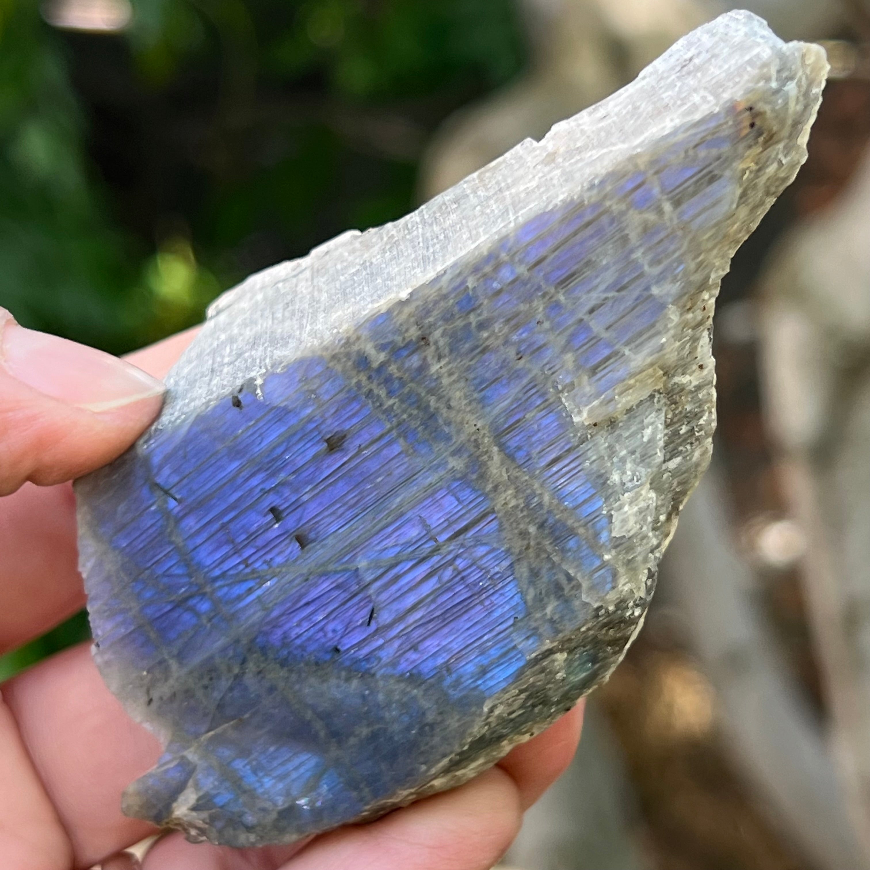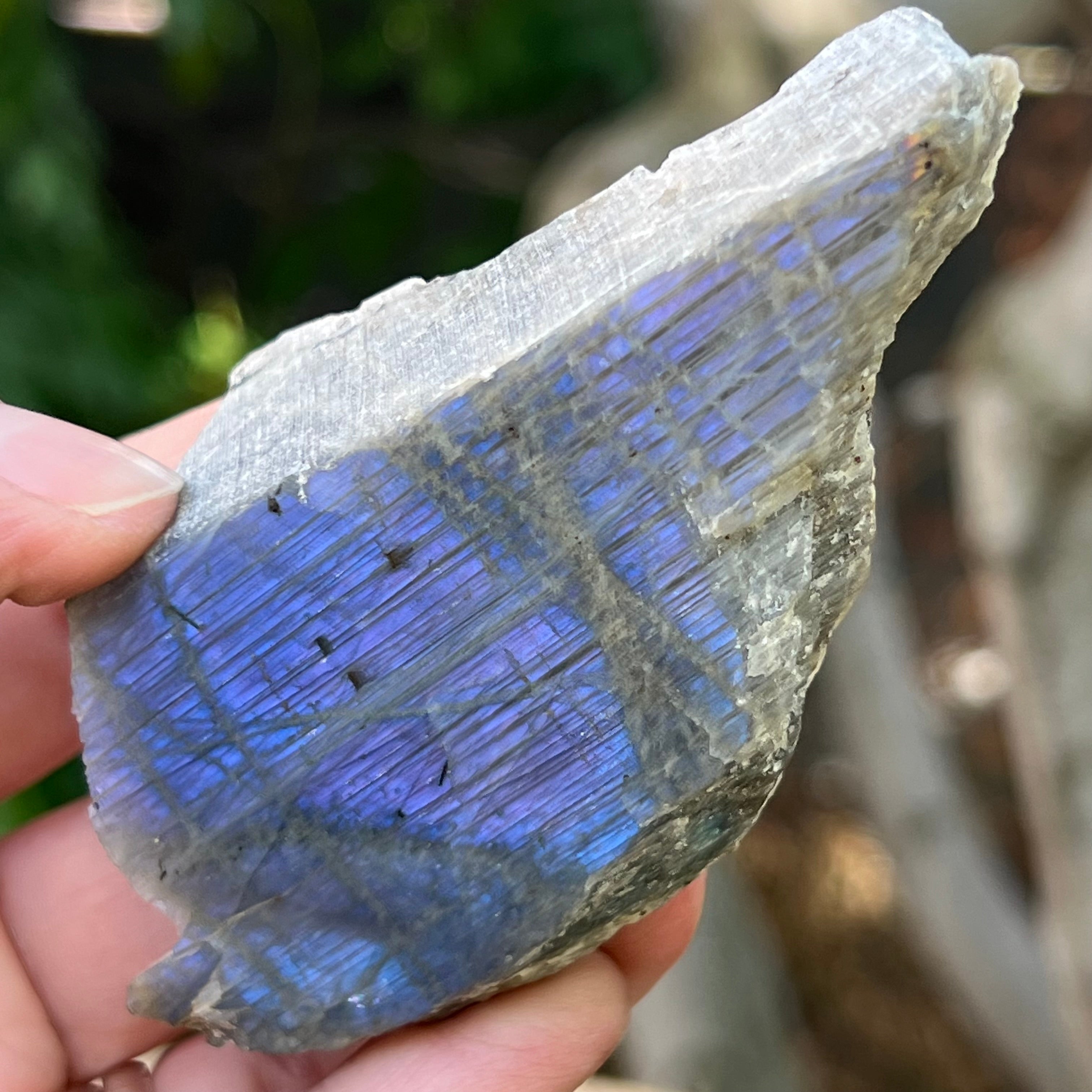 Nieobrobiony kamień labradorytowy polerowany na stronie z Madagaskaru wzór 6