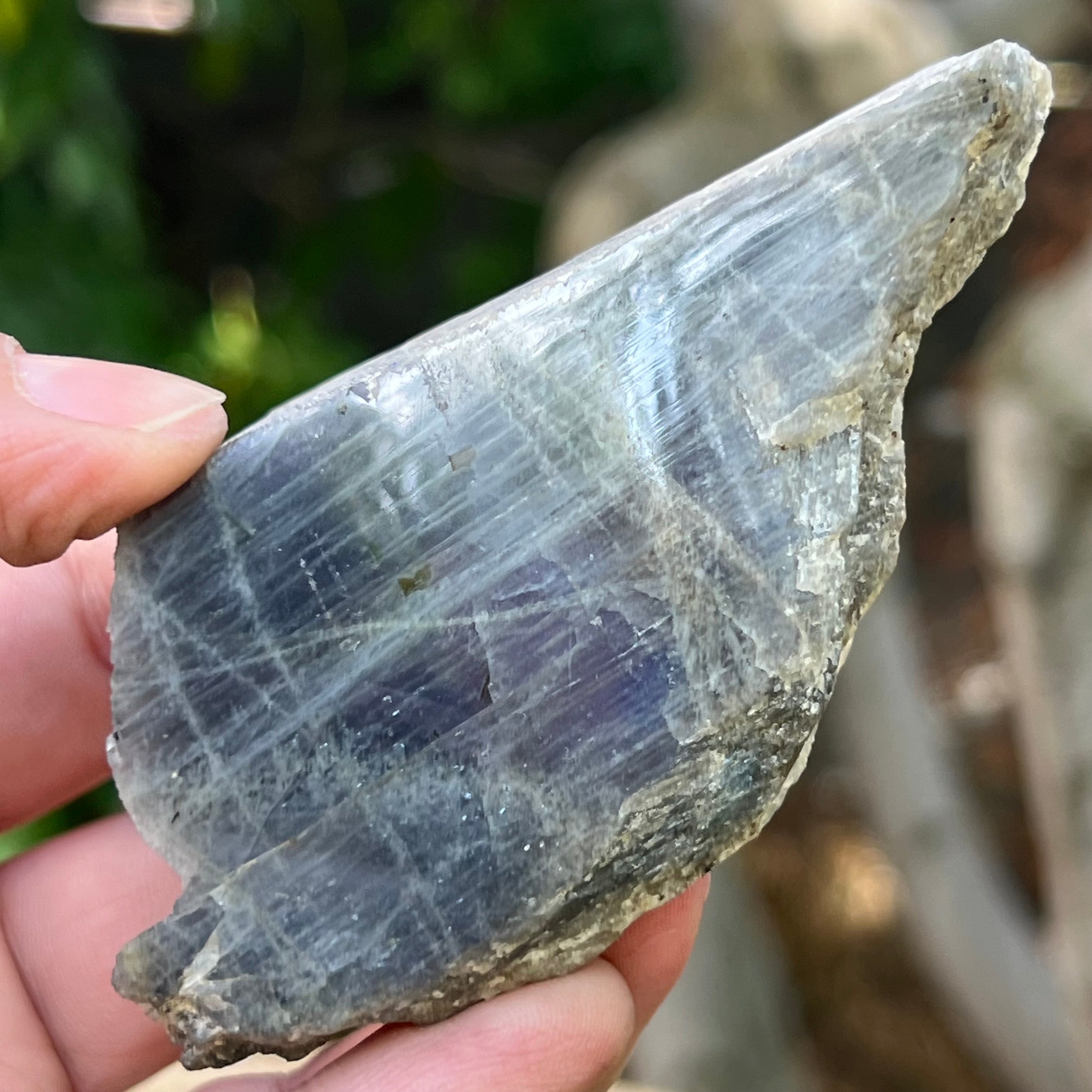 Szorstki kamień labradorytowy polerowany z jednej strony z Madagaskaru model 6, rozmiar 8,5 * 4,5 * 2,5 cm