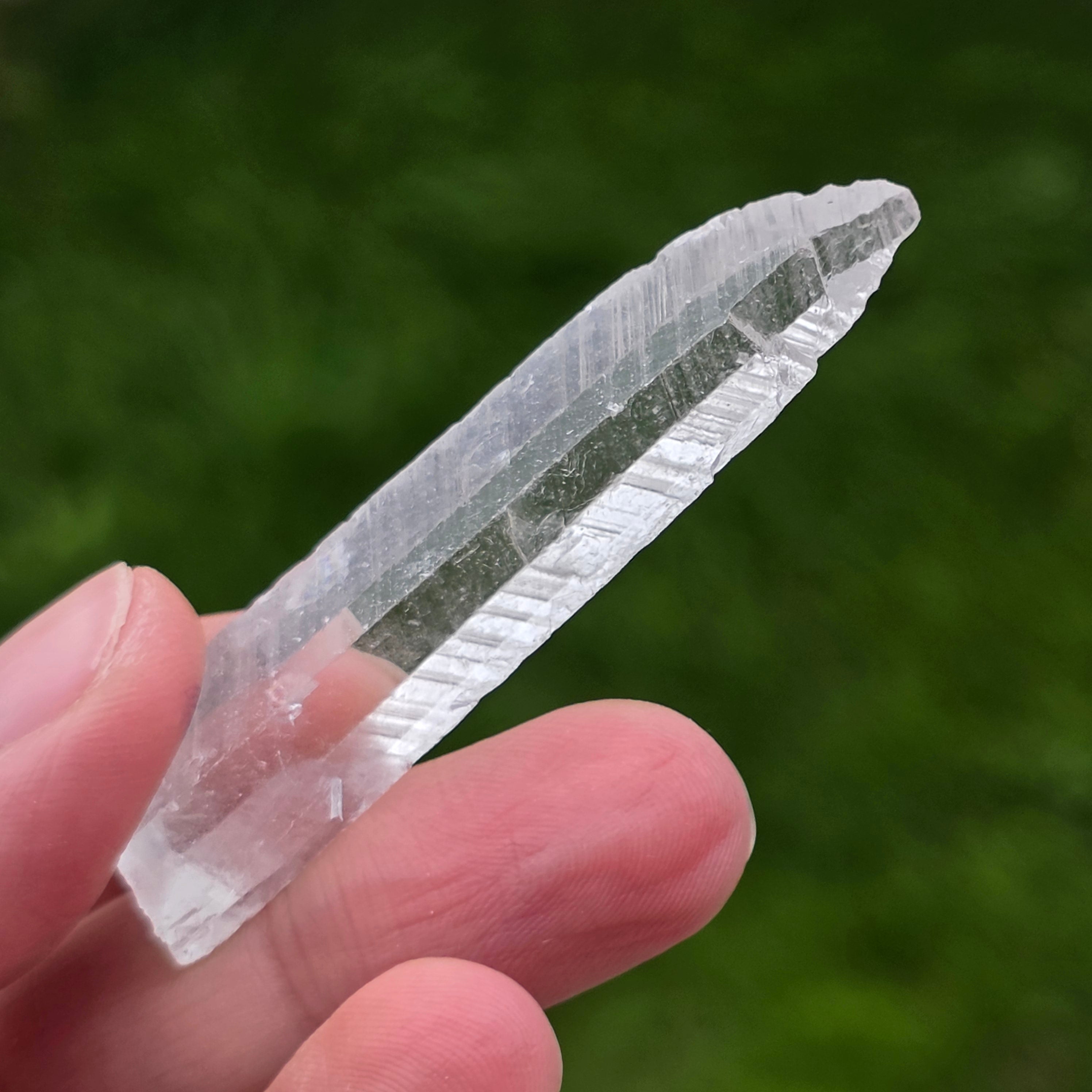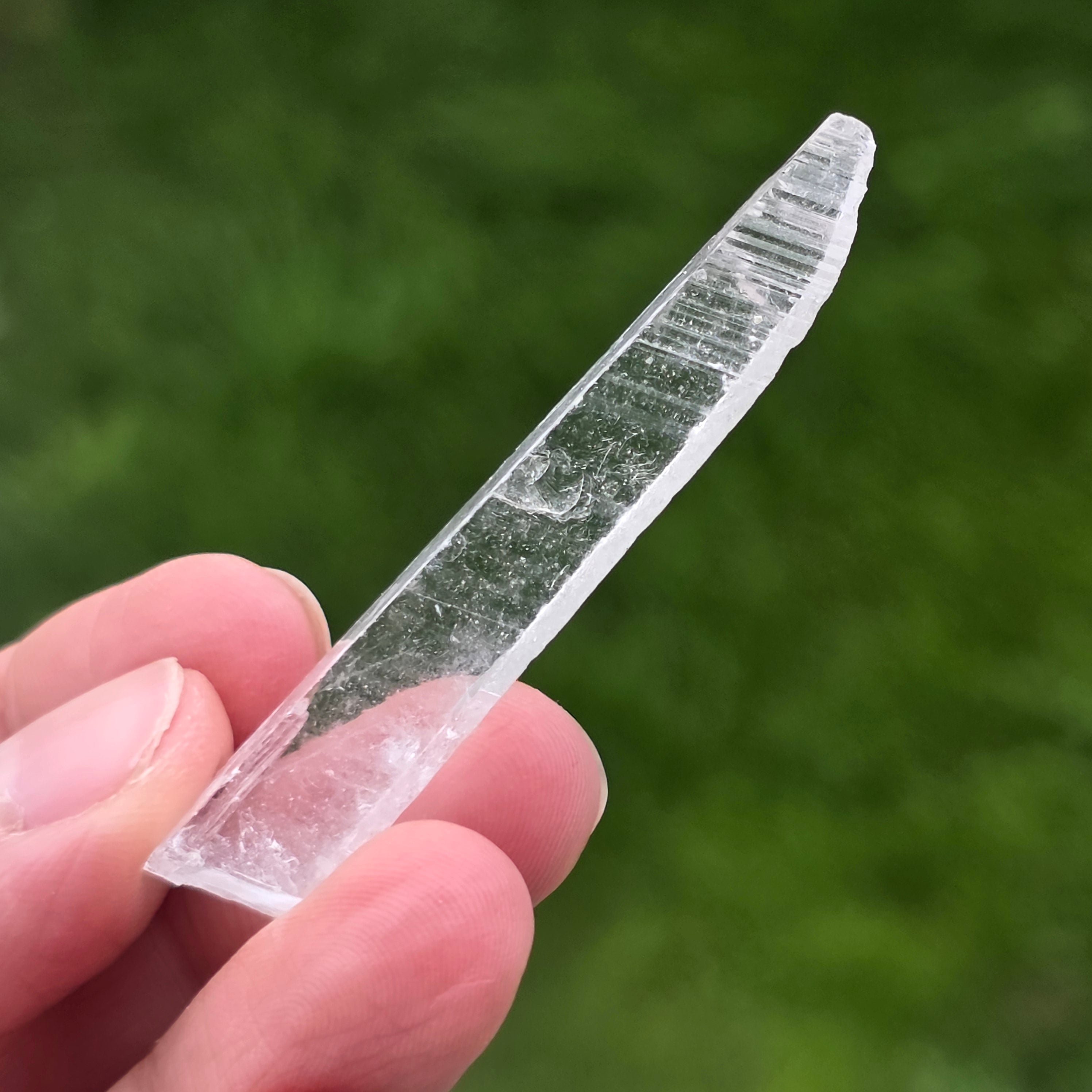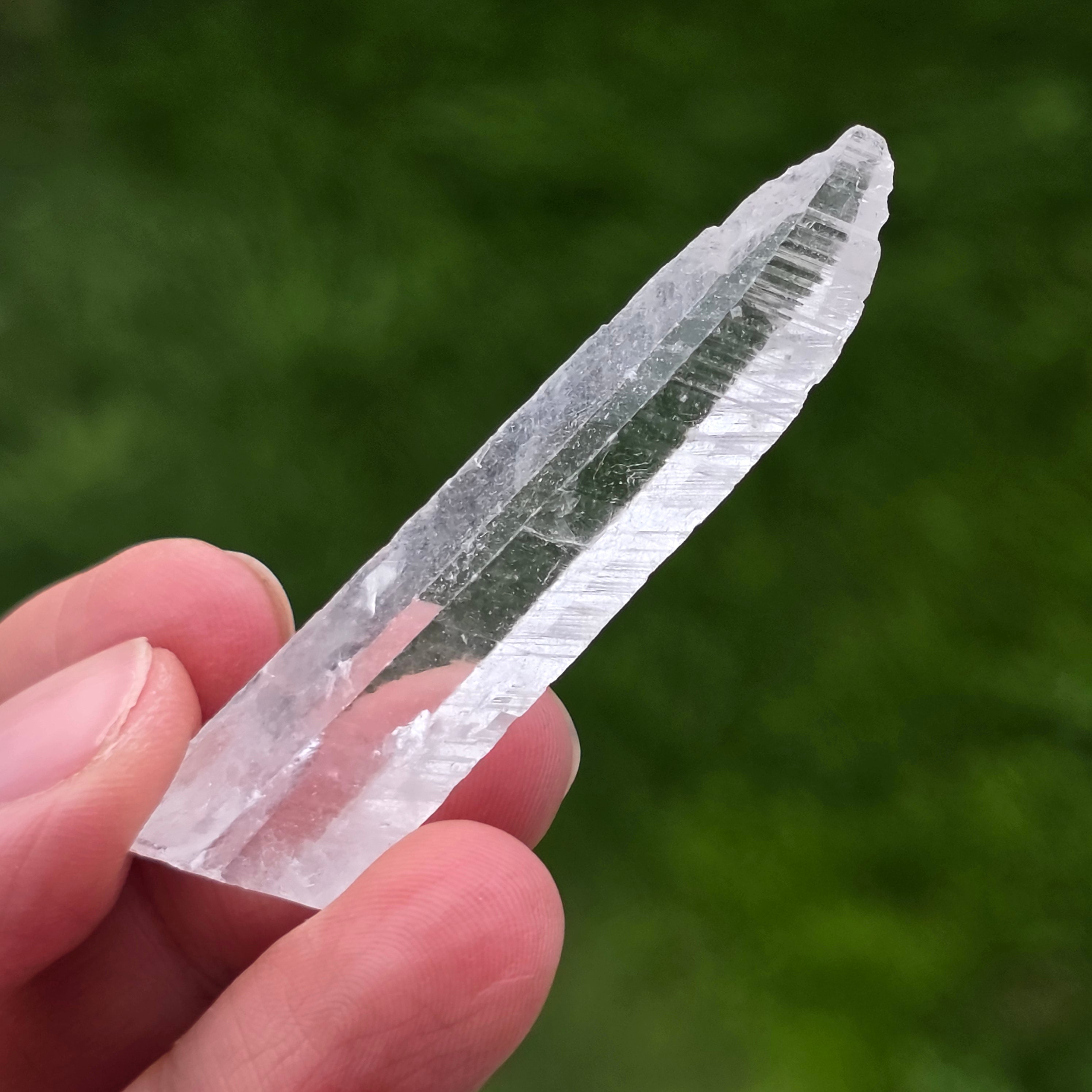 Cristalele se prezintă sub formă prismatică, subțire, cu terminații clare, având o transparență ridicată și un luciu discret, aproape sticlos. Forma lor alungită și modul de creștere conferă fiecărui exemplar un caracter aerat, fragil vizual, dar bine definit mineralogic. Aspectul curat și uniform face ca aceste piese să fie extrem de apreciate în vitrinele de colecție.