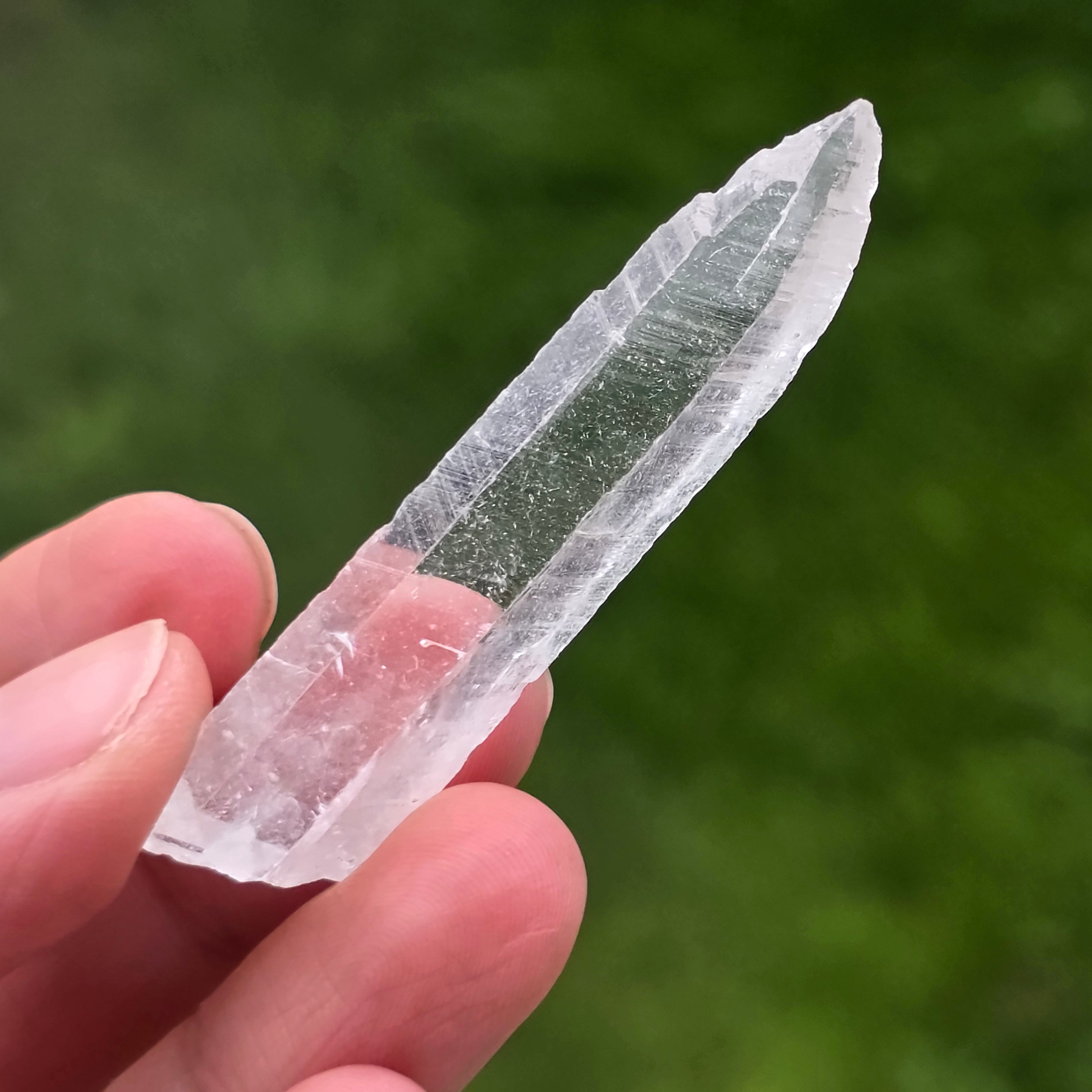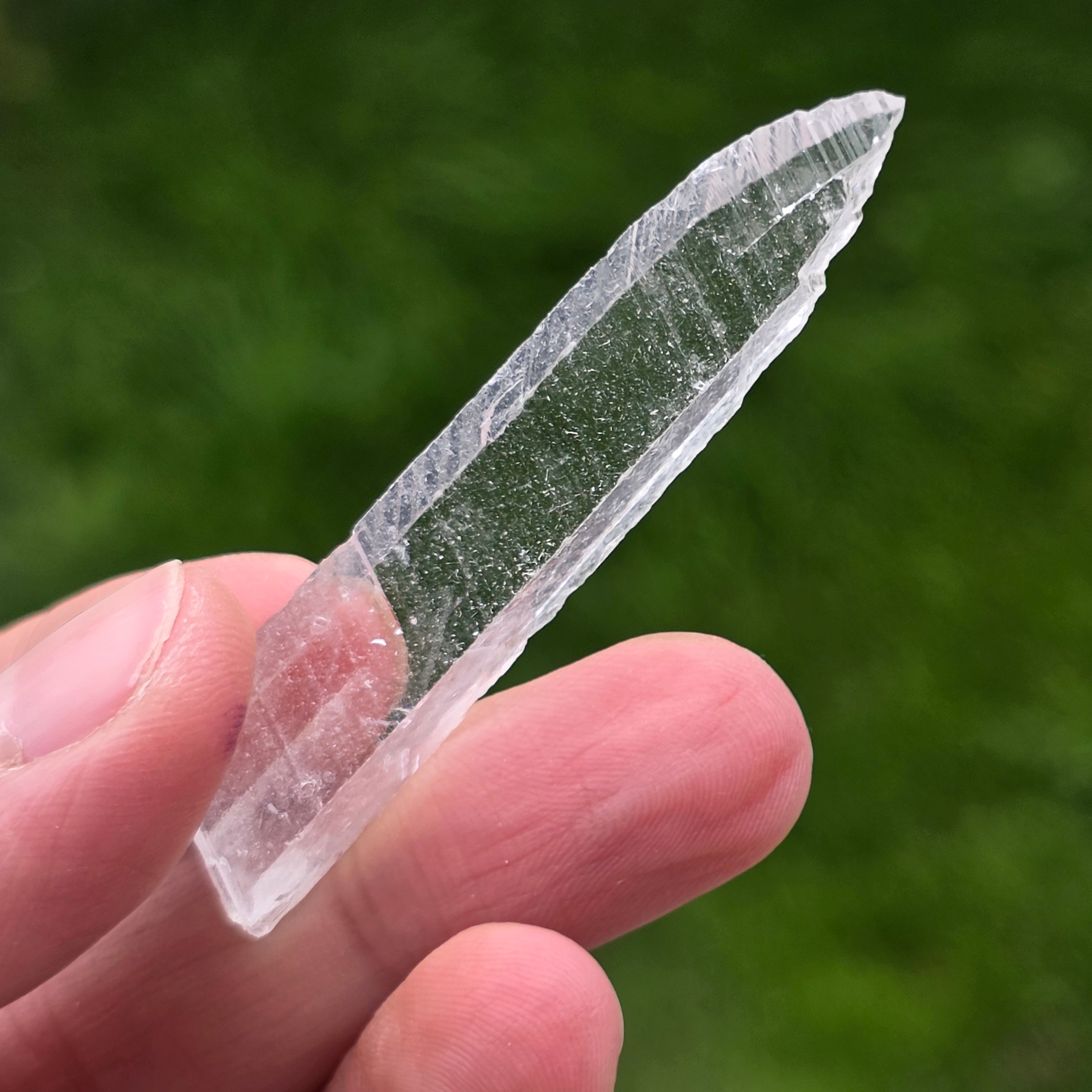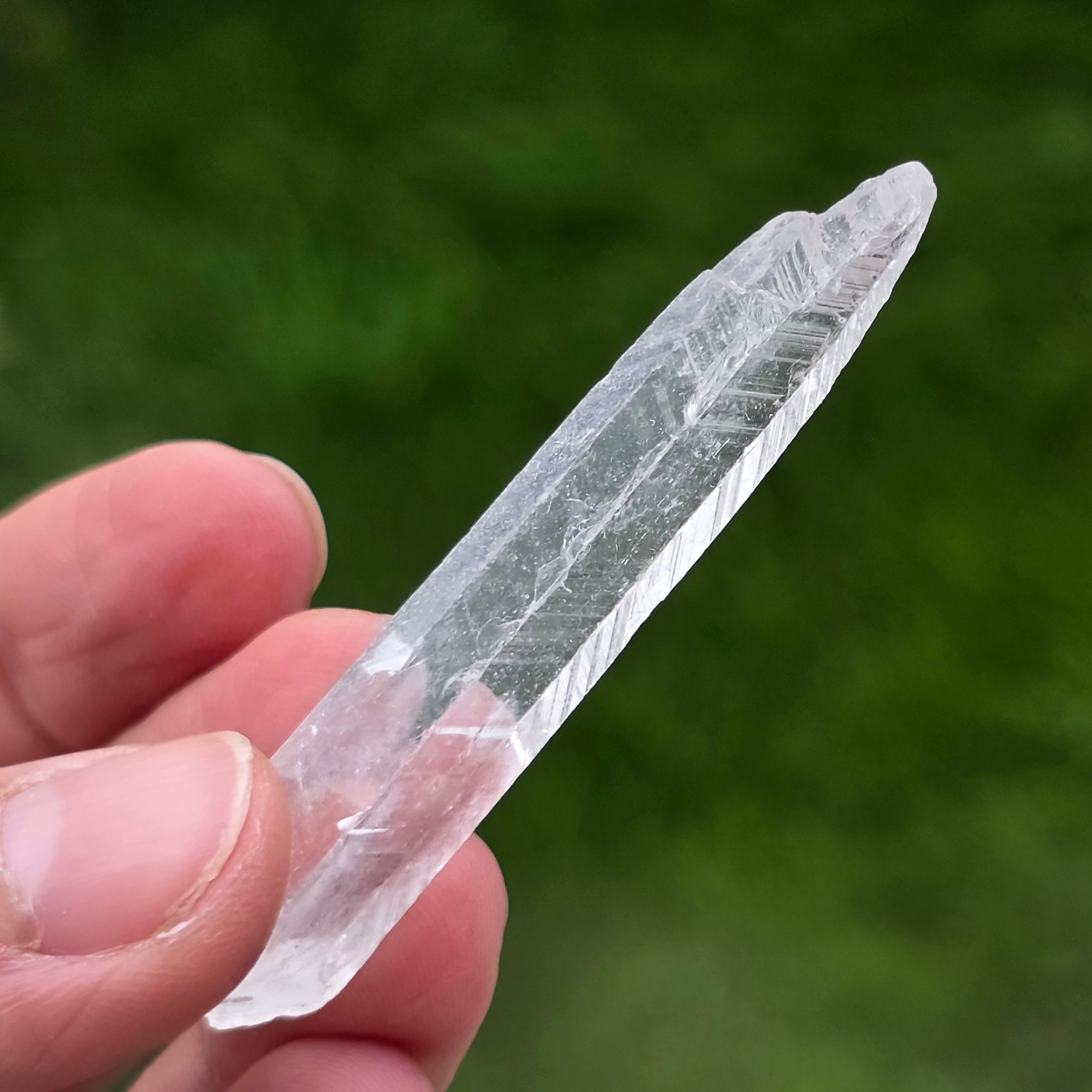 Cristalele se prezintă sub formă prismatică, subțire, cu terminații clare, având o transparență ridicată și un luciu discret, aproape sticlos. Forma lor alungită și modul de creștere conferă fiecărui exemplar un caracter aerat, fragil vizual, dar bine definit mineralogic. Aspectul curat și uniform face ca aceste piese să fie extrem de apreciate în vitrinele de colecție.