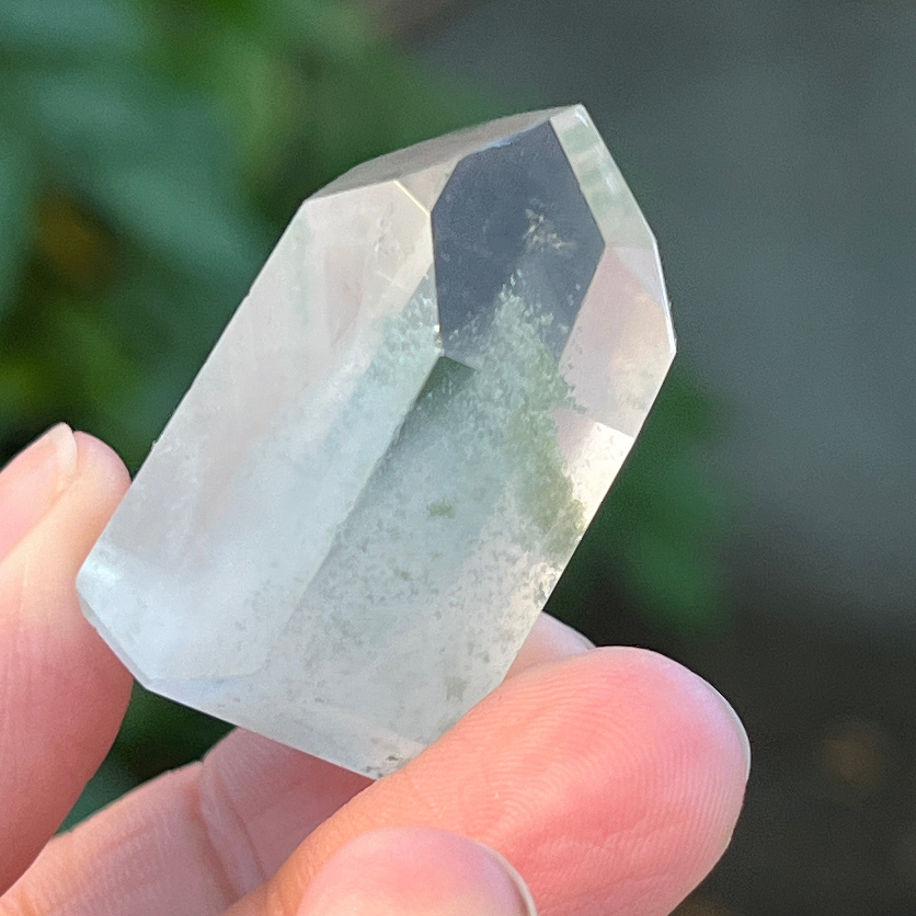 Kwarc Obelisc z inkluzjami chlorynowymi M2, rozmiar: 3.6 * 2,4 * 2,5 cm