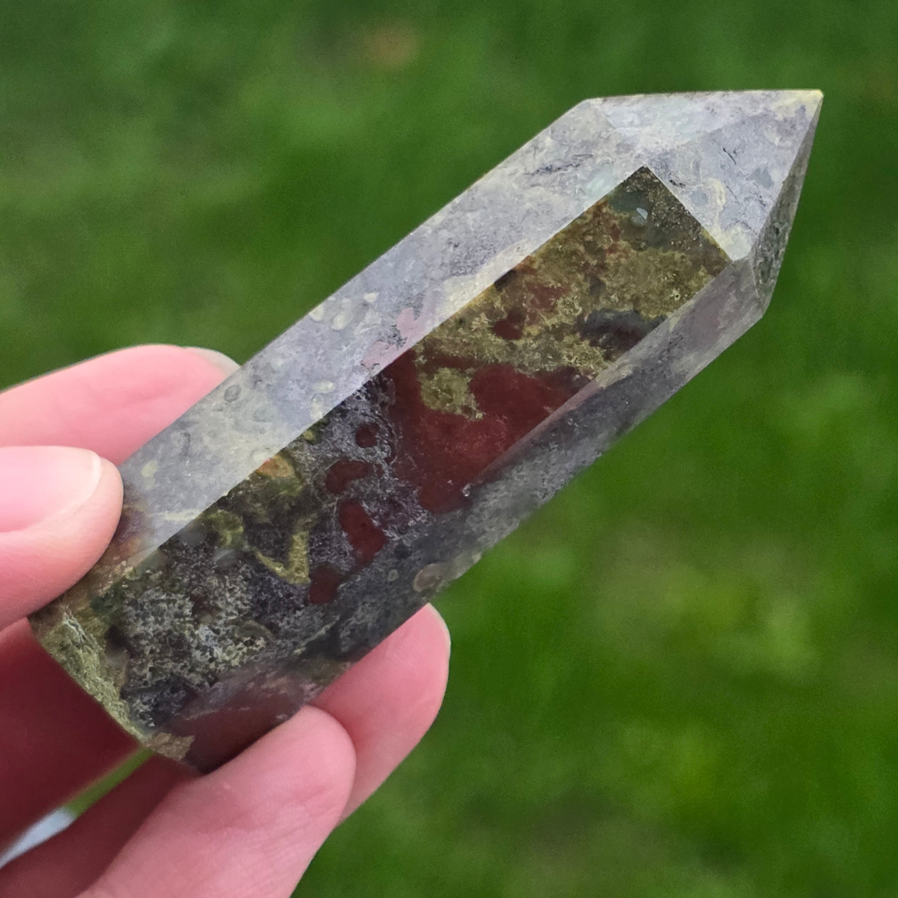Obelisc mini piatra sangele dragonului (epidot&piedmontit) | Model 11