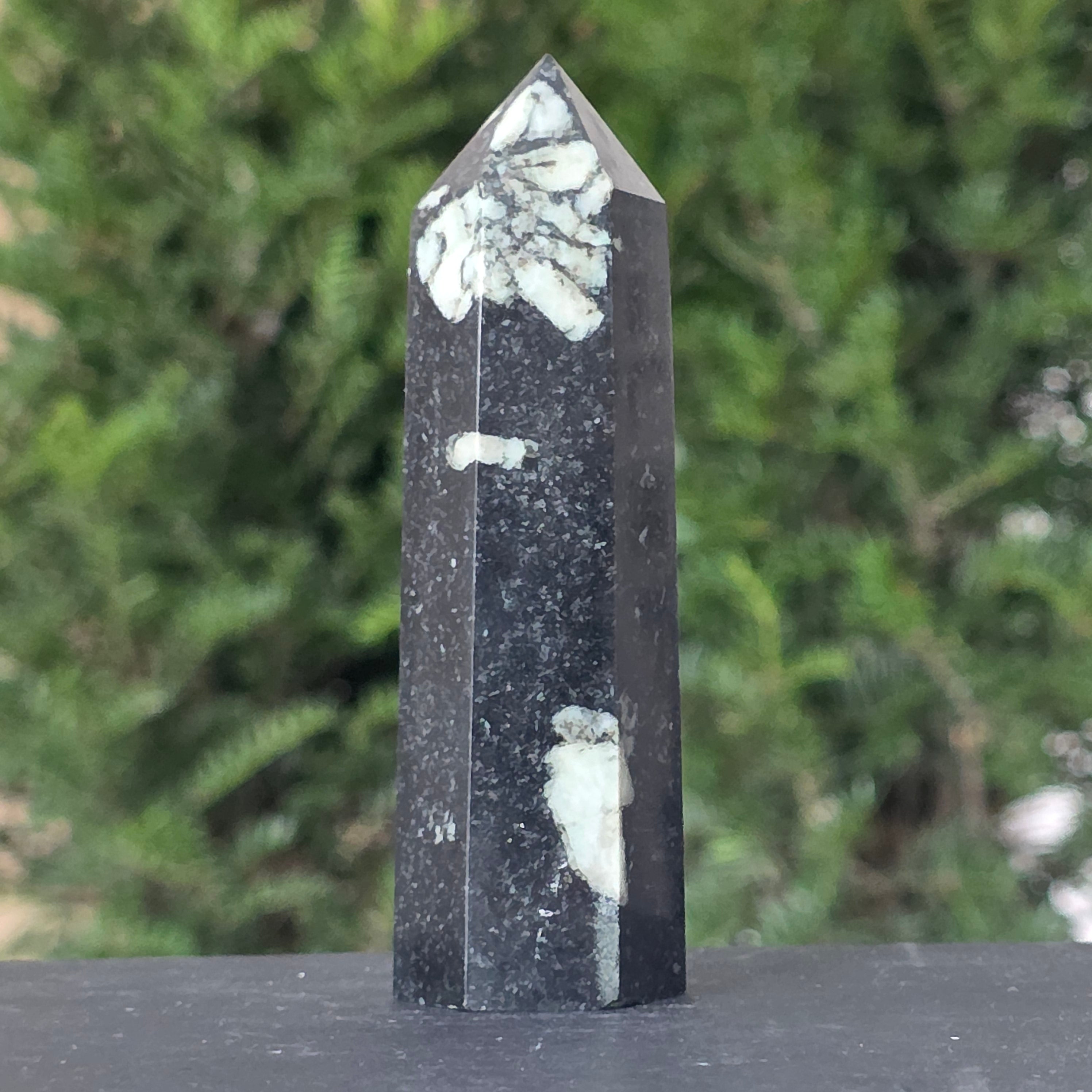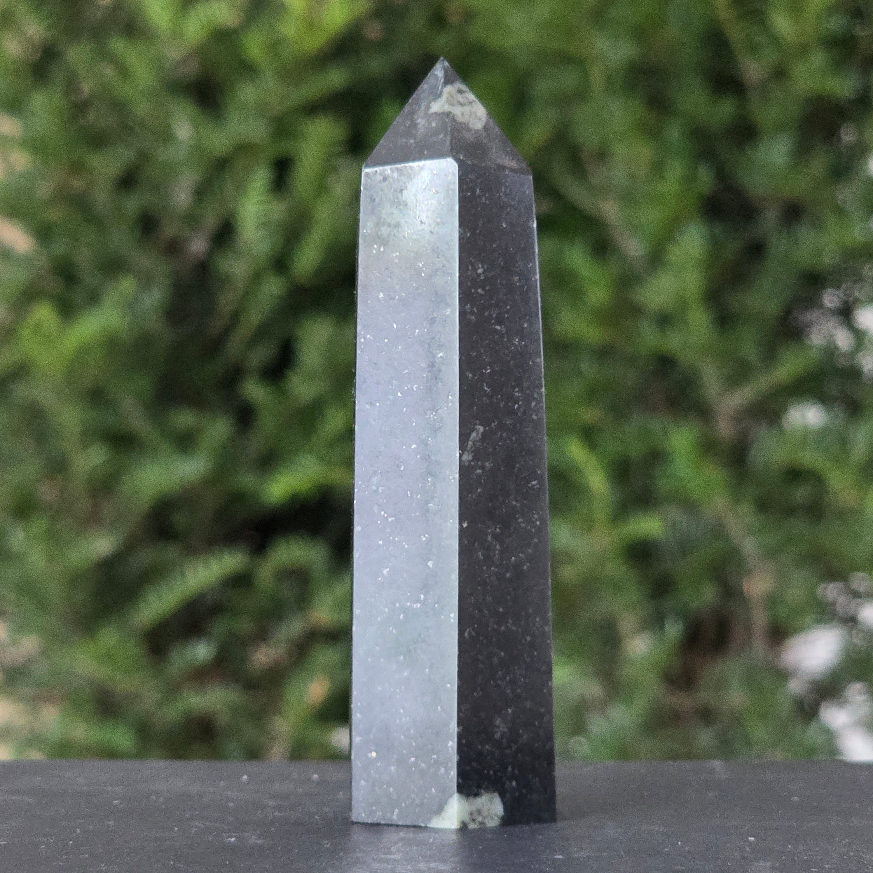 Forma de obelisc, simbol al ascensiunii spirituale, amplifică energia pietrei și o direcționează către claritate, curaj și împlinire.