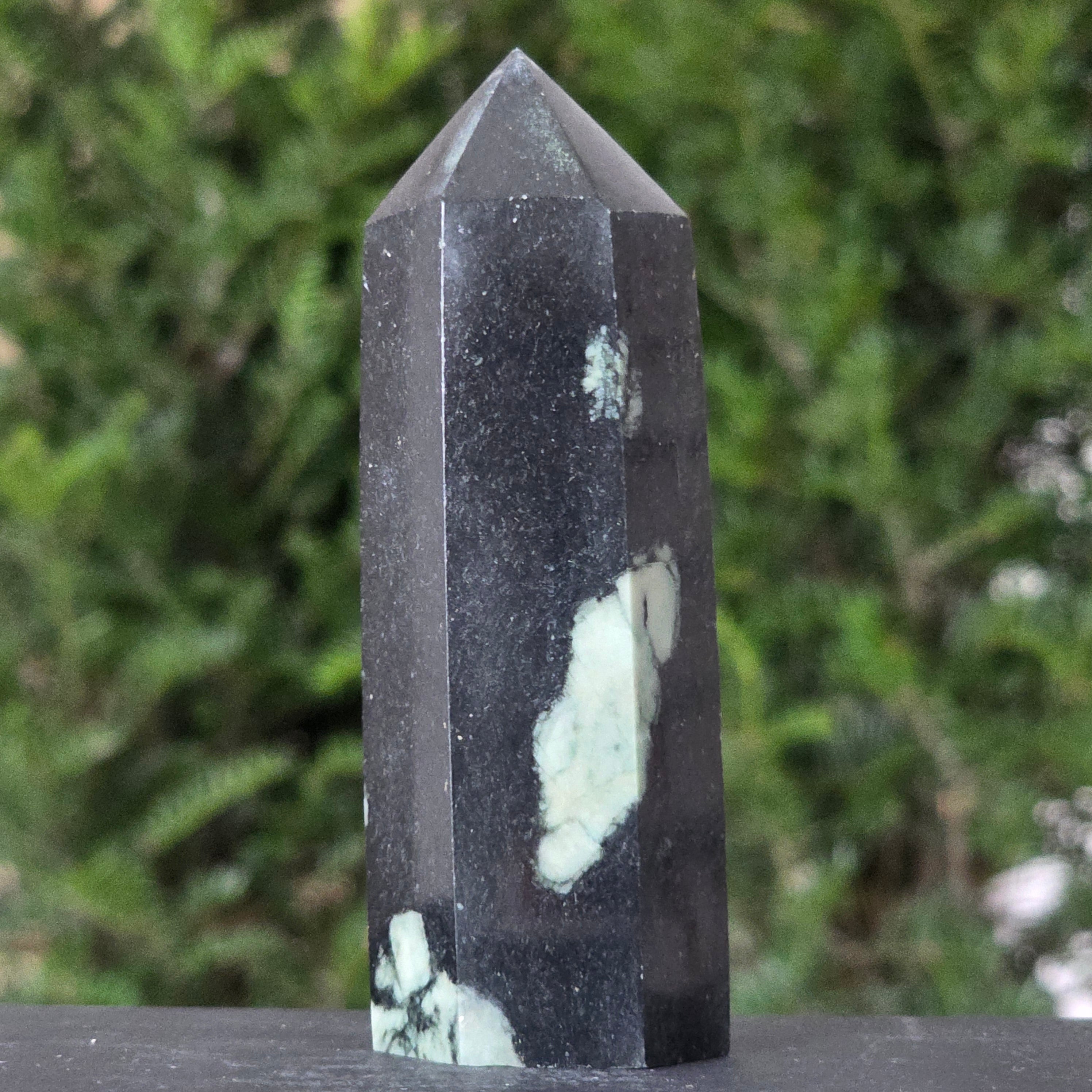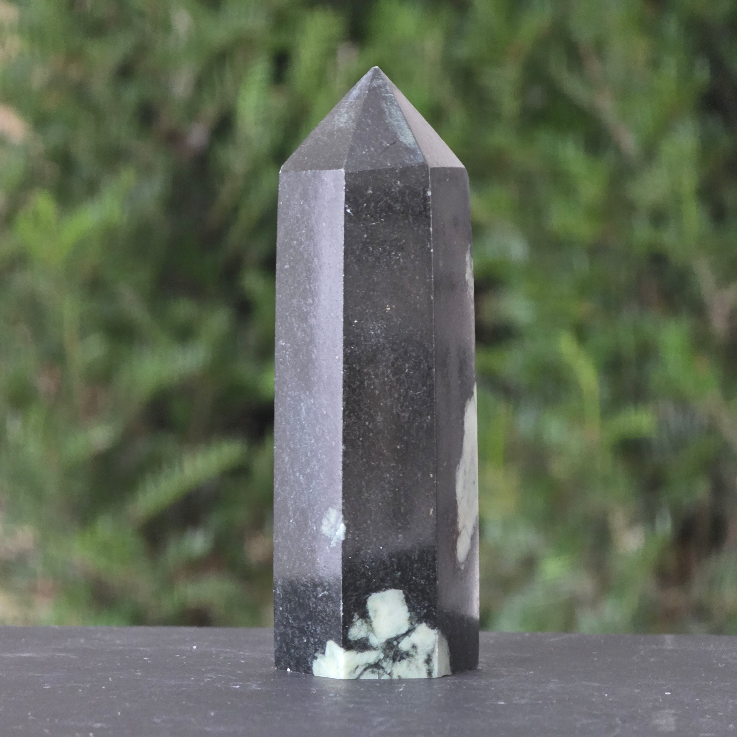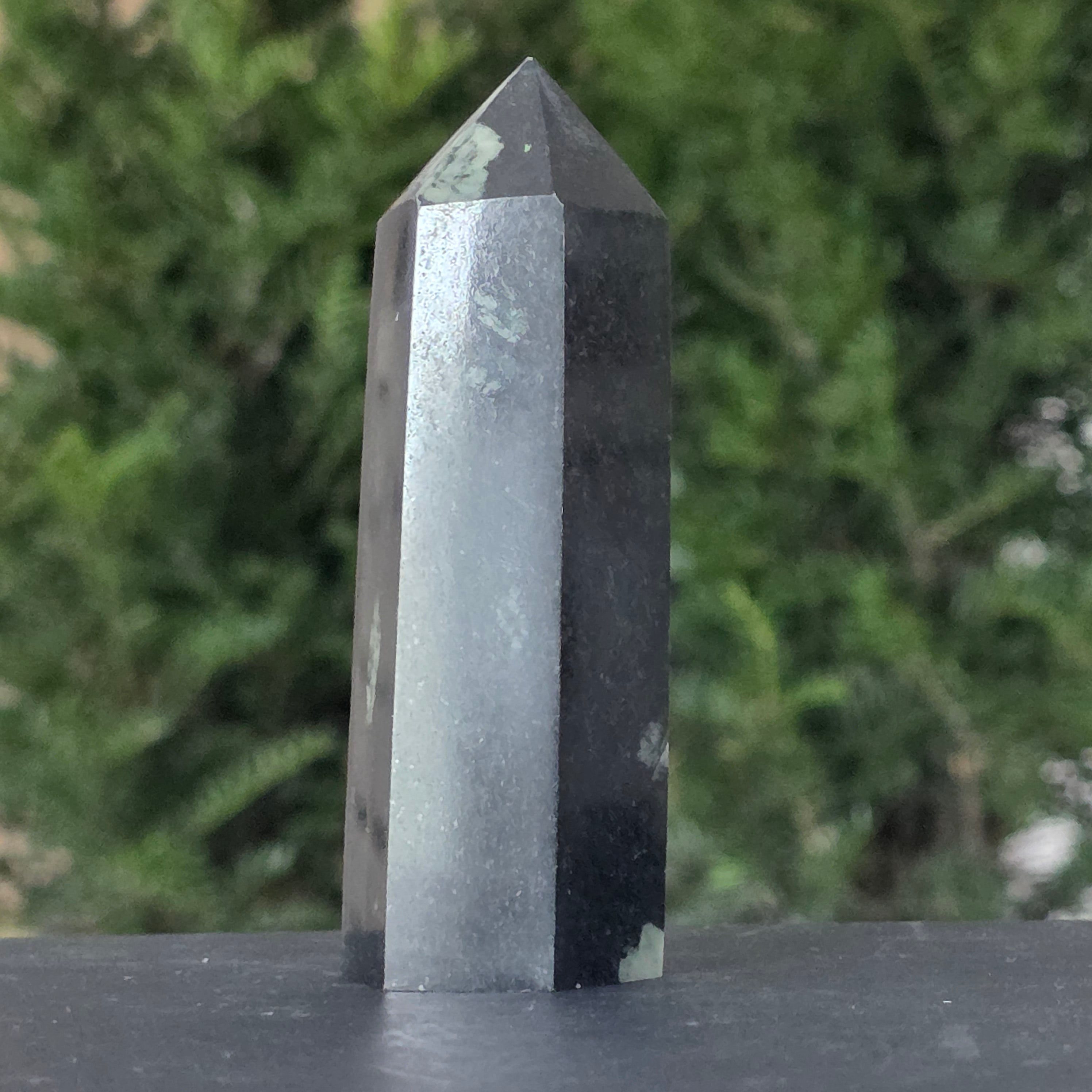 Forma de obelisc, simbol al ascensiunii spirituale, amplifică energia pietrei și o direcționează către claritate, curaj și împlinire.