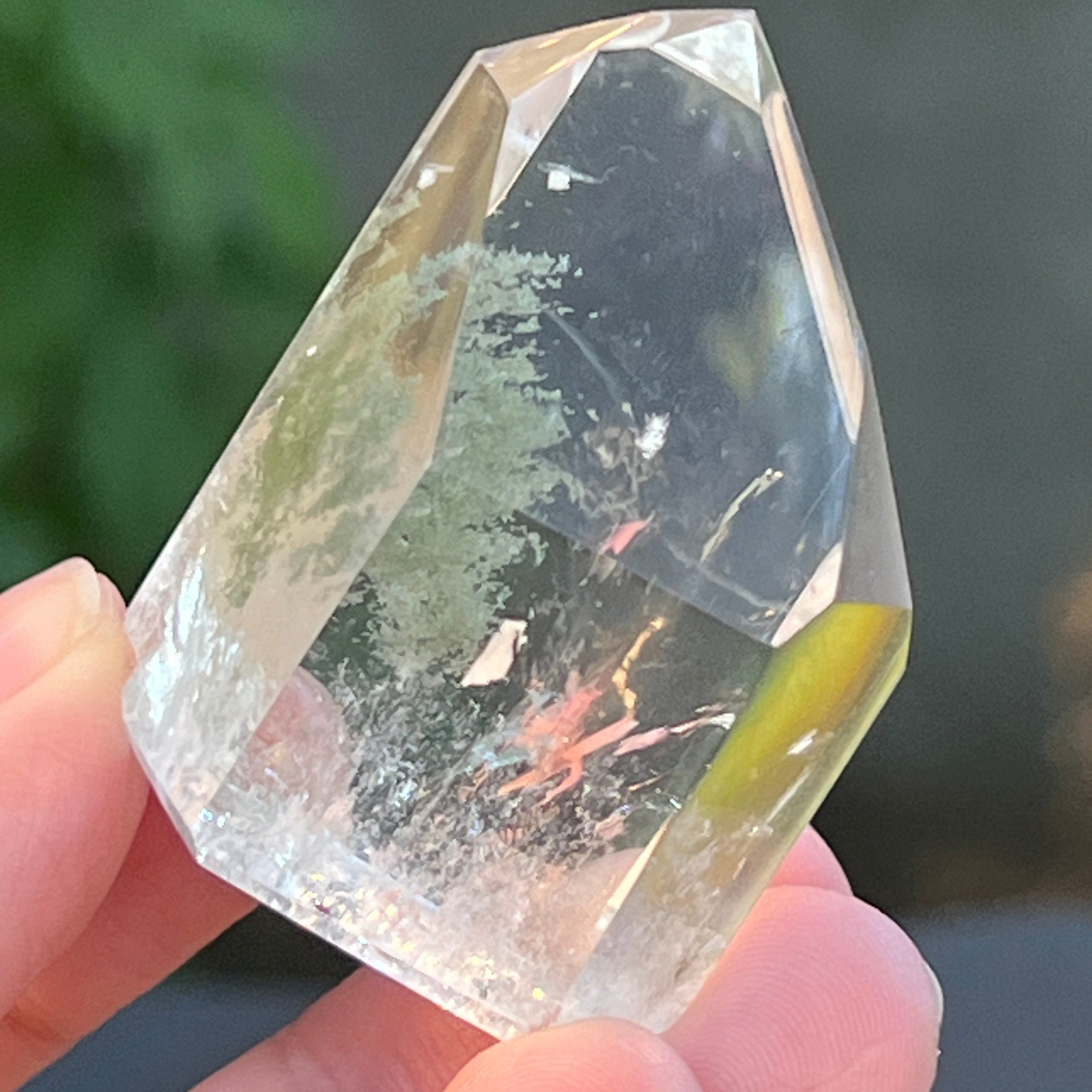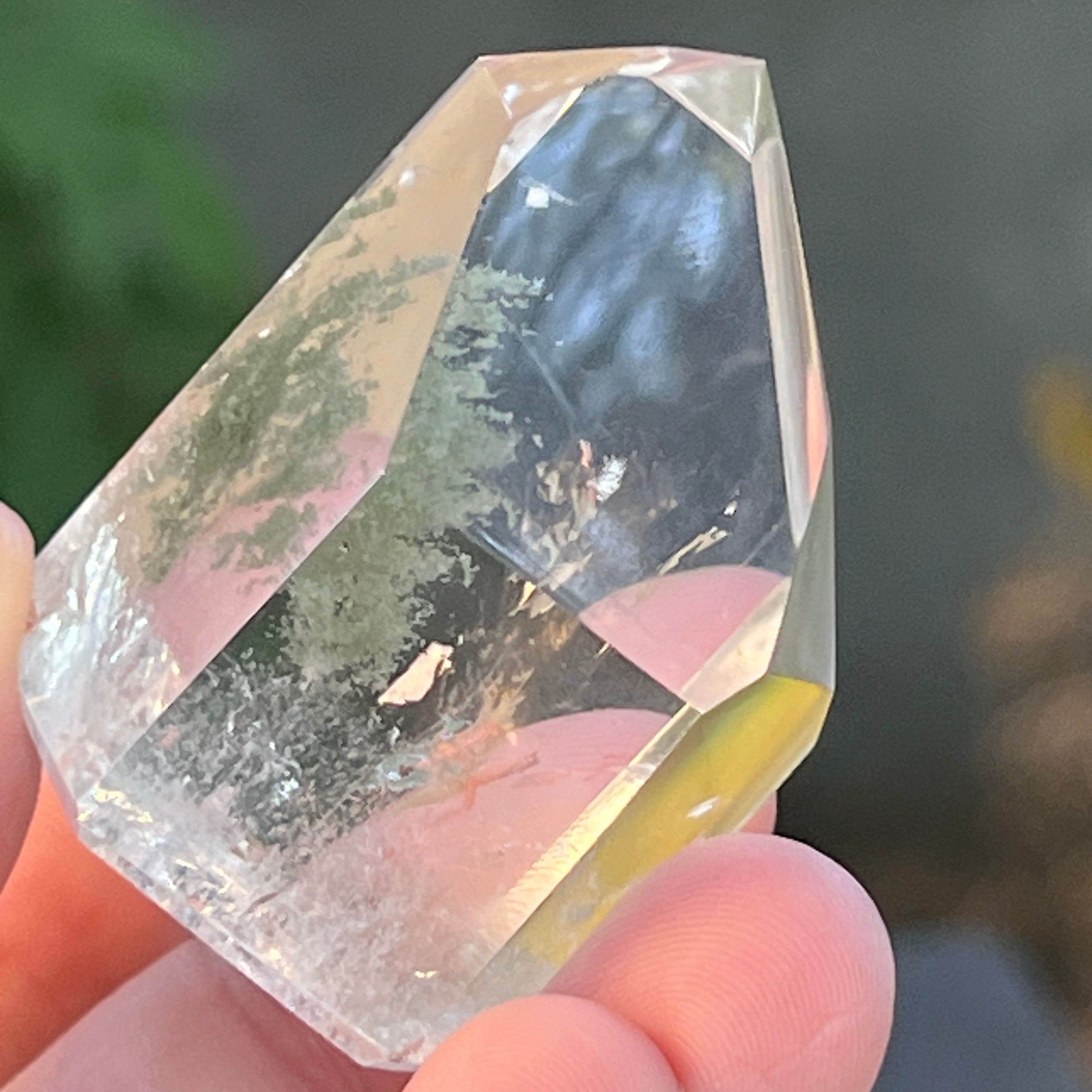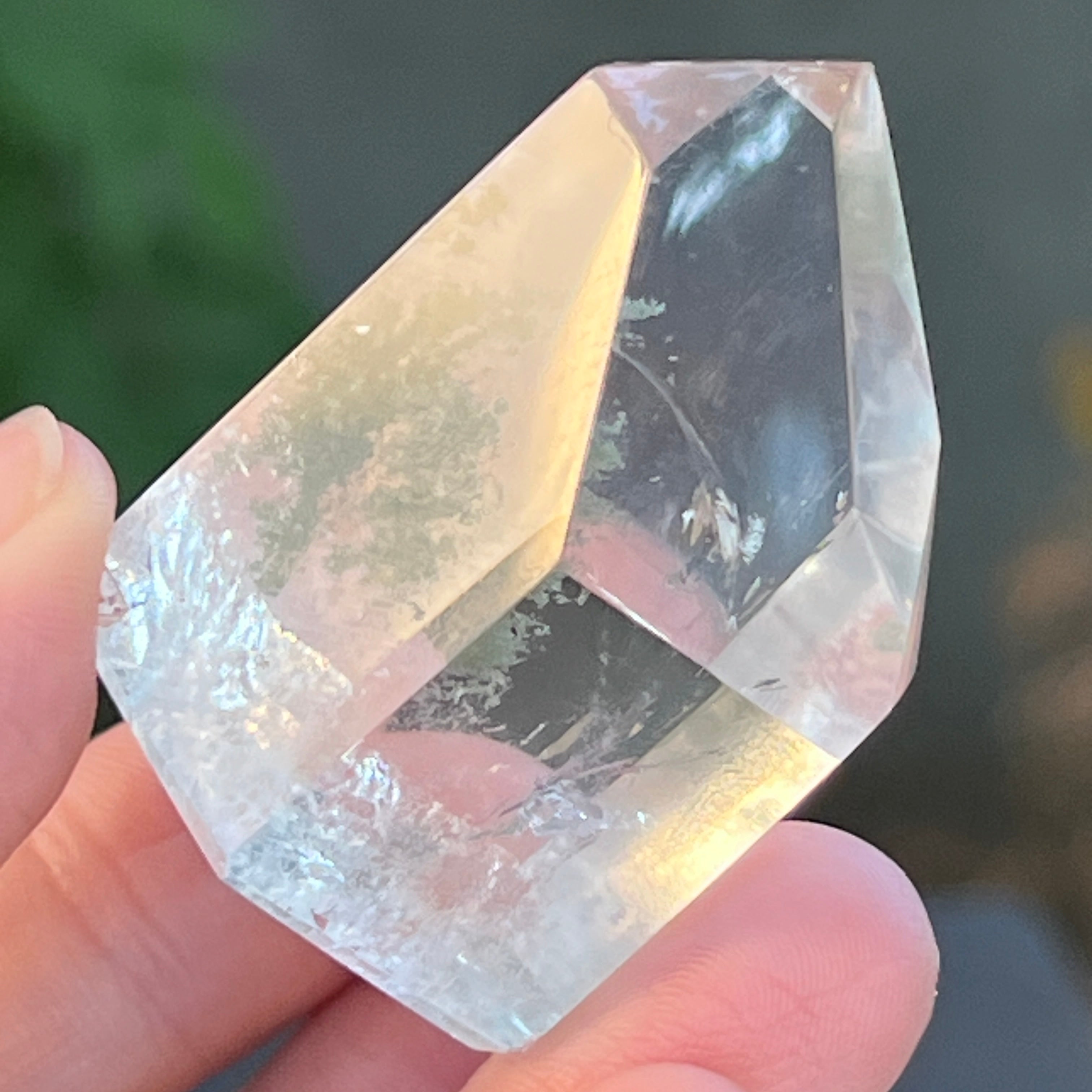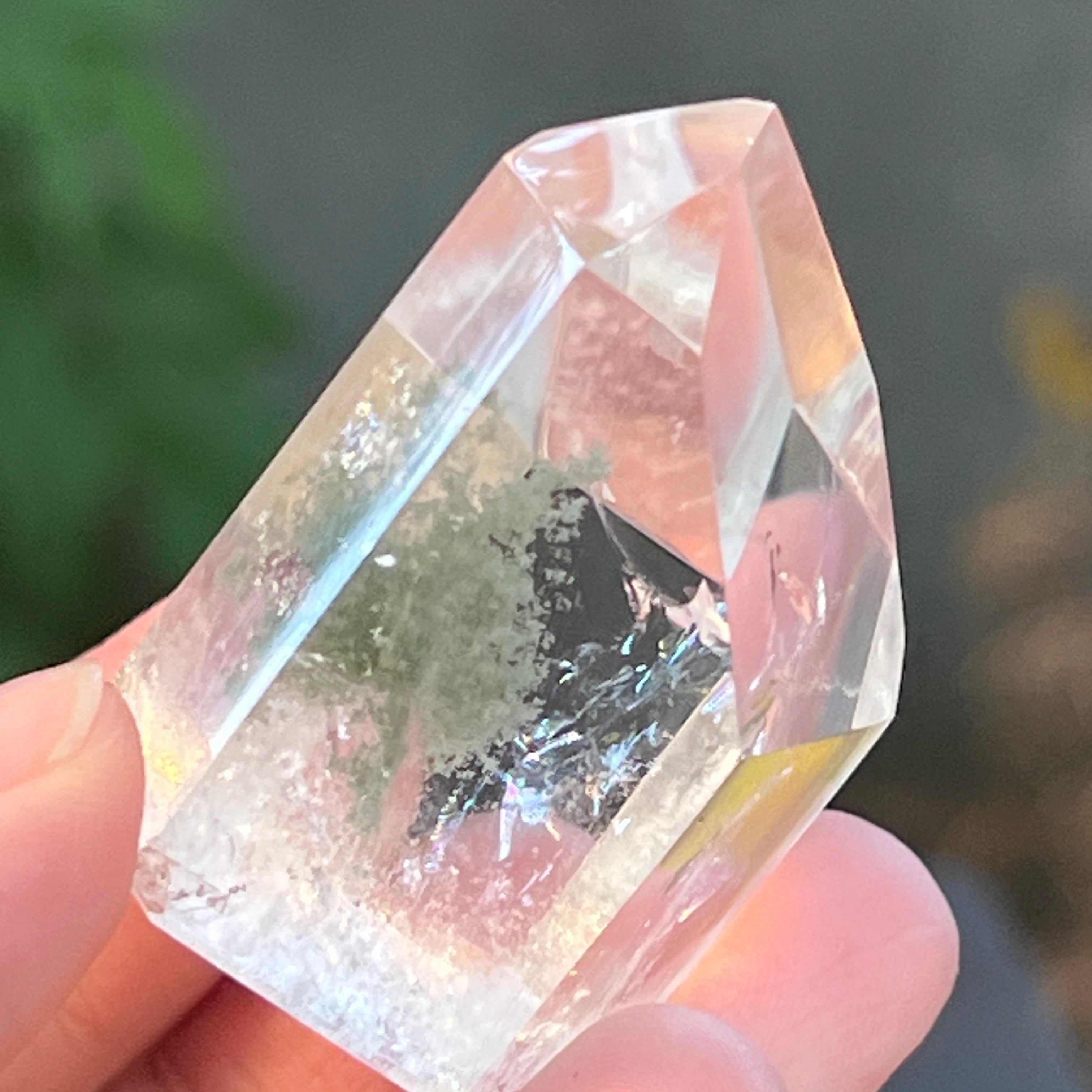 Kwarc chlorytowy to fascynująca odmiana bezbarwnego kwarcu, która wykazuje zielone inkluzje ze względu na mineralny chloryn. Inkluzje te wahają się od delikatnych, cienkich, przypominających włókna kształtów do gęstszych i bardziej rozproszonych kształtów, w zależności od tego, w jaki sposób chloryn został wychwycony w masie kwarcowej podczas jej formowania.