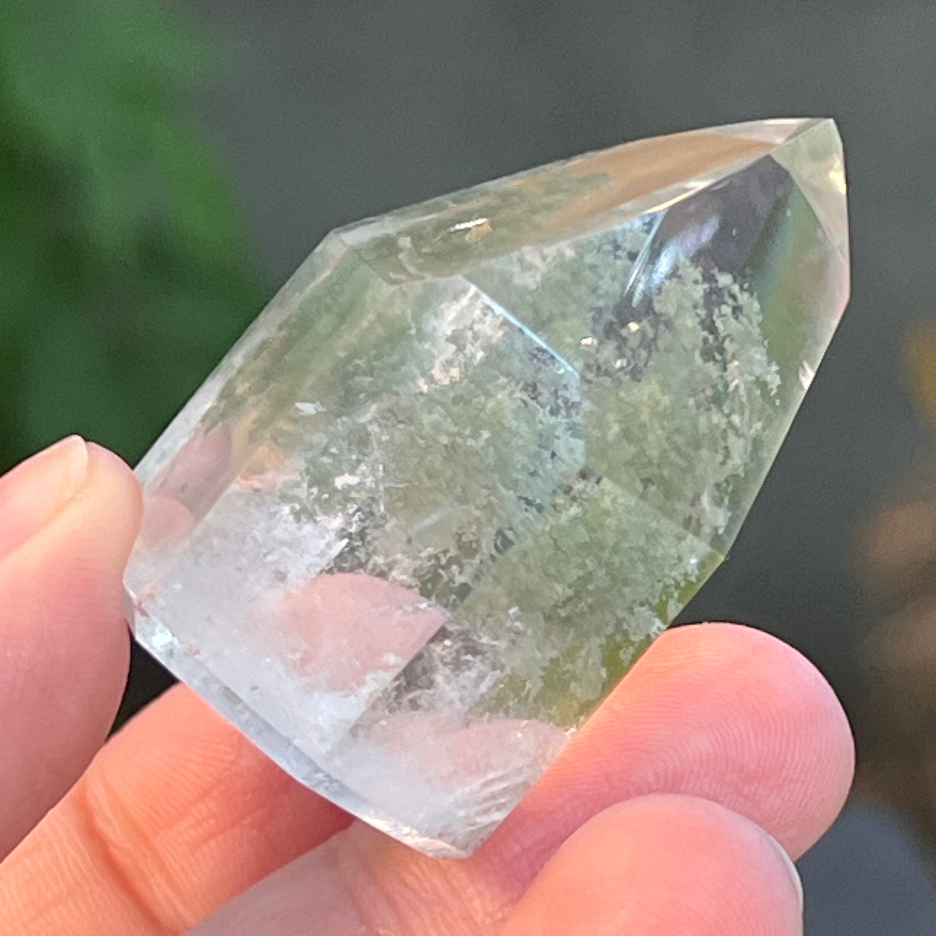 Obelisk kwarcowy z inkluzjami chlorytu m4, rozmiar: 4.3 * 3,2 * 2,3 cm