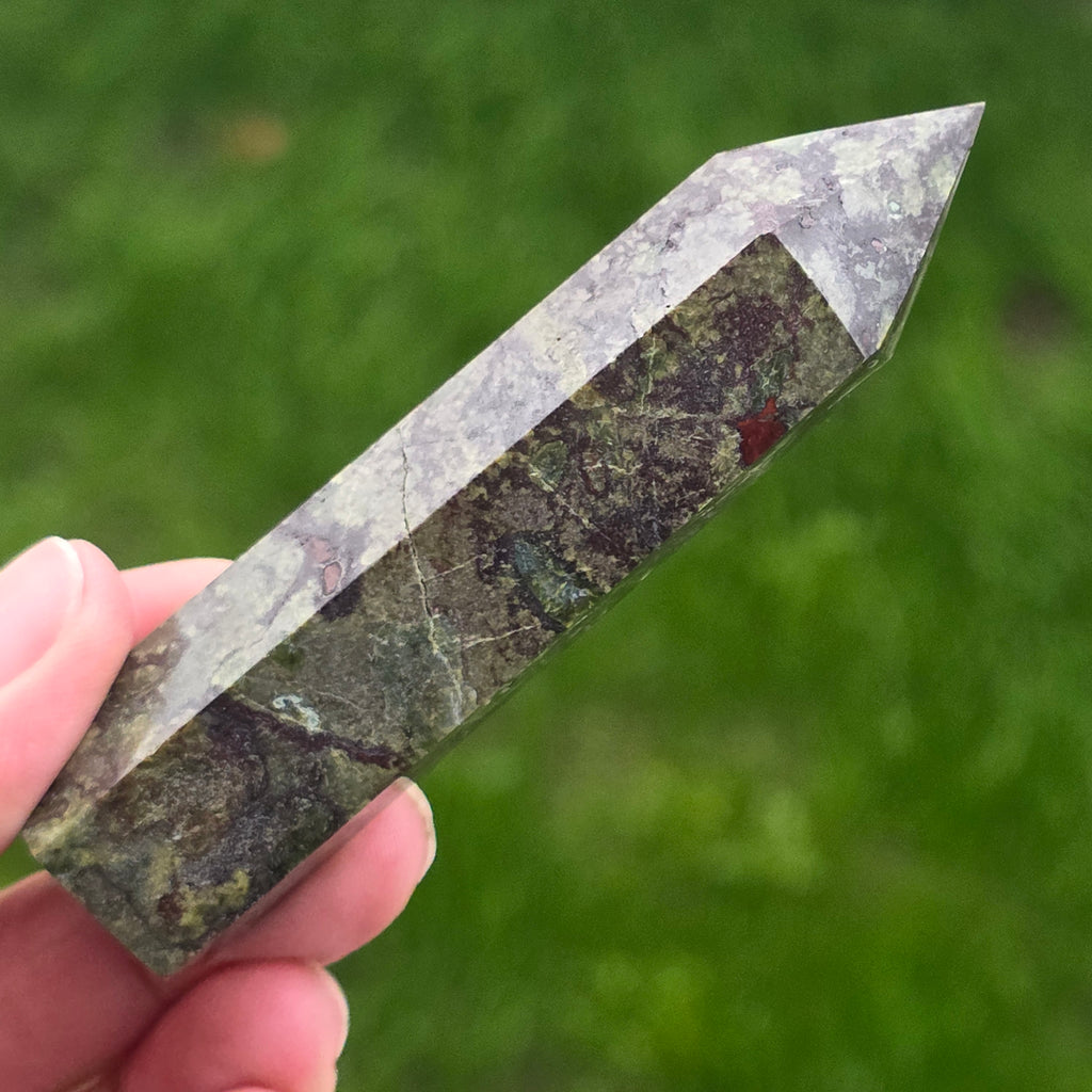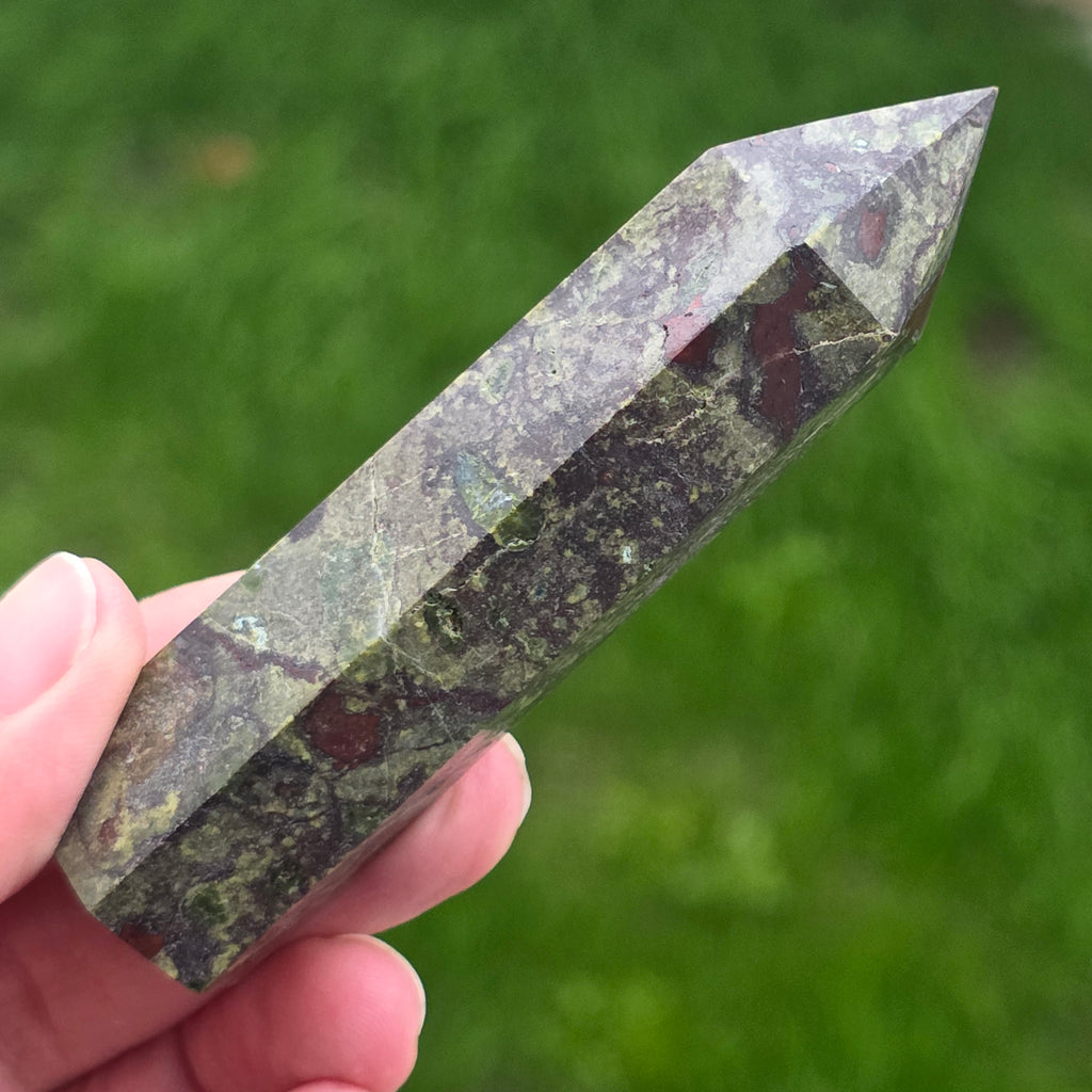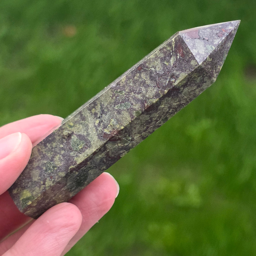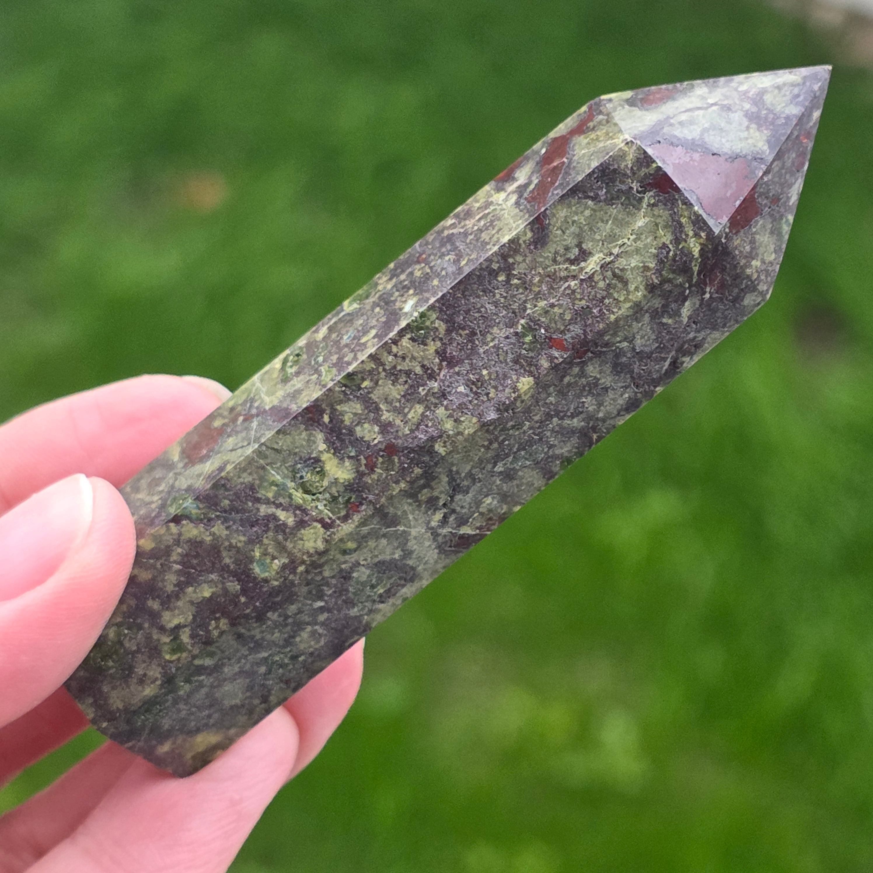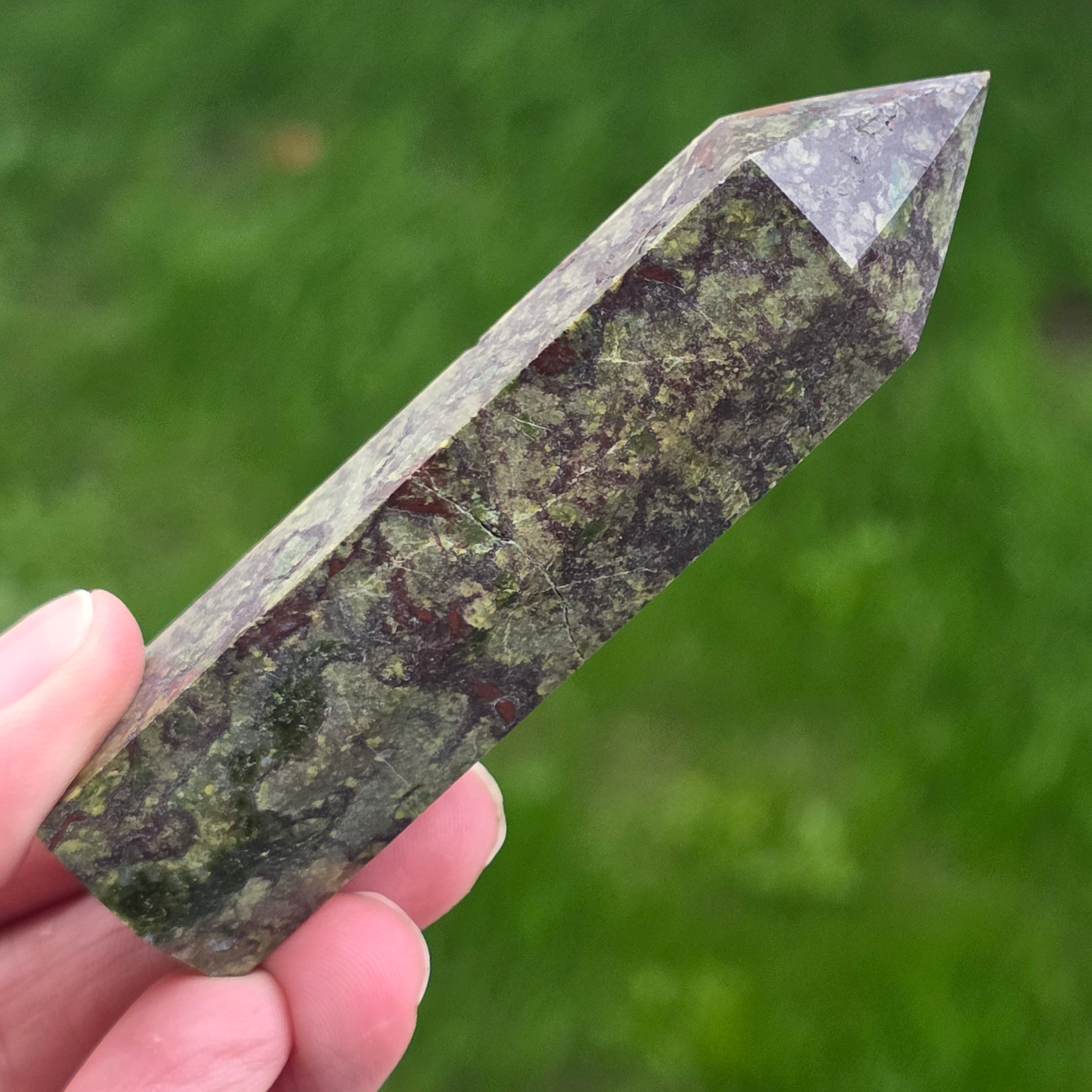 Obelisk mini kamień smoczej krwi (epidot i piemontyt) m4