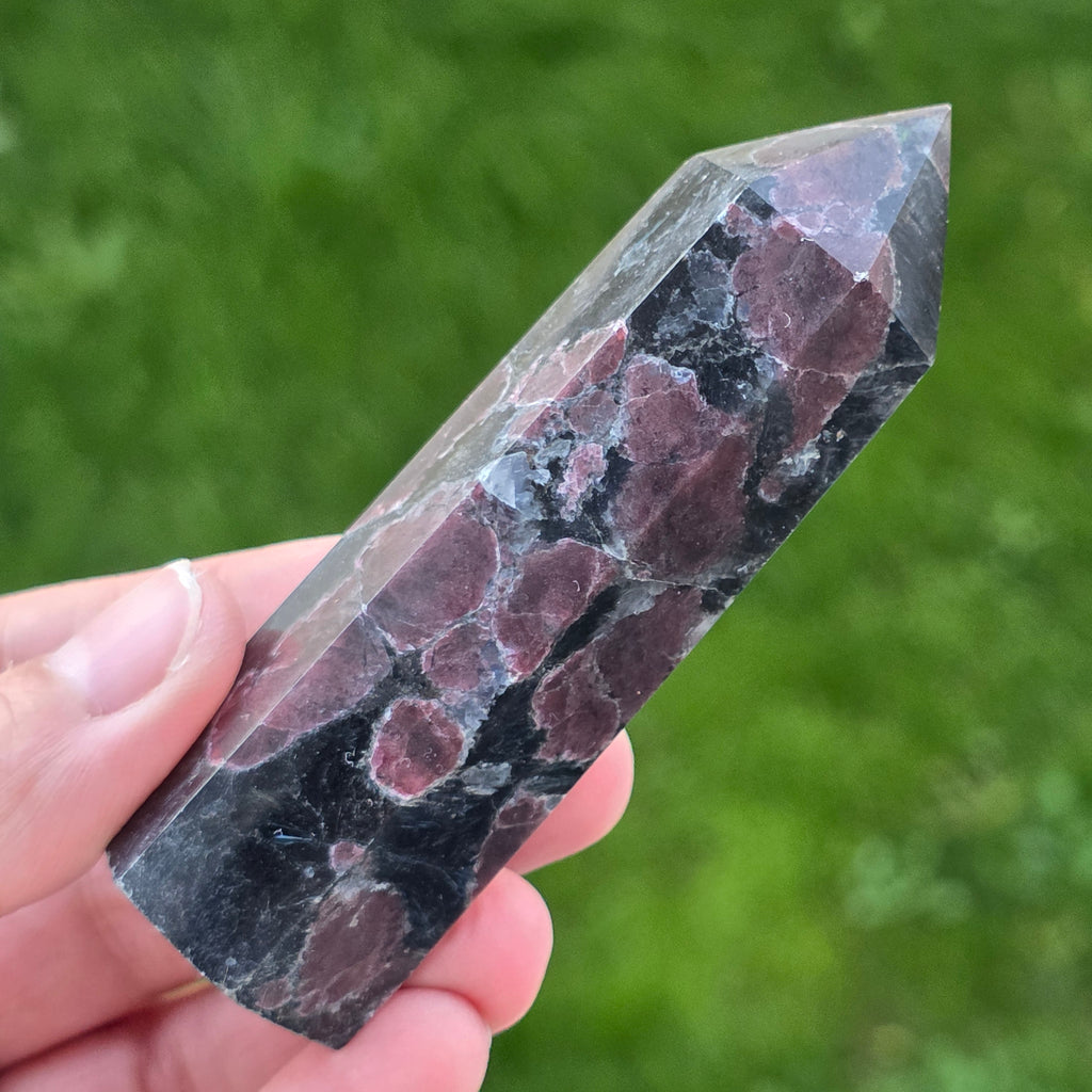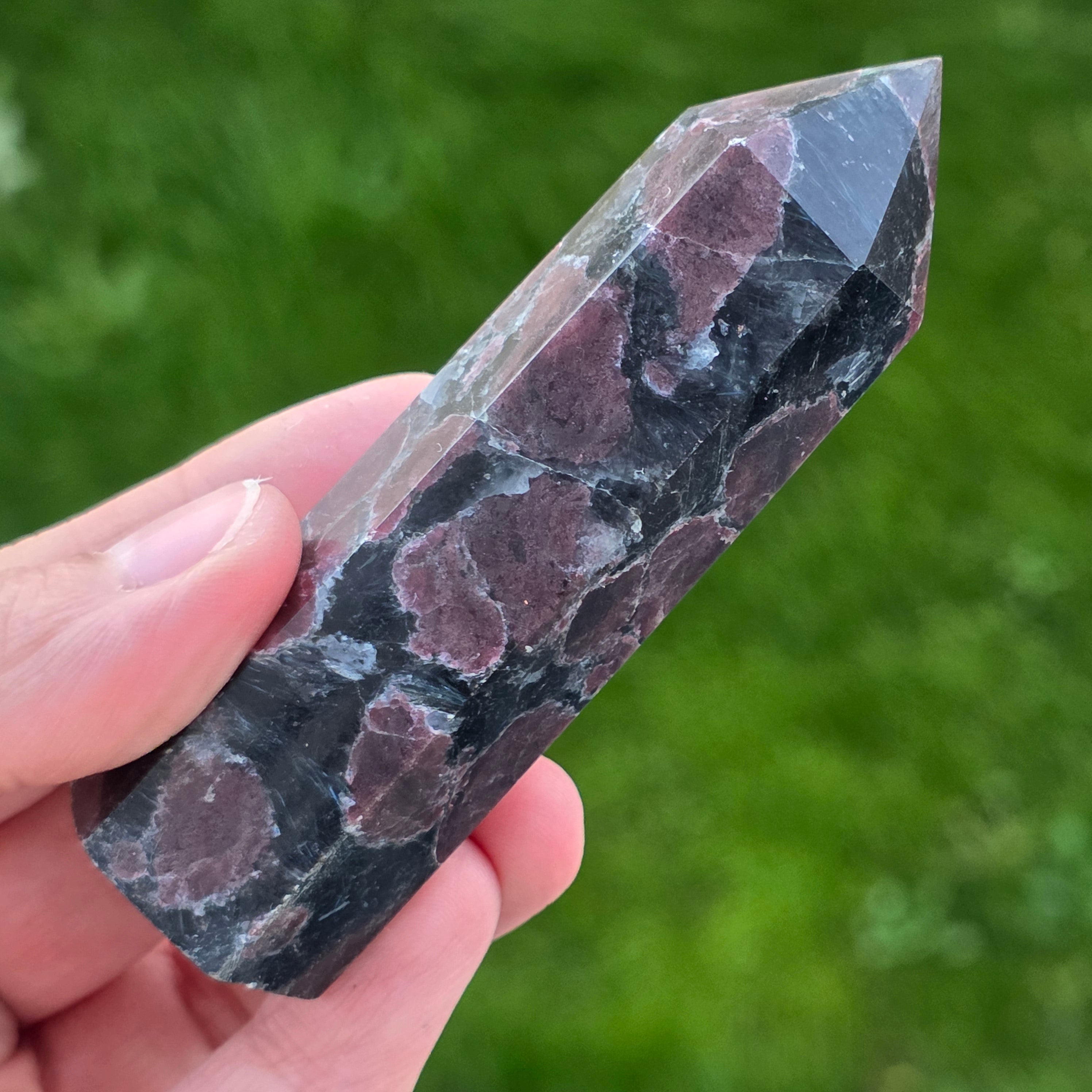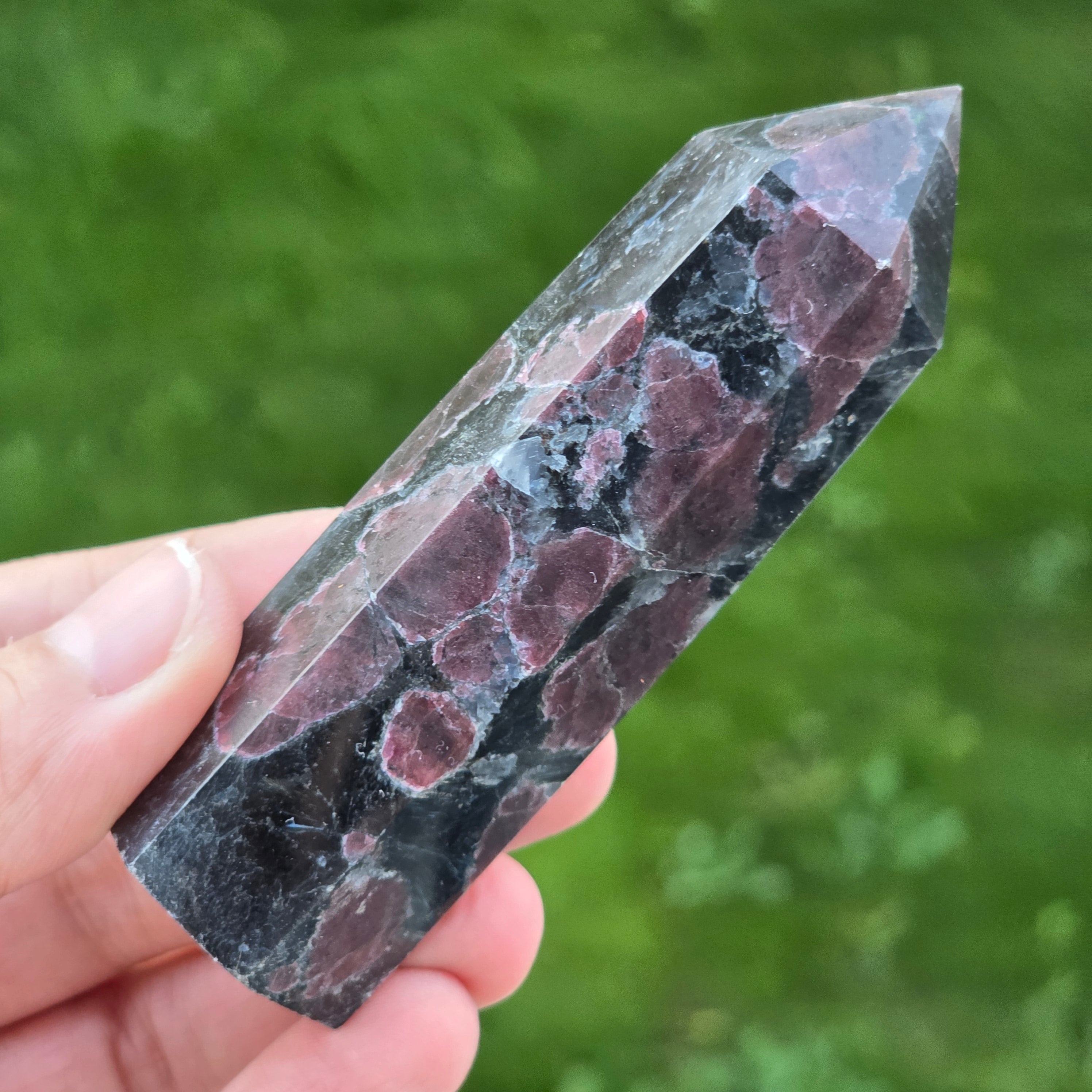 Obelisk z czarnego turmalinu z granatem | Modelka 25